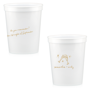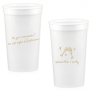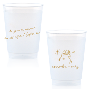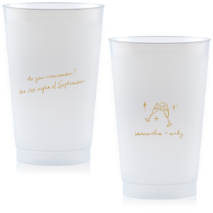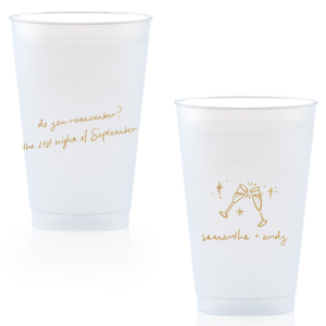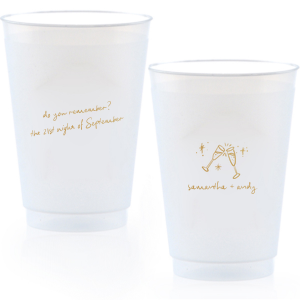 Zoom Show guides Loading product The 21st Night of September Wedding Cup 12-oz. Frosted Cup Design ID: 2939573 Click on swatch to see options Choose Your Screen Print Active Color Metallic Cup Ink Metallic Cup Ink Silver Ink Gold Ink Copper Ink Matte Cup Ink Matte Cup Ink Matte Chocolate Ink Matte Black Ink Matte Slate Gray Ink Matte White Ink Matte Sunflower Ink Matte Moss Green Ink Matte Sage Ink Matte Leaf Ink Matte Spruce Matte Teal/Peacock Ink Matte Sky Blue Ink Matte French Blue Ink Matte Royal Blue Ink Matte Navy Ink Matte Cobalt Ink Matte Lavender Ink Matte Ballet Pink Ink Matte Fuchsia Ink Matte Lipstick Red Ink Matte Merlot Ink Matte Tangerine Ink Personalize Your Text Line 1 Line 2 Line 3 Personalize further with different fonts, graphics, positioning, and sizes. (Optional) Customize More Choose Your Quantity Subtotal PRICE INCLUDES: Select a Proof Option: Print As Is I confirm that I have reviewed my design and I understand it will be produced as shown and no proof will be provided. Digital Proof + $15 I would like an expert FYP designer to look at my design, make minor corrections if necessary, and send me a black and white proof before the order is produced. Orders delivered as soon as 11.07.2025. Exclusions apply. Share Your Design About This Design Do you remember The 21st Night of September? Get ready to dance the night away with this custom wedding napkin. If you are celebrating a wedding or birthday party of the 21st night of September, or want to customize this Earth, Wind, and Fire lyric to match your event date, you can personalize with your name for your upcoming party. Product Details Product Details Minimum order of 50 Measures 4.25" tall and 3.25" wide at the top Holds 11.10 oz flush fill volume Perfect for mixed drinks and signature cocktails BPA-free and recyclable Shatterproof and top-rack dishwasher safe Bulk discounts available Expedited shipping options available. Product Description Product Description Frost flex cups from For Your Party are a perfect accessory for any event, from weddings to birthdays. Their translucent plastic complements any drink or color scheme, and can have any art you can imagine. They’re also reusable, so your guests can have a keepsake from your special day. Like our 10 oz. frost flex cups, our 12 oz. frost flex cups are made in the USA, BPA free, and can be hand-washed again and again to remember your event. Our 12 oz. size has the same shape as our 10 oz. size, and is perfect for when you want just a little more space. It has a flush fill volume of 11.1 oz. Product Options 12-oz. Frosted Cup 10-oz.Frosted Cup 14-oz.Frosted Cup 16-oz. Frosted Cup 20-oz. Frosted Cup 24-oz. Frosted Cup 16-oz. Color Changing Cup 16-oz.Stadium Cup 22-oz. Stadium Cup Related Products 12-oz. Frosted Cup 10-oz.Frosted Cup 14-oz.Frosted Cup 16-oz. Frosted Cup 20-oz. Frosted Cup 24-oz. Frosted Cup 16-oz. Color Changing Cup 16-oz.Stadium Cup 22-oz. Stadium Cup