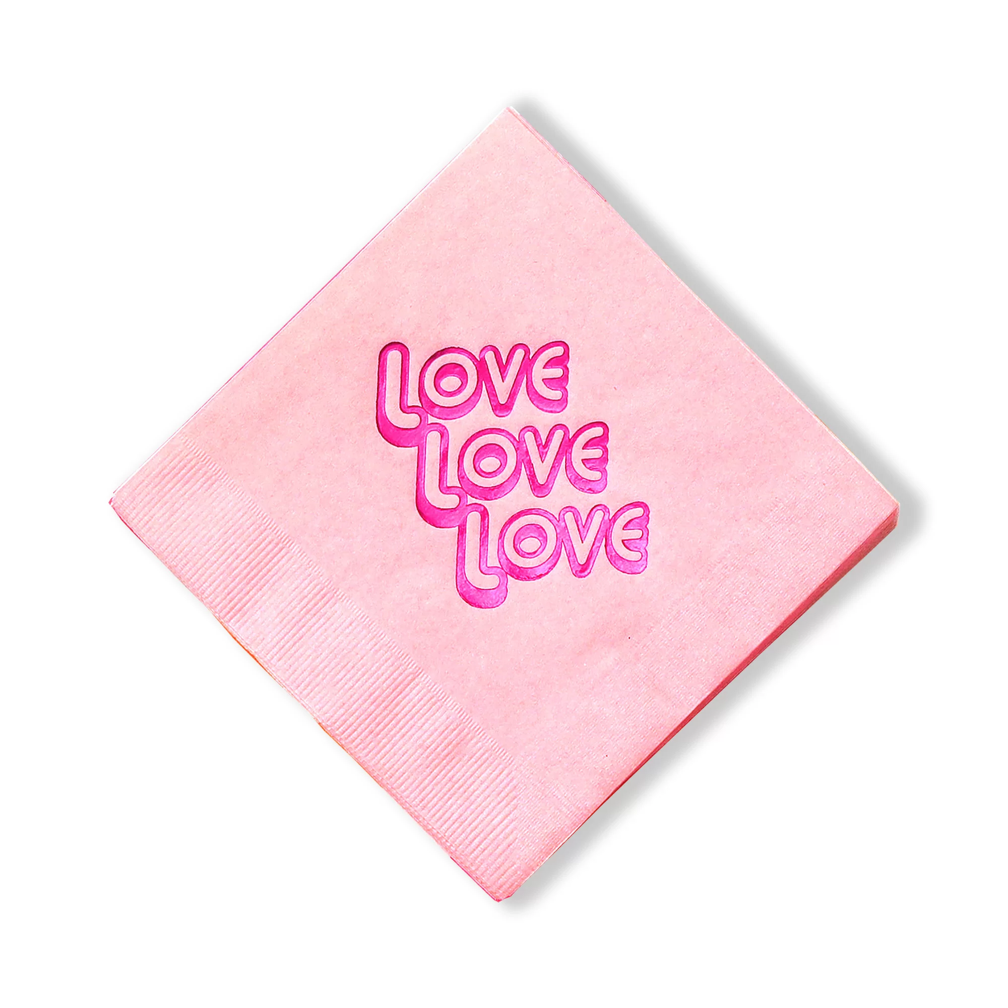 Add a stylish, retro touch to your special event with party-ready cocktail napkins featuring gorgeous digitally printed designs. Our Love Love Love party napkins features peace signs and flowers around a disco styled font. Whether it's birthdays, baby showers or wedding events, For Your Party has you covered for those last minute, beautiful party details! Party Ready Napkin packs are usually ready to ship same day to get to you in time!*