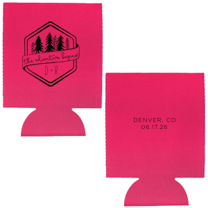 Zoom Show guides Loading product Adventure Begins Can Cooler Slim Can Cooler Design ID: 170413 Click on swatch to see options Choose Your Product Color Active Color Cup Colors Cup Colors Black White Country Camo Dark Green Purple Slate Gray Navy Pink Red Royal Choose Your Screen Print Active Color Can Cooler Ink Can Cooler Ink Matte Chocolate Ink Matte Black Ink Matte Slate Gray Ink Matte White Ink Matte Ivory Ink Matte Sunflower Ink Matte Moss Green Ink Matte Sage Ink Matte Leaf Ink Matte Spruce Matte Teal/Peacock Ink Matte Sky Blue Ink Matte French Blue Ink Matte Royal Blue Ink Matte Navy Ink Matte Cobalt Ink Matte Lavender Ink Matte Ballet Pink Ink Matte Fuchsia Ink Matte Lipstick Red Ink Matte Merlot Ink Matte Tangerine Ink Metallic Silver Ink Metallic Gold Ink Personalize Your Text Line 1 - Front Line 1 - Back Line 2 - Back Personalize further with different fonts, graphics, positioning, and sizes. (Optional) Customize More Choose Your Quantity Subtotal PRICE INCLUDES: Select a Proof Option: Print As Is I confirm that I have reviewed my design and I understand it will be produced as shown and no proof will be provided. Digital Proof + $15 I would like an expert FYP designer to look at my design, make minor corrections if necessary, and send me a black and white proof before the order is produced. Orders delivered as soon as 01.08.2026. Exclusions apply. Share Your Design About This Design Kick off your lifelong adventure with the Adventure Begins Can Cooler. Featuring a pine tree-framed hexagon and a playful ribbon announcing "The adventure begins," this design captures the thrill of new beginnings. Perfect for couples ready to explore life together. Product Details Product Details Minimum order of 12 Measures 5.5" tall and 3.125" wide Screen printed and reusable Bulk discounts available Expedited shipping options available. Product Description Product Description Want to make your party unforgettable? Custom printed can coolers give any party a dose of fun. They’re of course great for home entertaining, but we also love them as an unexpected souvenir for even the most formal weddings. Like our flat can coolers, our slim can coolers are made of premium neoprene, and pack flat for easy travel. They’re an extra 1.5” long to keep a taller 16 oz drink can ice cold. Best of all, they’re customizable on both sides and can be used again and again. Product Options Slim Can Cooler Flat Can Cooler Round Can Cooler Bottle Cooler Related Products Slim Can Cooler Flat Can Cooler Round Can Cooler Bottle Cooler