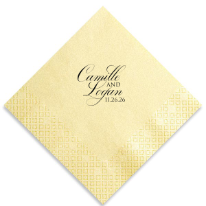 Zoom Show guides Loading product Artistic Elegant Swirl Script Names Wedding Napkin Diamond Cocktail Napkin Design ID: 369594 Click on swatch to see options Choose Your Napkin Color Active Color 3 ply 3 ply Top quality 3 ply. Dyed tissue. Sand Black Slate Platinum Platinum Pin Dot Dove Gray Dove Gray Borderless White White Borderless White Pin Dot White Scallop Ivory Ivory Borderless Mimosa Lemon Pin Dot Kiwi Kiwi Pin Dot Leaf Pin Dot Spruce Pin Dot Olive Pin Dot Light Navy Dark Turquoise Pin Dot Turquoise Powder Blue Pin Dot Lavender Lavender Pin Dot Purple Merlot Pin Dot Candy Pink Antique Pink Pin Dot Ballet Pink Ballet Pink Borderless Convertible Red Light Coral Merlot Out Until: 2025-12-22 Fuchsia Out Until: 2026-01-05 Linen Like* - Premium Product Linen Like* - Premium Product Absorbent. Dyed tissue. Airlaid. Premium pricing applies. Pebble Kraft Ash Grey Black Charcoal Stone Gray Metallic Silver Fog White Cream Buttercream Lemon Moss Green Hunter Green Pastel Green Lime Eucalyptus Dark Turquoise Bright Sky Powder Blue Navy Lavender Magenta Pastel Pink Pink Terracotta Peach Mango Metallic Copper Out Until: 2026-01-08 Brown Out Until: 2025-12-26 Ivory Out Until: 2026-01-02 Metallic Gold Out Until: 2025-12-24 Olive Green Out Until: 2025-12-24 Berry Out Until: 2025-12-28 Merlot Out Until: 2025-12-25 Lipstick Red Out Until: 2025-12-19 Crosshatch* - Premium Product Crosshatch* - Premium Product Absorbent. Printed tissue. Airlaid. Premium pricing applies. Crosshatch Black Crosshatch Gray Crosshatch Green Crosshatch Turquoise Crosshatch Violet Crosshatch Lipstick Red Crosshatch Stone Out Until: 2025-12-15 Crosshatch Key Lime Out Until: 2026-01-01 Crosshatch Navy Out Until: 2026-01-01 Crosshatch Fuchsia Out Until: 2025-12-27 Woven* - Premium Product Woven* - Premium Product Basketweave texture. Single-sided color. Premium pricing applies. Woven Sand Woven Copper Woven Black Woven Slate Woven Silver Woven Stone Woven Vanilla Woven White Woven Gold Woven Sage Woven Spruce Woven Powder Blue Woven Navy Woven Mauve Woven Convertible Red Woven Tumeric Patterned* - Premium Product Patterned* - Premium Product Exclusive FYP patterns. Single-sided color. Pindot embossed edge. Product pricing applies. Oak Wood Walnut Wood Ebony Wood Ash Wood Birch Wood Marble Sand Marble Gray Marble Navy Marble Taupe Marble Blush Ombre Black Ombre Navy Ombre Robin’s Egg Blue Ombre Rose petal Ombre Coral Watercolor Sea Glass Watercolor Ocean Watercolor Nightfall Watercolor Sangria Watercolor Hibiscus Watercolor Rose Watercolor Sunrise Leaf Sand Leaf Fern Leaf Rain Leaf Rose Tie Dye Sunflower Tie Dye Leaf Tie Dye Turquoise Tie Dye Fuchsia Shimmer* - Premium Product Shimmer* - Premium Product Elegant European Stardream with iridescent finish. Single-sided color. Pindot embossed edge. Premium pricing applies. Champagne Soft Black Galvanized Silver Crystal White Ivory Pearl Gold Sage Navy Amethyst Herringbone* - Premium Product Herringbone* - Premium Product Absorbent. Printed Herringbone pattern. Airlaid. Premium pricing applies. Herringbone Vanilla Mocha Herringbone Gray Onyx Choose Your Imprint Foil Color Active Color Shiny Foil Shiny Foil Metallic, lustrous finish. *Specialty patterned foil may vary on final print Shiny Champagne Shiny Sterling Silver Shiny 18 Kt Gold Shiny Kiwi / Lime Shiny Leaf Shiny Jade Shiny Royal Blue Shiny Amethyst Shiny Fuchsia Shiny Rose Quartz Shiny Rose Gold NEW Shiny Merlot Shiny Convertible Red Shiny Poppy Shiny Copper *Shiny Holographic Gold *Shiny Holographic Silver *Shiny Rainbow Matte Foil Matte Foil Flat finish. Matte NEW Chocolate Matte Black Matte Slate Gray Matte Dove Grey Matte White Matte Ivory Matte Mimosa Yellow Matte Sunflower Matte Key Lime Matte Leaf Matte Spruce Matte Teal/Peacock Matte Azure Matte Royal Blue Matte Navy Matte Amethyst Matte Pastel Pink Matte Ballet Pink Matte Fuchsia Matte Lipstick Red Matte Merlot Matte Tangerine Satin Foil Satin Foil Muted sheen, brushed finish. Satin Sterling Silver Satin 18 Kt. Gold Satin Copper Penny Satin Fuchsia Satin Lipstick Red Satin Leaf Satin Teal / Peacock Satin French Blue Satin Plum Personalize Your Text Line 1 Line 2 Line 3 Line 4 Personalize further with different fonts, graphics, positioning, and sizes. (Optional) Customize More Choose Your Quantity Subtotal PRICE INCLUDES: Select a Proof Option: Print As Is I confirm that I have reviewed my design and I understand it will be produced as shown and no proof will be provided. Digital Proof + $15 I would like an expert FYP designer to look at my design, make minor corrections if necessary, and send me a black and white proof before the order is produced. Orders delivered as soon as 12.19.2025. Exclusions apply. Share Your Design About This Design The Artistic Elegant Swirl Script Names Wedding Napkin design combines artistic flair and statement-making elegance. Swirling, fancy script intertwines the couple's names, connected by a bold, all-caps "and." The event date is cleverly integrated, adding a playful touch to this dramatic and captivating design. Product Details Product Details Classic 3-ply tissue, 4.75” or 5” square Colors vary Signature foil stamp included Bulk discounts available Expedited shipping options available. Product Description Product Description Classic Cocktail Napkins are the perfect companion for any event. Add a touch of refinement to your cocktail parties, weddings, or birthday celebrations. Whether you're sipping a Martini, Old Fashioned, or a signature cocktail, these beverage napkins are the perfect accompaniment to elevate your drink service to new heights.Traditionally designed with a classic pleated edge, highly absorbent, durable, crafted from high-quality, premium-grade paper, our Classic Cocktail Napkins are an excellent, timeless choice. They are soft to the touch, keeping your guests' hands dry and your furniture protected. Once used, simply discard them, making cleanup a breeze. Explore our Cocktail Napkins Collection to find the 