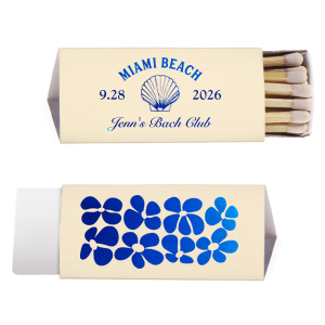 Zoom Show guides Loading product Bachelorette Beach Party Seashell Match 30-Strike Matchbook Design ID: 2857974 Click on swatch to see options Choose Your Paper Color Active Color Shimmer Colors Shimmer Colors Our Stardream papers have a pearl, iridescent quality that creates a sophisticated look and feel. Shimmer Ivory Shimmer Crystal White Shimmer Navy Shimmer Champagne Shimmer Black Ore Shimmer Slate Shimmer 18k Gold Shimmer White Peach Fuzz Shimmer Silver Natural Colors Natural Colors Smooth, matte finish. Double-sided color. 80lb+ cover stock. Natural White Natural Vanilla Natural Black Natural Khaki Natural French Blue Natural NEW Dark Sage Natural Slate Natural Navy Natural Smoke Natural Spruce Natural Hot Pink Natural Lilac Natural Milk Chocolate Choose Your Imprint Foil Color Active Color Shiny Foil Shiny Foil Metallic, lustrous finish. *Specialty patterned foil may vary on final print Shiny Champagne Shiny Sterling Silver Shiny 18 Kt Gold Shiny Kiwi / Lime Shiny Leaf Shiny Spruce Shiny Jade Shiny Royal Blue Shiny Amethyst Shiny Fuchsia Shiny Rose Quartz Shiny Rose Gold NEW Shiny Merlot Shiny Convertible Red Shiny Poppy Shiny Copper *Shiny Holographic Gold *Shiny Holographic Silver *Shiny Rainbow Matte Foil Matte Foil Flat finish. Matte NEW Chocolate Matte Black Matte Slate Gray Matte Dove Grey Matte White Matte Ivory Matte Mimosa Yellow Matte Sunflower Matte Key Lime Matte Leaf Matte Teal/Peacock Matte Azure Matte Royal Blue Matte Navy Matte Amethyst Matte Pastel Pink Matte Ballet Pink Matte Fuchsia Matte Lipstick Red Matte Merlot Matte Tangerine Satin Foil Satin Foil Muted sheen, brushed finish. Satin Sterling Silver Satin 18 Kt. Gold Satin Copper Penny Satin Fuchsia Satin Lipstick Red Satin Leaf Satin Teal / Peacock Satin French Blue Satin Plum Personalize Your Text Line 1 Line 2 Line 3 Line 4 Personalize further with different fonts, graphics, positioning, and sizes. (Optional) Customize More Choose Your Quantity Subtotal PRICE INCLUDES: Select a Proof Option: Print As Is I confirm that I have reviewed my design and I understand it will be produced as shown and no proof will be provided. Digital Proof + $15 I would like an expert FYP designer to look at my design, make minor corrections if necessary, and send me a black and white proof before the order is produced. Orders delivered as soon as 04.20.2026. Exclusions apply. Share Your Design About This Design Ignite the fun at your seaside soiree with the Bachelorette Beach Party Seashell Match, personalized with the bachelorette's name in classic script, the party location, and date. Adorned with an elegant shell graphic, it's a perfect memento for "The Last Splash." Product Details Product Details a manufacturer’s mark may appear on the bottom edge 50 minimum 2" w X 1.875" h 30 matches Expedited options available a safety message may appear inside the top flap Product Description Product Description For Your Party’s 30 strike matchbooks are the perfect accessory, whether it’s a bowl of them in your apartment or a favor at your wedding! Increasingly the choice of TikTok and those in the know, our 30 strike matchbooks are a perfect way to send a message and stand out. Made out of durable paper stock, our 30 strike matchbooks come in several different colors so you can match (no pun intended) your vibe exactly. Like our classic matchboxes, they come in a wide variety of foil printing options, so get creative and impress your friends! **A manufacturer’s mark will appear on the bottom edge of your matches and a safety message will appear inside the top flap of the matchbook. These are required by law. Minor markings may occur during transit. Product Options 30-Strike Matchbook Classic Matchbox Candle Matchbox Cigar Matchbox Square Matchbox Lipstick Matchbox Triangle Matchbox Mini Matchbox Related Products 30-Strike Matchbook Classic Matchbox Candle Matchbox Cigar Matchbox Square Matchbox Lipstick Matchbox Triangle Matchbox Mini Matchbox