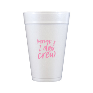 Zoom Show guides Loading product Bachelorette I Do Crew Cup 12-oz. Styrofoam Cup Design ID: 823487 Click on swatch to see options Choose Your Screen Print Active Color Matte Cup Ink Matte Cup Ink Matte Black Ink Matte Slate Gray Ink Matte Moss Green Ink Matte Leaf Ink Matte Spruce Matte Sky Blue Ink Matte Royal Blue Ink Matte Navy Ink Matte Cobalt Ink Matte Ballet Pink Ink Matte Fuchsia Ink Matte Lipstick Red Ink Matte Merlot Ink Metallic Cup Ink Metallic Cup Ink Silver Ink Gold Ink Copper Ink Personalize Your Text Line 1 Personalize further with different fonts, graphics, positioning, and sizes. (Optional) Customize More Choose Your Quantity Subtotal PRICE INCLUDES: Select a Proof Option: Print As Is I confirm that I have reviewed my design and I understand it will be produced as shown and no proof will be provided. Digital Proof + $15 I would like an expert FYP designer to look at my design, make minor corrections if necessary, and send me a black and white proof before the order is produced. Orders delivered as soon as 12.12.2025. Exclusions apply. Share Your Design About This Design Our Bachelorette I Do Crew Cup is good for use in Wedding, Bridal Shower themed parties and will add that special attention to detail that cannot be overlooked. Product Details Product Details Minimum order of 50 Measures 4.5" tall and 3.5" wide at the top Ideal for coffee and tea Recyclable Bulk discounts available Expedited shipping options available. Product Description Product Description Want the customization of our custom cups, but easier clean-up? Our styrofoam cups are the answer. Custom printed cups are great for your bachelorette party, or any time where you’re on the go and can’t stop to clean! Like their frost flex siblings, these are a compact 12 oz. package that can be customized with your art. Recyclable styrofoam is great for convenience and versatility—these cups can serve up hot or cold drinks, and no washing needed. Try them for coffee or mixed drinks at your next party! Product Options 12-oz. Styrofoam Cup 16-oz. Styrofoam Cup 20-oz. Styrofoam Cup 24-oz. Styrofoam Cup 32-oz. Styrofoam Cup Related Products 12-oz. Styrofoam Cup 16-oz. Styrofoam Cup 20-oz. Styrofoam Cup 24-oz. Styrofoam Cup 32-oz. Styrofoam Cup