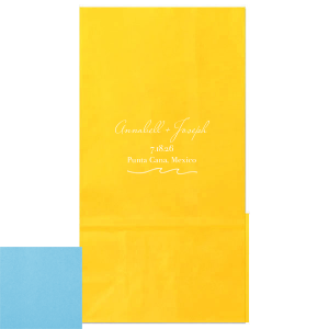 Zoom Show guides Loading product Beach Wave Gift Bag Cookie Bag Design ID: 1860 Click on swatch to see options Choose Your Product Color Active Color Bag Colors Bag Colors Kraft Black White Hot Pink Choose Your Imprint Foil Color Active Color Shiny Foil Shiny Foil Metallic, lustrous finish. *Specialty patterned foil may vary on final print Shiny Champagne Shiny Sterling Silver Shiny 18 Kt Gold Shiny Kiwi / Lime Shiny Leaf Shiny Spruce Shiny Jade Shiny Royal Blue Shiny Amethyst Shiny Fuchsia Shiny Rose Quartz Shiny Rose Gold NEW Shiny Merlot Shiny Convertible Red Shiny Poppy Shiny Copper *Shiny Holographic Gold *Shiny Holographic Silver *Shiny Rainbow Matte Foil Matte Foil Flat finish. Matte NEW Chocolate Matte Black Matte Slate Gray Matte Dove Grey Matte White Matte Ivory Matte Mimosa Yellow Matte Sunflower Matte Key Lime Matte Leaf Matte Teal/Peacock Matte Azure Matte Royal Blue Matte Navy Matte Amethyst Matte Pastel Pink Matte Ballet Pink Matte Fuchsia Matte Lipstick Red Matte Merlot Matte Tangerine Satin Foil Satin Foil Muted sheen, brushed finish. Satin Sterling Silver Satin 18 Kt. Gold Satin Copper Penny Satin Fuchsia Satin Lipstick Red Satin Leaf Satin Teal / Peacock Satin French Blue Satin Plum Choose Your Tissue Color Active Color Tissue Paper Tissue Paper Turquoise 10 sheets Royal Blue 10 sheets Pink 8 sheets Red 8 sheets None Brown 10 sheets Out Until: 2025-12-01 Black 10 sheets Out Until: 2025-12-01 Ivory 10 sheets Out Until: 2025-12-01 Light Blue 10 sheets Out Until: 2025-12-01 Lavender 10 sheets Out Until: 2026-02-13 Fuchsia 10 sheets Out Until: 2025-12-01 Personalize Your Text Line 1 Line 2 Line 3 Personalize further with different fonts, graphics, positioning, and sizes. (Optional) Customize More Choose Your Quantity Subtotal PRICE INCLUDES: Select a Proof Option: Print As Is I confirm that I have reviewed my design and I understand it will be produced as shown and no proof will be provided. Digital Proof + $15 I would like an expert FYP designer to look at my design, make minor corrections if necessary, and send me a black and white proof before the order is produced. Orders delivered as soon as 04.17.2026. Exclusions apply. Share Your Design About This Design "Embrace the seaside spirit with the Beach Wave Gift Bag featuring a sleek wave design. Personalize with three lines of text to conjure the ocean's rhythm, creating a breezy, bespoke gift experience for your beach-themed celebration. Product Details Product Details Minimum order of 25 Measures 5.75" wide by 8" high by under 1" deep Non-gusseted and wax-lined Bulk discounts available Expedited shipping options available. Product Description Product Description Send guests home with an extra sweet treat with our custom cookie bags. Elevate your baked goods presentation with these customizable bags, perfect for weddings, birthdays, and corporate events. Their versatility suits various occasions, making them an essential addition to your party supplies. Explore the range of design options on our website to find the perfect fit for your event's theme. Made from high quality paper, our cookie bags will be the star of your event. The durable texture ensures your treats stay fresh and secure, while the convenient design adds a touch of style to your packaging. Ideal for party favors or gifts, these bags offer a hassle-free solution for your event needs. Explore our other favor bags. Product Options Cookie Bag Popcorn Bag Gloss Goodie Bag Lunch Bag Small Cellophane Bag Large Cellophane Bag Gift Bag Classic Gift Bag Related Products Cookie Bag Popcorn Bag Gloss Goodie Bag Lunch Bag Small Cellophane Bag Large Cellophane Bag Gift Bag Classic Gift Bag