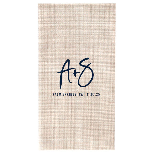 Zoom Show guides Loading product Bold Script Initials Wedding Napkin Diamond Cocktail Napkin Design ID: 829472 Click on swatch to see options Choose Your Napkin Color Active Color 3 ply 3 ply Top quality 3 ply. Dyed tissue. Sand Black Slate Platinum Platinum Pin Dot Dove Gray Dove Gray Borderless White White Borderless White Pin Dot White Scallop Ivory Ivory Borderless Mimosa Lemon Pin Dot Kiwi Kiwi Pin Dot Leaf Pin Dot Spruce Pin Dot Olive Pin Dot Light Navy Dark Turquoise Pin Dot Turquoise Powder Blue Pin Dot Lavender Lavender Pin Dot Purple Merlot Merlot Pin Dot Fuchsia Candy Pink Antique Pink Pin Dot Ballet Pink Ballet Pink Borderless Convertible Red Light Coral Tangerine Out Until: 2025-11-29 Linen Like* - Premium Product Linen Like* - Premium Product Absorbent. Dyed tissue. Airlaid. Premium pricing applies. Pebble Kraft Metallic Copper Ash Grey Black Charcoal Stone Gray Metallic Silver Fog White Ivory Cream Buttercream Metallic Gold Lemon Moss Green Olive Green Hunter Green Pastel Green Lime Eucalyptus Dark Turquoise Bright Sky Powder Blue Navy Lavender Berry Merlot Magenta Pastel Pink Pink Lipstick Red Terracotta Peach Mango Brown Out Until: 2025-11-21 Plum Out Until: 2025-11-13 Crosshatch* - Premium Product Crosshatch* - Premium Product Absorbent. Printed tissue. Airlaid. Premium pricing applies. Crosshatch Black Crosshatch Gray Crosshatch Stone Crosshatch Turquoise Crosshatch Violet Crosshatch Fuchsia Crosshatch Lipstick Red Crosshatch Key Lime Out Until: 2025-11-26 Crosshatch Green Out Until: 2025-11-29 Crosshatch Navy Out Until: 2025-11-24 Woven* - Premium Product Woven* - Premium Product Basketweave texture. Single-sided color. Premium pricing applies. Woven Sand Woven Copper Woven Black Woven Slate Woven Silver Woven Stone Woven Vanilla Woven White Woven Gold Woven Sage Woven Spruce Woven Powder Blue Woven Navy Woven Mauve Woven Convertible Red Woven Tumeric Patterned* - Premium Product Patterned* - Premium Product Exclusive FYP patterns. Single-sided color. Pindot embossed edge. Product pricing applies. Oak Wood Walnut Wood Ebony Wood Ash Wood Birch Wood Marble Sand Marble Gray Marble Navy Marble Taupe Marble Blush Ombre Black Ombre Navy Ombre Robin’s Egg Blue Ombre Rose petal Ombre Coral Watercolor Sea Glass Watercolor Ocean Watercolor Nightfall Watercolor Sangria Watercolor Hibiscus Watercolor Rose Watercolor Sunrise Leaf Sand Leaf Fern Leaf Rain Leaf Rose Tie Dye Sunflower Tie Dye Leaf Tie Dye Turquoise Tie Dye Fuchsia Shimmer* - Premium Product Shimmer* - Premium Product Elegant European Stardream with iridescent finish. Single-sided color. Pindot embossed edge. Premium pricing applies. Champagne Soft Black Galvanized Silver Crystal White Ivory Pearl Gold Sage Navy Amethyst Herringbone* - Premium Product Herringbone* - Premium Product Absorbent. Printed Herringbone pattern. Airlaid. Premium pricing applies. Herringbone Vanilla Mocha Herringbone Gray Onyx Choose Your Imprint Foil Color Active Color Shiny Foil Shiny Foil Metallic, lustrous finish. *Specialty patterned foil may vary on final print Shiny Champagne Shiny Sterling Silver Shiny 18 Kt Gold Shiny Kiwi / Lime Shiny Leaf Shiny Jade Shiny Royal Blue Shiny Amethyst Shiny Fuchsia Shiny Rose Quartz Shiny Rose Gold NEW Shiny Merlot Shiny Convertible Red Shiny Poppy Shiny Copper *Shiny Holographic Gold *Shiny Holographic Silver *Shiny Rainbow Matte Foil Matte Foil Flat finish. Matte NEW Chocolate Matte Black Matte Slate Gray Matte Dove Grey Matte White Matte Ivory Matte Mimosa Yellow Matte Sunflower Matte Key Lime Matte Leaf Matte Spruce Matte Teal/Peacock Matte Azure Matte Royal Blue Matte Navy Matte Amethyst Matte Pastel Pink Matte Ballet Pink Matte Fuchsia Matte Lipstick Red Matte Merlot Matte Tangerine Satin Foil Satin Foil Muted sheen, brushed finish. Satin Sterling Silver Satin 18 Kt. Gold Satin Copper Penny Satin Fuchsia Satin Lipstick Red Satin Leaf Satin Teal / Peacock Satin French Blue Satin Plum Personalize Your Text Line 1 Line 2 Personalize further with different fonts, graphics, positioning, and sizes. (Optional) Customize More Choose Your Quantity Subtotal PRICE INCLUDES: Select a Proof Option: Print As Is I confirm that I have reviewed my design and I understand it will be produced as shown and no proof will be provided. Digital Proof + $15 I would like an expert FYP designer to look at my design, make minor corrections if necessary, and send me a black and white proof before the order is produced. Orders delivered as soon as 11.07.2025. Exclusions apply. Share Your Design About This Design The Bold Script Initials Wedding Napkin features the couple's first initials in an exuberant, bold script, prominently showcasing their union. Beneath, the city and state, along with the event date in print, provide a personalized touch, making this napkin a remarkable statement piece for any celebration. Product Details Product Details Classic 3-ply tissue, 4.75” or 5” square Colors vary Signature foil stamp included Bulk discounts available Expedited shipping options available. Product Description Product Description Classic Cocktail Napkins are the perfect companion for any event. Add a touch of refinement to your cocktail parties, weddings, or birthday celebrations. Whether you're sipping a Martini, Old Fashioned, or a signature cocktail, these beverage napkins are the perfect accompaniment to elevate your drink service to new heights.Traditionally designed with a classic pleated edge, highly absorbent, durable, crafted from high-quality, premium-grade paper, our Classic Cocktail Napkins are an excellent, timeless choice. They are soft to the touch, keeping your guests' hands dry and your furniture protected. Once used, simply discard them, making cleanup a breeze. Explore our Cocktail Napkins Collection to find the perfect option for your event. Due to the complexities of manufacturing, the size of the embossed border on our 3-ply napkins may vary slightly. These discrepancies are a natural part of the manu