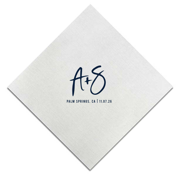 Zoom Show guides Loading product Bold Script Initials Wedding Napkin Diamond Cocktail Napkin Design ID: 829472 Click on swatch to see options Choose Your Napkin Color Active Color 3 ply 3 ply Top quality 3 ply. Dyed tissue. Sand Black Slate Platinum Platinum Pin Dot Dove Gray Dove Gray Borderless White White Borderless White Pin Dot White Scallop Ivory Ivory Borderless Mimosa Lemon Pin Dot Kiwi Kiwi Pin Dot Leaf Pin Dot Spruce Pin Dot Olive Pin Dot Light Navy Dark Turquoise Pin Dot Turquoise Powder Blue Pin Dot Lavender Lavender Pin Dot Purple Merlot Pin Dot Candy Pink Antique Pink Pin Dot Ballet Pink Ballet Pink Borderless Convertible Red Light Coral Merlot Out Until: 2025-12-22 Fuchsia Out Until: 2026-01-05 Linen Like* - Premium Product Linen Like* - Premium Product Absorbent. Dyed tissue. Airlaid. Premium pricing applies. Pebble Kraft Ash Grey Black Charcoal Stone Gray Metallic Silver Fog White Cream Buttercream Lemon Moss Green Hunter Green Pastel Green Lime Eucalyptus Dark Turquoise Bright Sky Powder Blue Navy Lavender Magenta Pastel Pink Pink Terracotta Peach Mango Metallic Copper Out Until: 2026-01-08 Brown Out Until: 2025-12-26 Ivory Out Until: 2026-01-02 Metallic Gold Out Until: 2025-12-24 Olive Green Out Until: 2025-12-24 Berry Out Until: 2025-12-28 Merlot Out Until: 2025-12-25 Lipstick Red Out Until: 2025-12-19 Crosshatch* - Premium Product Crosshatch* - Premium Product Absorbent. Printed tissue. Airlaid. Premium pricing applies. Crosshatch Black Crosshatch Gray Crosshatch Violet Crosshatch Stone Out Until: 2026-01-15 Crosshatch Key Lime Out Until: 2026-01-01 Crosshatch Green Out Until: 2026-01-17 Crosshatch Turquoise Out Until: 2026-01-18 Crosshatch Navy Out Until: 2026-01-01 Crosshatch Fuchsia Out Until: 2025-12-27 Crosshatch Lipstick Red Out Until: 2026-01-16 Woven* - Premium Product Woven* - Premium Product Basketweave texture. Single-sided color. Premium pricing applies. Woven Sand Woven Copper Woven Black Woven Slate Woven Silver Woven Stone Woven Vanilla Woven White Woven Gold Woven Sage Woven Spruce Woven Powder Blue Woven Navy Woven Mauve Woven Convertible Red Woven Tumeric Patterned* - Premium Product Patterned* - Premium Product Exclusive FYP patterns. Single-sided color. Pindot embossed edge. Product pricing applies. Oak Wood Walnut Wood Ebony Wood Ash Wood Birch Wood Marble Sand Marble Gray Marble Navy Marble Taupe Marble Blush Ombre Black Ombre Navy Ombre Robin’s Egg Blue Ombre Rose petal Ombre Coral Watercolor Sea Glass Watercolor Ocean Watercolor Nightfall Watercolor Sangria Watercolor Hibiscus Watercolor Rose Watercolor Sunrise Leaf Sand Leaf Fern Leaf Rain Leaf Rose Tie Dye Sunflower Tie Dye Leaf Tie Dye Turquoise Tie Dye Fuchsia Shimmer* - Premium Product Shimmer* - Premium Product Elegant European Stardream with iridescent finish. Single-sided color. Pindot embossed edge. Premium pricing applies. Champagne Soft Black Galvanized Silver Crystal White Ivory Pearl Gold Sage Navy Amethyst Herringbone* - Premium Product Herringbone* - Premium Product Absorbent. Printed Herringbone pattern. Airlaid. Premium pricing applies. Herringbone Vanilla Mocha Herringbone Gray Onyx Choose Your Imprint Foil Color Active Color Shiny Foil Shiny Foil Metallic, lustrous finish. *Specialty patterned foil may vary on final print Shiny Champagne Shiny Sterling Silver Shiny 18 Kt Gold Shiny Kiwi / Lime Shiny Leaf Shiny Jade Shiny Royal Blue Shiny Amethyst Shiny Fuchsia Shiny Rose Quartz Shiny Rose Gold NEW Shiny Merlot Shiny Convertible Red Shiny Poppy Shiny Copper *Shiny Holographic Gold *Shiny Holographic Silver *Shiny Rainbow Matte Foil Matte Foil Flat finish. Matte NEW Chocolate Matte Black Matte Slate Gray Matte Dove Grey Matte White Matte Ivory Matte Mimosa Yellow Matte Sunflower Matte Key Lime Matte Leaf Matte Spruce Matte Teal/Peacock Matte Azure Matte Royal Blue Matte Navy Matte Amethyst Matte Pastel Pink Matte Ballet Pink Matte Fuchsia Matte Lipstick Red Matte Merlot Matte Tangerine Satin Foil Satin Foil Muted sheen, brushed finish. Satin Sterling Silver Satin 18 Kt. Gold Satin Copper Penny Satin Fuchsia Satin Lipstick Red Satin Leaf Satin Teal / Peacock Satin French Blue Satin Plum Personalize Your Text Line 1 Line 2 Personalize further with different fonts, graphics, positioning, and sizes. (Optional) Customize More Choose Your Quantity Subtotal PRICE INCLUDES: Select a Proof Option: Print As Is I confirm that I have reviewed my design and I understand it will be produced as shown and no proof will be provided. Digital Proof + $15 I would like an expert FYP designer to look at my design, make minor corrections if necessary, and send me a black and white proof before the order is produced. Orders delivered as soon as 01.07.2026. Exclusions apply. Share Your Design About This Design The Bold Script Initials Wedding Napkin features the couple's first initials in an exuberant, bold script, prominently showcasing their union. Beneath, the city and state, along with the event date in print, provide a personalized touch, making this napkin a remarkable statement piece for any celebration. Product Details Product Details Classic 3-ply tissue, 4.75” or 5” square Colors vary Signature foil stamp included Bulk discounts available Expedited shipping options available. Product Description Product Description Classic Cocktail Napkins are the perfect companion for any event. Add a touch of refinement to your cocktail parties, weddings, or birthday celebrations. Whether you're sipping a Martini, Old Fashioned, or a signature cocktail, these beverage napkins are the perfect accompaniment to elevate your drink service to new heights.Traditionally designed with a classic pleated edge, highly absorbent, durable, crafted from high-quality, premium-grade paper, our Classic Cocktail Napkins are an excellent, timeless choice. They are soft to the touch, keeping your guests' hands dry and your furniture protected. Once used, simply discard them, making cleanup a breeze. Explore our Cocktail