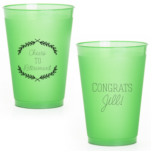 Zoom Show guides Loading product Branch Framed Cheers Cup 16-oz. Frosted Cup Design ID: 2953 Click on swatch to see options Choose Your Screen Print Active Color Metallic Cup Ink Metallic Cup Ink Silver Ink Gold Ink Copper Ink Matte Cup Ink Matte Cup Ink Matte Chocolate Ink Matte Black Ink Matte Slate Gray Ink Matte White Ink Matte Sunflower Ink Matte Moss Green Ink Matte Sage Ink Matte Leaf Ink Matte Spruce Matte Teal/Peacock Ink Matte Sky Blue Ink Matte French Blue Ink Matte Royal Blue Ink Matte Navy Ink Matte Cobalt Ink Matte Lavender Ink Matte Ballet Pink Ink Matte Fuchsia Ink Matte Lipstick Red Ink Matte Merlot Ink Matte Tangerine Ink Personalize Your Text Front - Line 1 Back - Line 2 Personalize further with different fonts, graphics, positioning, and sizes. (Optional) Customize More Choose Your Quantity Subtotal PRICE INCLUDES: Select a Proof Option: Print As Is I confirm that I have reviewed my design and I understand it will be produced as shown and no proof will be provided. Digital Proof + $15 I would like an expert FYP designer to look at my design, make minor corrections if necessary, and send me a black and white proof before the order is produced. Orders delivered as soon as 12.17.2025. Exclusions apply. Share Your Design About This Design Raise a cup of honor with the Branch Framed Cheers Cup, elegantly bordered by arching leaves. Personalize with any milestone, while 'Congrats' and the achiever's name on the back toast to their distinguished success. Product Details Product Details Minimum order of 50 Measures 4.5" tall and 3.5" wide at the top Holds 15.1 oz flush fill volume Ideal for beer BPA-free and recyclable Shatterproof and top-rack dishwasher safe Bulk discounts available Expedited shipping options available. Product Description Product Description Frost flex cups from For Your Party are a perfect accent to any event, from weddings to birthdays. Their translucent plastic complements any drink or color scheme, and can have any art you can imagine. They’re also reusable, so your guests can have a keepsake from your special day. Like our 14 oz. frost flex cups , our 16 oz. frost flex cups are made in the USA, BPA free, and can be hand-washed again and again to remember your event. Our 16 oz. size is perfect for beer or signature cocktails, and has a flush fill volume of 15.1 oz. Product Options 16-oz. Frosted Cup 10-oz.Frosted Cup 12-oz. Frosted Cup 14-oz.Frosted Cup 24-oz. Frosted Cup 12oz Frost Flex Color 16oz Frost Flex Color Related Products 16-oz. Frosted Cup 10-oz.Frosted Cup 12-oz. Frosted Cup 14-oz.Frosted Cup 24-oz. Frosted Cup 12oz Frost Flex Color 16oz Frost Flex Color
