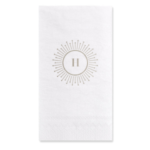 Zoom Show guides Loading product Burst Initial Napkin Diamond Shimmer Cocktail Napkin Design ID: 6923 Click on swatch to see options Choose Your Napkin Color Active Color Shimmer* - Premium Product Shimmer* - Premium Product Elegant European Stardream with iridescent finish. Single-sided color. Pindot embossed edge. Premium pricing applies. Champagne Soft Black Galvanized Silver Crystal White Ivory Pearl Gold Sage Navy Amethyst Choose Your Imprint Foil Color Active Color Shiny Foil Shiny Foil Metallic, lustrous finish. *Specialty patterned foil may vary on final print Shiny Champagne Shiny Sterling Silver Shiny 18 Kt Gold Shiny Kiwi / Lime Shiny Leaf Shiny Jade Shiny Royal Blue Shiny Amethyst Shiny Fuchsia Shiny Rose Quartz Shiny Rose Gold NEW Shiny Merlot Shiny Convertible Red Shiny Poppy Shiny Copper *Shiny Holographic Gold *Shiny Holographic Silver *Shiny Rainbow Matte Foil Matte Foil Flat finish. Matte NEW Chocolate Matte Black Matte Slate Gray Matte Dove Grey Matte White Matte Ivory Matte Mimosa Yellow Matte Sunflower Matte Key Lime Matte Leaf Matte Spruce Matte Teal/Peacock Matte Azure Matte Royal Blue Matte Navy Matte Amethyst Matte Pastel Pink Matte Ballet Pink Matte Fuchsia Matte Lipstick Red Matte Merlot Matte Tangerine Satin Foil Satin Foil Muted sheen, brushed finish. Satin Sterling Silver Satin 18 Kt. Gold Satin Copper Penny Satin Fuchsia Satin Lipstick Red Satin Leaf Satin Teal / Peacock Satin French Blue Satin Plum Personalize Your Text Line 1 Personalize further with different fonts, graphics, positioning, and sizes. (Optional) Customize More Choose Your Quantity Subtotal PRICE INCLUDES: Select a Proof Option: Print As Is I confirm that I have reviewed my design and I understand it will be produced as shown and no proof will be provided. Digital Proof + $15 I would like an expert FYP designer to look at my design, make minor corrections if necessary, and send me a black and white proof before the order is produced. Orders delivered as soon as 11.07.2025. Exclusions apply. Share Your Design About This Design Our beautiful custom Crystal White Shimmer Cocktail Napkin with Shiny Green Tea Imprint Foil Color has a sunburst frame 2 graphic and is good for use in Elegant themed parties and will give your party the personalized touch every host desires. Product Details Product Details Classic 3-ply tissue with select shimmer finish and pindot embossed edge Measures approximately 4.75" to 5" Signature foil stamp included Bulk discounts available Expedited shipping options available. Product Description Product Description Meet the personalized Shimmer Cocktail Napkins, where elegance meets sparkle. These stunning napkins are designed to captivate and impress. Whether you're hosting a lively birthday party, a festive holiday soirée, or an upscale wedding reception, our Shimmer Cocktail Napkins will enhance the atmosphere with their alluring shimmer. Crafted with elegance in mind, our Shimmer Cocktail Napkins feature a delicate shimmering finish that catches the light and creates a mesmerizing effect. Not only do these napkins offer eye-catching aesthetics, but they are also highly practical. Made from premium-quality materials, they are absorbent and reliable, keeping your guests' hands clean and dry. Product Options Diamond Shimmer Cocktail Napkin Diamond Luncheon Napkin Paper Guest Towel Related Products Diamond Shimmer Cocktail Napkin Diamond Luncheon Napkin Paper Guest Towel