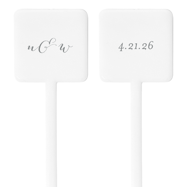 Zoom Show guides Loading product Calligraphy Initials Stirrer Rectangle Stir Stick Design ID: 2496 Click on swatch to see options Choose Your Imprint Foil Color Active Color Shiny Foil Shiny Foil Metallic, lustrous finish. *Specialty patterned foil may vary on final print Shiny Champagne Shiny Sterling Silver Shiny 18 Kt Gold Shiny Kiwi / Lime Shiny Leaf Shiny Spruce Shiny Jade Shiny Royal Blue Shiny Amethyst Shiny Fuchsia Shiny Rose Quartz Shiny Rose Gold NEW Shiny Merlot Shiny Convertible Red Shiny Poppy Shiny Copper *Shiny Holographic Gold *Shiny Holographic Silver *Shiny Rainbow Matte Foil Matte Foil Flat finish. Matte NEW Chocolate Matte Black Matte Slate Gray Matte Dove Grey Matte White Matte Ivory Matte Mimosa Yellow Matte Sunflower Matte Key Lime Matte Leaf Matte Teal/Peacock Matte Azure Matte Royal Blue Matte Navy Matte Amethyst Matte Pastel Pink Matte Ballet Pink Matte Fuchsia Matte Lipstick Red Matte Merlot Matte Tangerine Satin Foil Satin Foil Muted sheen, brushed finish. Satin Sterling Silver Satin 18 Kt. Gold Satin Copper Penny Satin Fuchsia Satin Lipstick Red Satin Leaf Satin Teal / Peacock Satin French Blue Satin Plum Personalize Your Text Front Line 1 Back Line 1 Personalize further with different fonts, graphics, positioning, and sizes. (Optional) Customize More Choose Your Quantity Subtotal PRICE INCLUDES: Select a Proof Option: Print As Is I confirm that I have reviewed my design and I understand it will be produced as shown and no proof will be provided. Digital Proof + $15 I would like an expert FYP designer to look at my design, make minor corrections if necessary, and send me a black and white proof before the order is produced. Orders delivered as soon as 04.24.2026. Exclusions apply. Share Your Design About This Design Stir up elegance with the Calligraphy Initials Stirrer, featuring a couple's initials in refined calligraphy, joined by a swirling ampersand. The flip side's date adds a bespoke twist, elevating cocktails with a dash of personalized panache. Product Details Product Details 100 minimum 6” tall, heads are 1" wide Natural wood Expedited options available Product Description Product Description Our Stir Sticks are biodegradable with a beautiful wood finish. Available in three shapes, you can personalize the head of this product with one of our premade designs or create something from scratch in the FYP Customizer. As these are a natural item, variations and splintering may occur on these eco friendly stir sticks. For a different option, explore our plastic stir sticks. Their glossy finish and sturdy build make them a durable choice and add a modern look to your signature cocktails. Personalize your Stir Sticks with text and illustrations from our extensive, designer-curated collection. With over 100 paper colors, 150 fonts, 50 foil colors and 1,300 clipart images, you can create the perfect party accessories for your event. You also have the option to Upload Your Own Art for a truly unique product. Please note that because of their size, only certain designs will fit on your Stir Sticks. Product Options Rectangle Stir Stick Round Plastic Stir Stick Oval Stir Stick Square Plastic Stir Stick Round Stir Stick Related Products Rectangle Stir Stick Round Plastic Stir Stick Oval Stir Stick Square Plastic Stir Stick Round Stir Stick