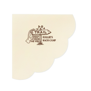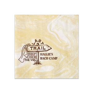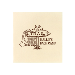 Zoom Show guides Loading product Camp Bachelorette Last Trail Napkin Square Cocktail Napkin Design ID: 2866831 Click on swatch to see options Choose Your Product Color Active Color 3 ply 3 ply Top quality 3 ply. Dyed tissue. Sand Black Slate Platinum Pin Dot Dove Gray Dove Gray Borderless White White Borderless White Pin Dot White Scallop Ivory Ivory Borderless Kiwi Pin Dot Spruce Pin Dot Olive Pin Dot Dark Navy Pin Dot Light Navy Dark Turquoise Pin Dot Turquoise Powder Blue Pin Dot Lavender Pin Dot Merlot Pin Dot Antique Pink Pin Dot Ballet Pink Ballet Pink Borderless Convertible Red Light Coral Tangerine Pin Dot Platinum Out Until: 2026-04-18 Mimosa Out Until: 2026-05-04 Lemon Pin Dot Out Until: 2026-04-13 Kiwi Out Until: 2026-04-14 Leaf Pin Dot Out Until: 2026-04-25 Lavender Out Until: 2026-04-17 Merlot Out Until: 2026-04-05 Fuchsia Out Until: 2026-04-21 Candy Pink Out Until: 2026-05-01 Linen Like* - Premium Product Linen Like* - Premium Product Absorbent. Dyed tissue. Airlaid. Premium pricing applies. Pebble Kraft Metallic Copper Ash Grey Brown Black Charcoal Stone Gray Metallic Silver Fog White Ivory Cream Buttercream Metallic Gold Lemon Moss Green Olive Green Hunter Green Pastel Green Lime Eucalyptus Dark Turquoise Bright Sky Powder Blue Navy Lavender Berry Magenta Pink Pastel Pink Lipstick Red Terracotta Peach Mango Merlot Crosshatch* - Premium Product Crosshatch* - Premium Product Absorbent. Printed tissue. Airlaid. Premium pricing applies. Crosshatch Black Crosshatch Gray Crosshatch Stone Crosshatch Key Lime Crosshatch Green Crosshatch Navy Crosshatch Turquoise Out Until: 2026-05-10 Crosshatch Violet Out Until: 2026-05-03 Crosshatch Fuchsia Out Until: 2026-01-29 Crosshatch Lipstick Red Out Until: 2026-04-16 Woven* - Premium Product Woven* - Premium Product Basketweave texture. Single-sided color. Premium pricing applies. Woven Sand Woven Copper Woven Black Woven Slate Woven Silver Woven Stone Woven Vanilla Woven White Woven Gold Woven Sage Woven Spruce Woven Powder Blue Woven Navy Woven Mauve Woven Convertible Red Woven Tumeric Patterned* - Premium Product Patterned* - Premium Product Exclusive FYP patterns. Single-sided color. Pindot embossed edge. Product pricing applies. Oak Wood Walnut Wood Ebony Wood Ash Wood Birch Wood Marble Sand Marble Gray Marble Navy Marble Taupe Marble Blush Ombre Black Ombre Navy Ombre Robin’s Egg Blue Ombre Rose Petal Ombre Coral Watercolor Sea Glass Watercolor Ocean Watercolor Nightfall Watercolor Sangria Watercolor Hibiscus Watercolor Rose Watercolor Sunrise Leaf Sand Leaf Fern Leaf Rain Leaf Rose Tie Dye Sunflower Tie Dye Leaf Tie Dye Turquoise Tie Dye Fuchsia Shimmer* - Premium Product Shimmer* - Premium Product Elegant European Stardream with iridescent finish. Single-sided color. Pindot embossed edge. Premium pricing applies. Champagne Soft Black Galvanized Silver Crystal White Ivory Pearl Gold Sage Navy Amethyst Herringbone* - Premium Product Herringbone* - Premium Product Absorbent. Printed Herringbone pattern. Airlaid. Premium pricing applies. Herringbone Gray Onyx Herringbone Vanilla Mocha Out Until: 2026-04-21 Choose Your Imprint Foil Color Active Color Shiny Foil Shiny Foil Metallic, lustrous finish. *Specialty patterned foil may vary on final print Shiny Champagne Shiny Sterling Silver Shiny 18 Kt Gold Shiny Kiwi / Lime Shiny Leaf Shiny Spruce Shiny Jade Shiny Royal Blue Shiny Amethyst Shiny Fuchsia Shiny Rose Quartz Shiny Rose Gold NEW Shiny Merlot Shiny Convertible Red Shiny Poppy Shiny Copper *Shiny Holographic Gold *Shiny Holographic Silver *Shiny Rainbow Matte Foil Matte Foil Flat finish. Matte NEW Chocolate Matte Black Matte Slate Gray Matte Dove Grey Matte White Matte Ivory Matte Mimosa Yellow Matte Sunflower Matte Key Lime Matte Leaf Matte Teal/Peacock Matte Azure Matte Royal Blue Matte Navy Matte Amethyst Matte Pastel Pink Matte Ballet Pink Matte Fuchsia Matte Lipstick Red Matte Merlot Matte Tangerine Satin Foil Satin Foil Muted sheen, brushed finish. Satin Sterling Silver Satin 18 Kt. Gold Satin Copper Penny Satin Fuchsia Satin Lipstick Red Satin Leaf Satin Teal / Peacock Satin French Blue Satin Plum Personalize Your Text Line 1 Line 2 Personalize further with different fonts, graphics, positioning, and sizes. (Optional) Customize More Choose Your Quantity Subtotal PRICE INCLUDES: Select a Proof Option: Print As Is I confirm that I have reviewed my design and I understand it will be produced as shown and no proof will be provided. Digital Proof + $15 I would like an expert FYP designer to look at my design, make minor corrections if necessary, and send me a black and white proof before the order is produced. Orders delivered as soon as 04.22.2026. Exclusions apply. Share Your Design About This Design Embark on the ultimate pre-wedding hike with the Camp Bachelorette Last Trail Napkin, featuring a trailhead arrow donning a bridal veil and the playful words "Last Trail Before the Veil." Personalize with the bachelorette's name for a whimsical touch to your wilderness celebration. Product Details Product Details Classic 3-ply tissue, 4.75” or 5” square Colors vary Signature foil stamp included Bulk discounts available Expedited shipping options available. Product Description Product Description Classic Cocktail Napkins are the perfect companion for any event. Add a touch of refinement to your cocktail parties, weddings, or birthday celebrations. Whether you're sipping a Martini, Old Fashioned, or a signature cocktail, these beverage napkins are the perfect accompaniment to elevate your drink service to new heights.Traditionally designed with a classic pleated edge, highly absorbent, durable, crafted from high-quality, premium-grade paper, our Classic Cocktail Napkins are an excellent, timeless choice. They are soft to the touch, keeping your guests' hands dry and your furniture protected. Once used, simply discard them, making cleanup a breeze. Explore our Cocktail Napkins Collection to find the perfect option for your even