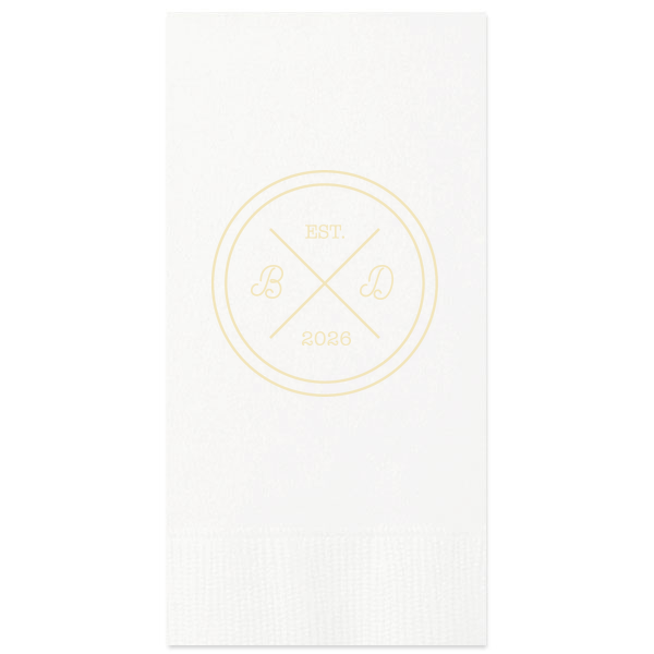 Zoom Show guides Loading product Circle Badge Initials Napkin Diamond Cocktail Napkin Design ID: 7308 Click on swatch to see options Choose Your Napkin Color Active Color 3 ply 3 ply Top quality 3 ply. Dyed tissue. Sand Black Slate Platinum Platinum Pin Dot Dove Gray Dove Gray Borderless White White Borderless White Pin Dot White Scallop Ivory Ivory Borderless Mimosa Lemon Pin Dot Kiwi Kiwi Pin Dot Leaf Pin Dot Spruce Pin Dot Olive Pin Dot Light Navy Dark Turquoise Pin Dot Turquoise Powder Blue Pin Dot Lavender Lavender Pin Dot Purple Merlot Pin Dot Candy Pink Antique Pink Pin Dot Ballet Pink Ballet Pink Borderless Convertible Red Light Coral Merlot Out Until: 2025-12-22 Fuchsia Out Until: 2026-01-05 Linen Like* - Premium Product Linen Like* - Premium Product Absorbent. Dyed tissue. Airlaid. Premium pricing applies. Pebble Kraft Ash Grey Black Charcoal Stone Gray Metallic Silver Fog White Cream Buttercream Lemon Moss Green Hunter Green Pastel Green Lime Eucalyptus Dark Turquoise Bright Sky Powder Blue Navy Lavender Magenta Pastel Pink Pink Terracotta Peach Mango Metallic Copper Out Until: 2026-01-08 Brown Out Until: 2025-12-26 Ivory Out Until: 2026-01-02 Metallic Gold Out Until: 2025-12-24 Olive Green Out Until: 2025-12-24 Berry Out Until: 2025-12-28 Merlot Out Until: 2025-12-25 Lipstick Red Out Until: 2025-12-19 Crosshatch* - Premium Product Crosshatch* - Premium Product Absorbent. Printed tissue. Airlaid. Premium pricing applies. Crosshatch Black Crosshatch Gray Crosshatch Green Crosshatch Turquoise Crosshatch Violet Crosshatch Stone Out Until: 2026-01-15 Crosshatch Key Lime Out Until: 2026-01-01 Crosshatch Navy Out Until: 2026-01-01 Crosshatch Fuchsia Out Until: 2025-12-27 Crosshatch Lipstick Red Out Until: 2026-01-16 Woven* - Premium Product Woven* - Premium Product Basketweave texture. Single-sided color. Premium pricing applies. Woven Sand Woven Copper Woven Black Woven Slate Woven Silver Woven Stone Woven Vanilla Woven White Woven Gold Woven Sage Woven Spruce Woven Powder Blue Woven Navy Woven Mauve Woven Convertible Red Woven Tumeric Patterned* - Premium Product Patterned* - Premium Product Exclusive FYP patterns. Single-sided color. Pindot embossed edge. Product pricing applies. Oak Wood Walnut Wood Ebony Wood Ash Wood Birch Wood Marble Sand Marble Gray Marble Navy Marble Taupe Marble Blush Ombre Black Ombre Navy Ombre Robin’s Egg Blue Ombre Rose petal Ombre Coral Watercolor Sea Glass Watercolor Ocean Watercolor Nightfall Watercolor Sangria Watercolor Hibiscus Watercolor Rose Watercolor Sunrise Leaf Sand Leaf Fern Leaf Rain Leaf Rose Tie Dye Sunflower Tie Dye Leaf Tie Dye Turquoise Tie Dye Fuchsia Shimmer* - Premium Product Shimmer* - Premium Product Elegant European Stardream with iridescent finish. Single-sided color. Pindot embossed edge. Premium pricing applies. Champagne Soft Black Galvanized Silver Crystal White Ivory Pearl Gold Sage Navy Amethyst Herringbone* - Premium Product Herringbone* - Premium Product Absorbent. Printed Herringbone pattern. Airlaid. Premium pricing applies. Herringbone Vanilla Mocha Herringbone Gray Onyx Choose Your Imprint Foil Color Active Color Shiny Foil Shiny Foil Metallic, lustrous finish. *Specialty patterned foil may vary on final print Shiny Champagne Shiny Sterling Silver Shiny 18 Kt Gold Shiny Kiwi / Lime Shiny Leaf Shiny Jade Shiny Royal Blue Shiny Amethyst Shiny Fuchsia Shiny Rose Quartz Shiny Rose Gold NEW Shiny Merlot Shiny Convertible Red Shiny Poppy Shiny Copper *Shiny Holographic Gold *Shiny Holographic Silver *Shiny Rainbow Matte Foil Matte Foil Flat finish. Matte NEW Chocolate Matte Black Matte Slate Gray Matte Dove Grey Matte White Matte Ivory Matte Mimosa Yellow Matte Sunflower Matte Key Lime Matte Leaf Matte Spruce Matte Teal/Peacock Matte Azure Matte Royal Blue Matte Navy Matte Amethyst Matte Pastel Pink Matte Ballet Pink Matte Fuchsia Matte Lipstick Red Matte Merlot Matte Tangerine Satin Foil Satin Foil Muted sheen, brushed finish. Satin Sterling Silver Satin 18 Kt. Gold Satin Copper Penny Satin Fuchsia Satin Lipstick Red Satin Leaf Satin Teal / Peacock Satin French Blue Satin Plum Personalize Your Text Line 1 Line 2 Line 3 Personalize further with different fonts, graphics, positioning, and sizes. (Optional) Customize More Choose Your Quantity Subtotal PRICE INCLUDES: Select a Proof Option: Print As Is I confirm that I have reviewed my design and I understand it will be produced as shown and no proof will be provided. Digital Proof + $15 I would like an expert FYP designer to look at my design, make minor corrections if necessary, and send me a black and white proof before the order is produced. Orders delivered as soon as 12.23.2025. Exclusions apply. Share Your Design About This Design Infuse your reception with the bespoke elegance of the Circle Badge Initials Napkin, reminiscent of an exclusive club crest. 'EST.' and the wedding year anchor the design, with the couple's scripted initials nestled within the distinguished bands, crafting a personal insignia of love. Product Details Product Details Classic 3-ply tissue, 4.75” or 5” square Colors vary Signature foil stamp included Bulk discounts available Expedited shipping options available. Product Description Product Description Classic Cocktail Napkins are the perfect companion for any event. Add a touch of refinement to your cocktail parties, weddings, or birthday celebrations. Whether you're sipping a Martini, Old Fashioned, or a signature cocktail, these beverage napkins are the perfect accompaniment to elevate your drink service to new heights.Traditionally designed with a classic pleated edge, highly absorbent, durable, crafted from high-quality, premium-grade paper, our Classic Cocktail Napkins are an excellent, timeless choice. They are soft to the touch, keeping your guests' hands dry and your furniture protected. Once used, simply discard them, making cleanup a breeze. Explore our Cocktail Napkins Collection to find the perfect option for your event. Due 