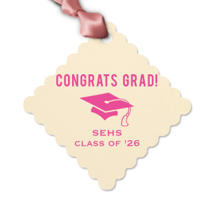 Zoom Show guides Loading product Congrats Grad Block Font Letterpress Gift Tag Diamond Gift Tag Design ID: 2143413 Click on swatch to see options Choose Your Paper Color Active Color Natural Natural Smooth, matte finish. Double-sided color. 100lb+ cover stock. Natural NEW Frost White Natural Ivory Choose Your Letterpress Inks Active Color Letterpress Inks Letterpress Inks Platinum Black Hot Pink Chocolate Ivy Mint Violet Slate Mint Light Coral Lipstick Red Navy Liberty Blue Teal/Peacock Mustard Gold Choose Your Ribbon Color Active Color Ribbons - Additional Charge Ribbons - Additional Charge Champagne Copper Brownie Black Slate Sterling Silver White Ivory Pearl Gold Mimosa Sunflower Forest Olive Pistachio Green Tea Peacock Robin’s Egg Blue Turquoise Dark Turquoise Navy Royal Blue Glacier Blue Sky Blue Lavender Violet Amethyst Cranberry Merlot Plum Candy Pink Ballet Pink Rose Petal Brick Convertible Red None Espresso Out Until: 2026-01-05 Gold Out Until: 2026-01-07 Kiwi Out Until: 2026-01-04 Leaf Out Until: 2025-12-24 Fuchsia Out Until: 2026-01-06 Tangerine Out Until: 2026-01-06 Personalize Your Text Line 1 Line 2 Personalize further with different fonts, graphics, positioning, and sizes. (Optional) Customize More Choose Your Quantity Subtotal PRICE INCLUDES: Select a Proof Option: Print As Is I confirm that I have reviewed my design and I understand it will be produced as shown and no proof will be provided. Digital Proof + $15 I would like an expert FYP designer to look at my design, make minor corrections if necessary, and send me a black and white proof before the order is produced. Orders delivered as soon as 12.22.2025. Exclusions apply. Share Your Design About This Design Personalized Natural Leaf Diamond Gift Tag with Shiny 18 Kt Gold Foil has a Cap graphic and is good for use in Graduation themed parties and can be personalized to match your party's exact theme and tempo. Product Details Product Details 25 minimum 2.75" w X 2.75" h Volume discounts Expedited options available Product Description Product Description Add a facet of brilliance to your celebrations with our Custom Letterpress Diamond Gift Tags, crafted to shimmer with uniqueness. Ideal for Christmas parties, luxurious weddings, diamond anniversaries, and sparkling soirees, these tags epitomize refinement. Demonstrating artisanal precision, each tag boasts the deeply textured and exquisite feel that only letterpress offers. Their diamond-shaped design not only ensures distinction but also promises lasting impressions. By integrating personal elegance with utility, these tags present shoppers with the dual advantage of customization and sophistication. Enhance your event's radiant theme with coordinating items from our custom gift bags collection. Product Options Diamond Gift Tag Large Scalloped Gift Tag Large Oval Gift Tag Large Round Gift Tag Related Products Diamond Gift Tag Large Scalloped Gift Tag Large Oval Gift Tag Large Round Gift Tag