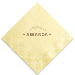 Zoom Show guides Loading product Congrats to The Graduate Napkin Diamond Luncheon Napkin Design ID: 2821097 Click on swatch to see options Choose Your Product Color Active Color 3 ply 3 ply Top quality 3 ply. Dyed tissue. Sand Bronze Black Slate Platinum Platinum Pin Dot Dove Gray Dove Gray Borderless White White Borderless Ivory Ivory Borderless Mimosa/Yellow Sunflower Kiwi Pin Dot Leaf Spruce Pin Dot Olive Pin Dot Light Navy Dark Turquoise Pin Dot Teal Turquoise Powder Blue Pin Dot Lavender Lavender Pin Dot Merlot Ballet Pink Convertible Red Light Coral Lemon Pin Dot Out Until: 2026-05-14 Kiwi Out Until: 2026-05-13 Violet Out Until: 2026-05-13 Merlot Pin Dot Out Until: 2026-05-12 Fuchsia Out Until: 2026-01-29 Antique Pink Pin Dot Out Until: 2026-05-16 Coral Out Until: 2026-05-26 Linen Like* - Premium Product Linen Like* - Premium Product Absorbent. Dyed tissue. Airlaid. Premium pricing applies. Kraft Black Fog White Olive Green Shimmer* - Premium Product Shimmer* - Premium Product Elegant European Stardream with iridescent finish. Single-sided color. Pindot embossed edge. Premium pricing applies. Crystal White Ivory Pearl Gold Choose Your Foil Color Active Color Shiny Foil Shiny Foil Metallic, lustrous finish. *Specialty patterned foil may vary on final print Shiny Champagne Shiny Sterling Silver Shiny 18 Kt Gold Shiny Kiwi / Lime Shiny Leaf Shiny Spruce Shiny Jade Shiny Royal Blue Shiny Amethyst Shiny Fuchsia Shiny Rose Quartz Shiny Rose Gold NEW Shiny Merlot Shiny Convertible Red Shiny Poppy Shiny Copper *Shiny Holographic Gold *Shiny Holographic Silver *Shiny Rainbow Matte Foil Matte Foil Flat finish. Matte NEW Chocolate Matte Black Matte Slate Gray Matte Dove Grey Matte White Matte Ivory Matte Mimosa Yellow Matte Sunflower Matte Key Lime Matte Leaf Matte Teal/Peacock Matte Azure Matte Royal Blue Matte Navy Matte Amethyst Matte Pastel Pink Matte Ballet Pink Matte Fuchsia Matte Lipstick Red Matte Merlot Matte Tangerine Satin Foil Satin Foil Muted sheen, brushed finish. Satin Sterling Silver Satin 18 Kt. Gold Satin Copper Penny Satin Fuchsia Satin Lipstick Red Satin Leaf Satin Teal / Peacock Satin French Blue Satin Plum Personalize Your Text Line 1 Line 2 Personalize further with different fonts, graphics, positioning, and sizes. (Optional) Customize More Choose Your Quantity Subtotal PRICE INCLUDES: Select a Proof Option: Print As Is I confirm that I have reviewed my design and I understand it will be produced as shown and no proof will be provided. Digital Proof + $15 I would like an expert FYP designer to look at my design, make minor corrections if necessary, and send me a black and white proof before the order is produced. Orders delivered as soon as 05.12.2026. Exclusions apply. Share Your Design About This Design Celebrate the grad with the Congrats To The Graduate Napkin! Featuring arched text declaring a congratulatory message to the honoree, you can personalize this napkin with your name for a graduation party. Product Details Product Details Classic 3-ply tissue Measures approximately 6.5" x 6.5" Signature foil stamp included Bulk discounts available Expedited shipping options available. Product Description Product Description The Luncheon Napkin provides ample coverage, making them suitable for a variety of dining settings. They are ideal for luncheons, showers, or any event where a larger napkin is preferred. These napkins provide a versatile and convenient option for showcasing your custom design or logo, making every occasion truly unique.Crafted with attention to detail, our Classic Luncheon Napkins are made from premium paper that offers both softness and durability. The napkins provide a comfortable experience for your guests while ensuring they can efficiently handle spills or messes during meals. Elevate your dining experience with these custom luncheon napkins.Due to the complexities of manufacturing, the size of the embossed border on our 3-ply napkins may vary slightly. These discrepancies are a natural part of the manufacturing process and do not impact the overall quality or functionality of the napkins. Product Options Diamond Luncheon Napkin Diamond Cocktail Napkin Diamond Shimmer Luncheon Napkin Diamond Linen Like Luncheon Napkin Patterned Diamond Cocktail Napkin Woven Diamond Cocktail Napkin Paper Guest Towel Diamond Dinner Napkin Shimmer Guest Hand Towel Paper Guest Towel Diamond Petite Napkin Diamond Bottom Scalloped Luncheon Napkin Diamond Shimmer Cocktail Napkin Diamond Linen Like Cocktail Napkin Diamond Crosshatch Cocktail Napkin Diamond Linen Like Dinner Napkin Related Products Diamond Luncheon Napkin Diamond Cocktail Napkin Diamond Shimmer Luncheon Napkin Diamond Linen Like Luncheon Napkin Patterned Diamond Cocktail Napkin Woven Diamond Cocktail Napkin Paper Guest Towel Diamond Dinner Napkin Shimmer Guest Hand Towel Paper Guest Towel Diamond Petite Napkin Diamond Bottom Scalloped Luncheon Napkin Diamond Shimmer Cocktail Napkin Diamond Linen Like Cocktail Napkin Diamond Crosshatch Cocktail Napkin Diamond Linen Like Dinner Napkin