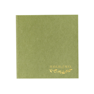 Zoom Show guides Loading product Couples Branch Napkin Square Linen Like Cocktail Napkin Design ID: 605528 Click on swatch to see options Choose Your Product Color Active Color Linen Like* - Premium Product Linen Like* - Premium Product Absorbent. Dyed tissue. Airlaid. Premium pricing applies. Pebble Kraft Ash Grey Black Charcoal Stone Gray Fog White Ivory Cream Buttercream Lemon Moss Green Olive Green Hunter Green Pastel Green Lime Eucalyptus Dark Turquoise Bright Sky Powder Blue Navy Lavender Berry Merlot Magenta Pink Pastel Pink Lipstick Red Terracotta Peach Mango Metallic Silver Metallic Gold Metallic Copper Brown Out Until: 2025-11-21 Plum Out Until: 2025-11-13 Crosshatch* - Premium Product Crosshatch* - Premium Product Absorbent. Printed tissue. Airlaid. Premium pricing applies. Crosshatch Black Crosshatch Gray Crosshatch Stone Crosshatch Turquoise Crosshatch Violet Crosshatch Fuchsia Crosshatch Lipstick Red Crosshatch Key Lime Out Until: 2025-11-26 Crosshatch Green Out Until: 2025-11-29 Crosshatch Navy Out Until: 2025-11-24 Herringbone* - Premium Product Herringbone* - Premium Product Absorbent. Printed Herringbone pattern. Airlaid. Premium pricing applies. Herringbone Vanilla Mocha Herringbone Gray Onyx Choose Your Imprint Foil Color Active Color Shiny Foil Shiny Foil Metallic, lustrous finish. *Specialty patterned foil may vary on final print Shiny Champagne Shiny Sterling Silver Shiny 18 Kt Gold Shiny Kiwi / Lime Shiny Leaf Shiny Jade Shiny Royal Blue Shiny Amethyst Shiny Fuchsia Shiny Rose Quartz Shiny Rose Gold NEW Shiny Merlot Shiny Convertible Red Shiny Poppy Shiny Copper *Shiny Holographic Gold *Shiny Holographic Silver *Shiny Rainbow Matte Foil Matte Foil Flat finish. Matte NEW Chocolate Matte Black Matte Slate Gray Matte Dove Grey Matte White Matte Ivory Matte Mimosa Yellow Matte Sunflower Matte Key Lime Matte Leaf Matte Spruce Matte Teal/Peacock Matte Azure Matte Royal Blue Matte Navy Matte Amethyst Matte Pastel Pink Matte Ballet Pink Matte Fuchsia Matte Lipstick Red Matte Merlot Matte Tangerine Satin Foil Satin Foil Muted sheen, brushed finish. Satin Sterling Silver Satin 18 Kt. Gold Satin Copper Penny Satin Fuchsia Satin Lipstick Red Satin Leaf Satin Teal / Peacock Satin French Blue Satin Plum Personalize Your Text Line 1 Line 2 Line 3 Personalize further with different fonts, graphics, positioning, and sizes. (Optional) Customize More Choose Your Quantity Subtotal PRICE INCLUDES: Select a Proof Option: Print As Is I confirm that I have reviewed my design and I understand it will be produced as shown and no proof will be provided. Digital Proof + $15 I would like an expert FYP designer to look at my design, make minor corrections if necessary, and send me a black and white proof before the order is produced. Orders delivered as soon as 11.07.2025. Exclusions apply. Share Your Design About This Design Custom White Linen Like Cocktail Napkin with Satin Leaf Foil has a Branch 4 graphic and is good for use in Floral, Wedding, and Bridal Shower themed parties and will make your guests swoon. Personalize your party's theme today. Product Details Product Details Deluxe air laid paper Measures approximately 5" x 5" Signature foil stamp included Bulk discounts available Expedited shipping options available. Product Description Product Description Introducing our custom Linen-Like Cocktail Napkins, the epitome of elegance and refinement for your sophisticated gatherings. Whether you're hosting a formal wedding reception or a chic cocktail soirée, these linen cocktail napkins effortlessly complement any table setting. Their soft and gentle touch will leave a lasting impression on guests, showcasing your commitment to providing a truly upscale experience. Meticulously crafted, these napkins exude the luxurious look and feel of fine linen while offering the convenience of being disposable. Crafted from premium-quality materials, they are highly absorbent and the same dimensions as our classic cocktail napkins. With the perfect blend of functionality and elegance, you can elevate any upscale bar or lounge. Product Options Square Linen Like Cocktail Napkin Paper Guest Towel Square Linen Like Dinner Napkin Related Products Square Linen Like Cocktail Napkin Paper Guest Towel Square Linen Like Dinner Napkin
