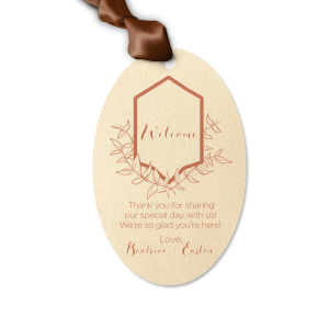 Zoom Show guides Loading product Crest Welcome Tag Luggage Tag Design ID: 2403 Click on swatch to see options Choose Your Paper Color Active Color Natural Natural Smooth, matte finish. Double-sided color. 100lb+ cover stock. Natural NEW Sand Natural Khaki Natural NEW Kraft Natural Mushroom Natural NEW Chocolate Natural Black Natural Slate Natural Gray Natural Smoke Natural NEW Frost White Natural Ivory Natural Olive Natural Dark Sage Natural Eucalyptus Natural Fern Natural Leaf Natural Spruce Natural Dark Teal Natural Royal Blue Natural NEW Amethyst Natural Scarlet Natural Antique Rose Natural Terracotta Natural Harvest Shiny Shiny Smooth, high-gloss finish. Single-sided color. 100lb+ cover stock. Shiny Black Shiny White Shiny Navy Blue Shiny Fuchsia Shiny Convertible Red Linen Linen Slightly textured, matte finish. Double-sided color. 100lb+ cover stock. Linen Convertible Red Linen Black Linen Slate Linen Antique Gray Linen White Linen Eggshell Linen Ivory Linen Pearl Cream Linen Navy Blue Stardream Stardream European Stardream with iridescent finish. Double-sided color. 105lb+ cover stock. Stardream NEW Black Stardream Galvanized Silver Stardream Silver Stardream Crystal White Stardream Ivory Stardream 18k Gold Stardream Champagne Stardream Old Gold Stardream Super Gold Stardream Orange Stardream Rose Gold Stardream Blush Stardream Ballet Pink Stardream Violet Stardream Lavender Stardream Denim Stardream NEW Peacock Stardream Robin's Egg Blue Poptone Poptone Soft felt texture with matte finish. Double-sided color. 100lb+ cover stock. Poptone Ballet Pink Poptone NEW Fuchsia Poptone Convertible Red Poptone Tangerine Poptone Sunflower Poptone Yellow Poptone Mimosa Poptone Mint Poptone Kiwi Poptone Robin’s Egg Blue Poptone Dark Turquoise Poptone Sky Blue Poptone NEW French Blue Poptone Lavender Poptone Lilac Textured Textured Variety of textures. Single-sided color. 110lb+ cover stock. Oak Wood Walnut Wood Ebony Wood Ash Wood Birch Wood Leather Like Tan Leather Like Black Leather Like Pearl Leather Like White Leather Like Night Blue Leather Like Lipstick Red Horizontal White Glitter* - Premium Product Glitter* - Premium Product Sparkly with a slightly textured finish. Single-sided with a white back and 100lb+ cover stock. Premium pricing applies. Glitter NEW Black Glitter NEW Silver Glitter Champagne Glitter Rose Copper Glitter Night Fall Patterned* - Premium Product Patterned* - Premium Product Smooth, matte finish. Single-sided pattern with white back. Pattern and color may vary between products. 100 lb paper. Premium pricing applies. Marble Sand Marble Gray Marble Navy Marble Taupe Marble Blush Watercolor Seaglass Watercolor Ocean Watercolor Night Fall Watercolor Sangria Watercolor Hibiscus Watercolor Rose Watercolor Sunrise Leaf Sand Leaf Fern Leaf Rain Leaf Rose Blank Stock Blank Stock Blank Stock Choose Your Imprint Foil Color Active Color Shiny Foil Shiny Foil Metallic, lustrous finish. *Specialty patterned foil may vary on final print Shiny Champagne Shiny Sterling Silver Shiny 18 Kt Gold Shiny Kiwi / Lime Shiny Leaf Shiny Spruce Shiny Jade Shiny Royal Blue Shiny Amethyst Shiny Fuchsia Shiny Rose Quartz Shiny Rose Gold NEW Shiny Merlot Shiny Convertible Red Shiny Poppy Shiny Copper *Shiny Holographic Gold *Shiny Holographic Silver *Shiny Rainbow Matte Foil Matte Foil Flat finish. Matte NEW Chocolate Matte Black Matte Slate Gray Matte Dove Grey Matte White Matte Ivory Matte Mimosa Yellow Matte Sunflower Matte Key Lime Matte Leaf Matte Teal/Peacock Matte Azure Matte Royal Blue Matte Navy Matte Amethyst Matte Pastel Pink Matte Ballet Pink Matte Fuchsia Matte Lipstick Red Matte Merlot Matte Tangerine Satin Foil Satin Foil Muted sheen, brushed finish. Satin Sterling Silver Satin 18 Kt. Gold Satin Copper Penny Satin Fuchsia Satin Lipstick Red Satin Leaf Satin Teal / Peacock Satin French Blue Satin Plum Choose Your Ribbon Color Active Color Ribbons - Additional Charge Ribbons - Additional Charge Champagne Copper Brownie Espresso Black Slate Sterling Silver White Pearl Gold Mimosa Sunflower Gold Kiwi Leaf Forest Olive Pistachio Green Tea Peacock Robin’s Egg Blue Turquoise Dark Turquoise Royal Blue Glacier Blue Sky Blue Lavender Violet Amethyst Cranberry Merlot Plum Candy Pink Ballet Pink Rose Petal Fuchsia Brick Convertible Red Tangerine None Ivory Out Until: 2026-05-21 Navy Out Until: 2026-05-22 Personalize Your Text Line 6 Personalize further with different fonts, graphics, positioning, and sizes. (Optional) Customize More Choose Your Quantity Subtotal PRICE INCLUDES: Select a Proof Option: Print As Is I confirm that I have reviewed my design and I understand it will be produced as shown and no proof will be provided. Digital Proof + $15 I would like an expert FYP designer to look at my design, make minor corrections if necessary, and send me a black and white proof before the order is produced. Orders delivered as soon as 05.01.2026. Exclusions apply. Share Your Design About This Design Welcome wedding guests with goodies tied with custom gift tags that fit your theme perfectly. Our Leafy Crest graphic, copper foil and Stardream Ivory paper will make a gorgeous addition to your favors. Product Details Product Details Minimum order of 25 Measures 2.5" wide by 4.125" high Bulk discounts available Expedited shipping options available. Product Description Product Description Personalized luggage gift tags are a wonderful addition to any event, whether it be a wedding, party, or corporate gathering. These gift tags are a stylish and creative way to express gratitude to your guests and add a cohesive touch to your event's décor. Tags come with a hole punched in the paper for easy attachment of ribbon or twine. Double-sided bridal satin ribbon in an array of coordinating colors is also available for purchase. Assembly is required. Choose from a variety of foil colors and methods to create a gift tag that perfectly matches your event's theme and color scheme. Product Options Luggage Tag La