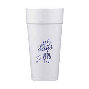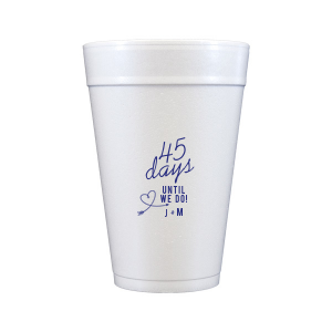 Zoom Show guides Loading product Days Until We Do Initials Cup 12-oz. Styrofoam Cup Design ID: 806704 Click on swatch to see options Choose Your Screen Print Active Color Matte Cup Ink Matte Cup Ink Matte Black Ink Matte Slate Gray Ink Matte Moss Green Ink Matte Leaf Ink Matte Spruce Matte Sky Blue Ink Matte Royal Blue Ink Matte Navy Ink Matte Cobalt Ink Matte Ballet Pink Ink Matte Fuchsia Ink Matte Lipstick Red Ink Matte Merlot Ink Metallic Cup Ink Metallic Cup Ink Silver Ink Gold Ink Copper Ink Personalize Your Text Line 1 Line 2 Line 3 Personalize further with different fonts, graphics, positioning, and sizes. (Optional) Customize More Choose Your Quantity Subtotal PRICE INCLUDES: Select a Proof Option: Print As Is I confirm that I have reviewed my design and I understand it will be produced as shown and no proof will be provided. Digital Proof + $15 I would like an expert FYP designer to look at my design, make minor corrections if necessary, and send me a black and white proof before the order is produced. Orders delivered as soon as 12.12.2025. Exclusions apply. Share Your Design About This Design ForYourParty's personalized Matte Cobalt Ink 12 oz Styrofoam Cup with Matte Cobalt Ink Cup Ink Colors has a Arrow Heart graphic and is good for use in Hearts, and Wedding themed parties and can't be beat. Showcase your style in every detail of your party's theme! Product Details Product Details Minimum order of 50 Measures 4.5" tall and 3.5" wide at the top Ideal for coffee and tea Recyclable Bulk discounts available Expedited shipping options available. Product Description Product Description Want the customization of our custom cups, but easier clean-up? Our styrofoam cups are the answer. Custom printed cups are great for your bachelorette party, or any time where you’re on the go and can’t stop to clean! Like their frost flex siblings, these are a compact 12 oz. package that can be customized with your art. Recyclable styrofoam is great for convenience and versatility—these cups can serve up hot or cold drinks, and no washing needed. Try them for coffee or mixed drinks at your next party! Product Options 12-oz. Styrofoam Cup 16-oz. Styrofoam Cup 20-oz. Styrofoam Cup 24-oz. Styrofoam Cup 32-oz. Styrofoam Cup Related Products 12-oz. Styrofoam Cup 16-oz. Styrofoam Cup 20-oz. Styrofoam Cup 24-oz. Styrofoam Cup 32-oz. Styrofoam Cup