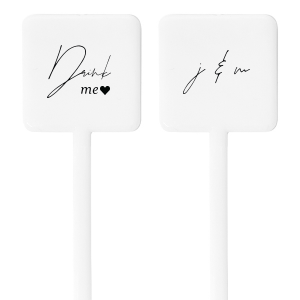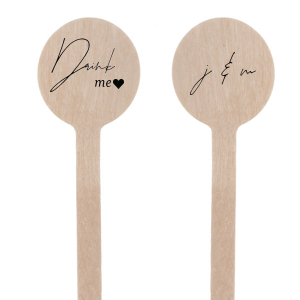 Zoom Show guides Loading product Drink Me Stir Stick Round Plastic Stir Stick 2-sided Design ID: 2683030 Click on swatch to see options Choose Your Product Color Active Color Stir Sticks Stir Sticks Black White Choose Your Imprint Foil Color Active Color Shiny Foil Shiny Foil Metallic, lustrous finish. *Specialty patterned foil may vary on final print Shiny Champagne Shiny Sterling Silver Shiny 18 Kt Gold Shiny Kiwi / Lime Shiny Leaf Shiny Spruce Shiny Jade Shiny Royal Blue Shiny Amethyst Shiny Fuchsia Shiny Rose Quartz Shiny Rose Gold NEW Shiny Merlot Shiny Convertible Red Shiny Poppy Shiny Copper *Shiny Holographic Gold *Shiny Holographic Silver *Shiny Rainbow Matte Foil Matte Foil Flat finish. Matte NEW Chocolate Matte Black Matte Slate Gray Matte Dove Grey Matte White Matte Ivory Matte Mimosa Yellow Matte Sunflower Matte Key Lime Matte Leaf Matte Teal/Peacock Matte Azure Matte Royal Blue Matte Navy Matte Amethyst Matte Pastel Pink Matte Ballet Pink Matte Fuchsia Matte Lipstick Red Matte Merlot Matte Tangerine Satin Foil Satin Foil Muted sheen, brushed finish. Satin Sterling Silver Satin 18 Kt. Gold Satin Copper Penny Satin Fuchsia Satin Lipstick Red Satin Leaf Satin Teal / Peacock Satin French Blue Satin Plum Personalize Your Text Line 1 Personalize further with different fonts, graphics, positioning, and sizes. (Optional) Customize More Choose Your Quantity Subtotal PRICE INCLUDES: Select a Proof Option: Print As Is I confirm that I have reviewed my design and I understand it will be produced as shown and no proof will be provided. Digital Proof + $15 I would like an expert FYP designer to look at my design, make minor corrections if necessary, and send me a black and white proof before the order is produced. Orders delivered as soon as 05.05.2026. Exclusions apply. Share Your Design About This Design The Drink Me Stir Stick features a charming "Drink Me" message and a sweet heart symbol on one side, and two initials entwined in an elegant, cursive script on the other. This delightful stir stick adds a storybook charm to any beverage, inviting guests to sip and celebrate the magic of the moment. Pairs well with intimate gatherings and romantic wedding receptions. Product Details Product Details Minimum order of 100 Made from plastic Measures 6.875" tall with a 1.25" wide head Expedited shipping options available. Product Description Product Description We offer three shapes of Stir Sticks in two different materials that can each be personalized on one or both sides. Personalization is available on the “head” of the Stir Stick. Size varies by shape. Personalize your Stir Sticks with text and illustrations from our extensive, designer-curated collection. With over 100 paper colors, 150 fonts, 50 foil colors and 1,300 clipart images, you can create the perfect party accessories for your event. You also have the option to Upload Your Own Art for a truly unique product. Please note that because of their size, only certain designs will fit on your Stir Sticks. Product Options Round Plastic Stir Stick 2-sided Round Plastic Stir Stick Rectangle Stir Stick 2-sided Oval Stir Stick Square Plastic Stir Stick Related Products Round Plastic Stir Stick 2-sided Round Plastic Stir Stick Rectangle Stir Stick 2-sided Oval Stir Stick Square Plastic Stir Stick