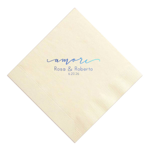 Zoom Show guides Loading product Elegant Amore Napkin Diamond Cocktail Napkin Design ID: 3240 Click on swatch to see options Choose Your Napkin Color Active Color 3 ply 3 ply Top quality 3 ply. Dyed tissue. Sand Black Slate Platinum Platinum Pin Dot Dove Gray Dove Gray Borderless White White Borderless White Pin Dot White Scallop Ivory Ivory Borderless Mimosa Lemon Pin Dot Kiwi Kiwi Pin Dot Leaf Pin Dot Spruce Pin Dot Olive Pin Dot Light Navy Dark Turquoise Pin Dot Turquoise Powder Blue Pin Dot Lavender Lavender Pin Dot Purple Merlot Pin Dot Candy Pink Antique Pink Pin Dot Ballet Pink Ballet Pink Borderless Convertible Red Light Coral Merlot Out Until: 2025-12-22 Fuchsia Out Until: 2026-01-05 Linen Like* - Premium Product Linen Like* - Premium Product Absorbent. Dyed tissue. Airlaid. Premium pricing applies. Pebble Kraft Ash Grey Black Charcoal Stone Gray Metallic Silver Fog White Cream Buttercream Lemon Moss Green Hunter Green Pastel Green Lime Eucalyptus Dark Turquoise Bright Sky Powder Blue Navy Lavender Magenta Pastel Pink Pink Terracotta Peach Mango Metallic Copper Out Until: 2026-01-08 Brown Out Until: 2025-12-26 Ivory Out Until: 2026-01-02 Metallic Gold Out Until: 2025-12-24 Olive Green Out Until: 2025-12-24 Berry Out Until: 2025-12-28 Merlot Out Until: 2025-12-25 Lipstick Red Out Until: 2025-12-19 Crosshatch* - Premium Product Crosshatch* - Premium Product Absorbent. Printed tissue. Airlaid. Premium pricing applies. Crosshatch Black Crosshatch Gray Crosshatch Green Crosshatch Turquoise Crosshatch Violet Crosshatch Lipstick Red Crosshatch Stone Out Until: 2025-12-15 Crosshatch Key Lime Out Until: 2026-01-01 Crosshatch Navy Out Until: 2026-01-01 Crosshatch Fuchsia Out Until: 2025-12-27 Woven* - Premium Product Woven* - Premium Product Basketweave texture. Single-sided color. Premium pricing applies. Woven Sand Woven Copper Woven Black Woven Slate Woven Silver Woven Stone Woven Vanilla Woven White Woven Gold Woven Sage Woven Spruce Woven Powder Blue Woven Navy Woven Mauve Woven Convertible Red Woven Tumeric Patterned* - Premium Product Patterned* - Premium Product Exclusive FYP patterns. Single-sided color. Pindot embossed edge. Product pricing applies. Oak Wood Walnut Wood Ebony Wood Ash Wood Birch Wood Marble Sand Marble Gray Marble Navy Marble Taupe Marble Blush Ombre Black Ombre Navy Ombre Robin’s Egg Blue Ombre Rose petal Ombre Coral Watercolor Sea Glass Watercolor Ocean Watercolor Nightfall Watercolor Sangria Watercolor Hibiscus Watercolor Rose Watercolor Sunrise Leaf Sand Leaf Fern Leaf Rain Leaf Rose Tie Dye Sunflower Tie Dye Leaf Tie Dye Turquoise Tie Dye Fuchsia Shimmer* - Premium Product Shimmer* - Premium Product Elegant European Stardream with iridescent finish. Single-sided color. Pindot embossed edge. Premium pricing applies. Champagne Soft Black Galvanized Silver Crystal White Ivory Pearl Gold Sage Navy Amethyst Herringbone* - Premium Product Herringbone* - Premium Product Absorbent. Printed Herringbone pattern. Airlaid. Premium pricing applies. Herringbone Vanilla Mocha Herringbone Gray Onyx Choose Your Imprint Foil Color Active Color Shiny Foil Shiny Foil Metallic, lustrous finish. *Specialty patterned foil may vary on final print Shiny Champagne Shiny Sterling Silver Shiny 18 Kt Gold Shiny Kiwi / Lime Shiny Leaf Shiny Jade Shiny Royal Blue Shiny Amethyst Shiny Fuchsia Shiny Rose Quartz Shiny Rose Gold NEW Shiny Merlot Shiny Convertible Red Shiny Poppy Shiny Copper *Shiny Holographic Gold *Shiny Holographic Silver *Shiny Rainbow Matte Foil Matte Foil Flat finish. Matte NEW Chocolate Matte Black Matte Slate Gray Matte Dove Grey Matte White Matte Ivory Matte Mimosa Yellow Matte Sunflower Matte Key Lime Matte Leaf Matte Spruce Matte Teal/Peacock Matte Azure Matte Royal Blue Matte Navy Matte Amethyst Matte Pastel Pink Matte Ballet Pink Matte Fuchsia Matte Lipstick Red Matte Merlot Matte Tangerine Satin Foil Satin Foil Muted sheen, brushed finish. Satin Sterling Silver Satin 18 Kt. Gold Satin Copper Penny Satin Fuchsia Satin Lipstick Red Satin Leaf Satin Teal / Peacock Satin French Blue Satin Plum Personalize Your Text Line 2 Line 3 Personalize further with different fonts, graphics, positioning, and sizes. (Optional) Customize More Choose Your Quantity Subtotal PRICE INCLUDES: Select a Proof Option: Print As Is I confirm that I have reviewed my design and I understand it will be produced as shown and no proof will be provided. Digital Proof + $15 I would like an expert FYP designer to look at my design, make minor corrections if necessary, and send me a black and white proof before the order is produced. Orders delivered as soon as 12.19.2025. Exclusions apply. Share Your Design About This Design Embrace la dolce vita with the Elegant Amore Napkin showcasing 'amore' in a sweep of elegant script. Above the couple's names and date, this heartfelt Italian term for love adds a touch of global charm to your nuptials. Product Details Product Details Classic 3-ply tissue, 4.75” or 5” square Colors vary Signature foil stamp included Bulk discounts available Expedited shipping options available. Product Description Product Description Classic Cocktail Napkins are the perfect companion for any event. Add a touch of refinement to your cocktail parties, weddings, or birthday celebrations. Whether you're sipping a Martini, Old Fashioned, or a signature cocktail, these beverage napkins are the perfect accompaniment to elevate your drink service to new heights.Traditionally designed with a classic pleated edge, highly absorbent, durable, crafted from high-quality, premium-grade paper, our Classic Cocktail Napkins are an excellent, timeless choice. They are soft to the touch, keeping your guests' hands dry and your furniture protected. Once used, simply discard them, making cleanup a breeze. Explore our Cocktail Napkins Collection to find the perfect option for your event. Due to the complexities of manufacturing, the size of the embossed border on our 3-ply napkins may vary sli