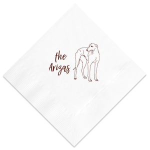 Zoom Show guides Loading product Family Name Greyhound Napkin Diamond Linen Like Cocktail Napkin Design ID: 1963070 Click on swatch to see options Choose Your Napkin Color Active Color Linen Like* - Premium Product Linen Like* - Premium Product Absorbent. Dyed tissue. Airlaid. Premium pricing applies. Pebble Kraft Ash Grey Brown Black Stone Gray Fog White Cream Ivory Moss Green Olive Green Hunter Green Pastel Green Lime Eucalyptus Dark Turquoise Out Until: 2026-05-01 Bright Sky Powder Blue Navy Lavender Magenta Pastel Pink Pink Lipstick Red Terracotta Peach Mango Metallic Silver Metallic Gold Metallic Copper Charcoal Out Until: 2026-05-23 Buttercream Out Until: 2026-05-24 Lemon Out Until: 2026-05-19 Berry Out Until: 2026-05-15 Merlot Crosshatch* - Premium Product Crosshatch* - Premium Product Absorbent. Printed tissue. Airlaid. Premium pricing applies. Crosshatch Black Crosshatch Gray Crosshatch Stone Crosshatch Key Lime Crosshatch Green Crosshatch Turquoise Crosshatch Navy Crosshatch Violet Crosshatch Fuchsia Crosshatch Lipstick Red Herringbone* - Premium Product Herringbone* - Premium Product Absorbent. Printed Herringbone pattern. Airlaid. Premium pricing applies. Herringbone Gray Onyx Herringbone Vanilla Mocha Out Until: 2026-04-21 Choose Your Imprint Foil Color Active Color Shiny Foil Shiny Foil Metallic, lustrous finish. *Specialty patterned foil may vary on final print Shiny Champagne Shiny Sterling Silver Shiny 18 Kt Gold Shiny Kiwi / Lime Shiny Leaf Shiny Spruce Shiny Jade Shiny Royal Blue Shiny Amethyst Shiny Fuchsia Shiny Rose Quartz Shiny Rose Gold NEW Shiny Merlot Shiny Convertible Red Shiny Poppy Shiny Copper *Shiny Holographic Gold *Shiny Holographic Silver *Shiny Rainbow Matte Foil Matte Foil Flat finish. Matte NEW Chocolate Matte Black Matte Slate Gray Matte Dove Grey Matte White Matte Ivory Matte Mimosa Yellow Matte Sunflower Matte Key Lime Matte Leaf Matte Teal/Peacock Matte Azure Matte Royal Blue Matte Navy Matte Amethyst Matte Pastel Pink Matte Ballet Pink Matte Fuchsia Matte Lipstick Red Matte Merlot Matte Tangerine Satin Foil Satin Foil Muted sheen, brushed finish. Satin Sterling Silver Satin 18 Kt. Gold Satin Copper Penny Satin Fuchsia Satin Lipstick Red Satin Leaf Satin Teal / Peacock Satin French Blue Satin Plum Personalize Your Text Line 1 Line 2 Personalize further with different fonts, graphics, positioning, and sizes. (Optional) Customize More Choose Your Quantity Subtotal PRICE INCLUDES: Select a Proof Option: Print As Is I confirm that I have reviewed my design and I understand it will be produced as shown and no proof will be provided. Digital Proof + $15 I would like an expert FYP designer to look at my design, make minor corrections if necessary, and send me a black and white proof before the order is produced. Orders delivered as soon as 05.08.2026. Exclusions apply. Share Your Design About This Design Customize a party favor with your pet on it! This napkin features a greyhound graphic and will be a pawfect addition to your wedding, dinner party, or birthday. Product Details Product Details Deluxe air laid paper Measures approximately 5" x 5" Signature foil stamp included Bulk discounts available Expedited shipping options available. Product Description Product Description Introducing our custom Linen-Like Cocktail Napkins, the epitome of elegance and refinement for your sophisticated gatherings. Whether you're hosting a formal wedding reception or a chic cocktail soirée, these linen cocktail napkins effortlessly complement any table setting. Their soft and gentle touch will leave a lasting impression on guests, showcasing your commitment to providing a truly upscale experience. Meticulously crafted, these napkins exude the luxurious look and feel of fine linen while offering the convenience of being disposable. Crafted from premium-quality materials, they are highly absorbent and the same dimensions as our classic cocktail napkins. With the perfect blend of functionality and elegance, you can elevate any upscale bar or lounge. Product Options Diamond Linen Like Cocktail Napkin Diamond Cocktail Napkin Diamond Luncheon Napkin Diamond Linen Like Luncheon Napkin Patterned Diamond Cocktail Napkin Woven Diamond Cocktail Napkin Paper Guest Towel Diamond Dinner Napkin Paper Guest Towel Shimmer Guest Hand Towel Diamond Petite Napkin Diamond Cocktail Napkin 4ply Folded Linen Like Dinner Napkin Related Products Diamond Linen Like Cocktail Napkin Diamond Cocktail Napkin Diamond Luncheon Napkin Diamond Linen Like Luncheon Napkin Patterned Diamond Cocktail Napkin Woven Diamond Cocktail Napkin Paper Guest Towel Diamond Dinner Napkin Paper Guest Towel Shimmer Guest Hand Towel Diamond Petite Napkin Diamond Cocktail Napkin 4ply Folded Linen Like Dinner Napkin