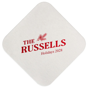 Zoom Show guides Loading product Fir Family Name Coaster Square 4" Coaster Design ID: 3631813 Click on swatch to see options Choose Your Product Color Active Color Coaster Colors Coaster Colors Black White Eggshell Choose Your Imprint Foil Color Active Color Shiny Foil Shiny Foil Metallic, lustrous finish. *Specialty patterned foil may vary on final print Shiny Champagne Shiny Sterling Silver Shiny 18 Kt Gold Shiny Kiwi / Lime Shiny Leaf Shiny Spruce Shiny Jade Shiny Royal Blue Shiny Amethyst Shiny Fuchsia Shiny Rose Quartz Shiny Rose Gold NEW Shiny Merlot Shiny Convertible Red Shiny Poppy Shiny Copper *Shiny Holographic Gold *Shiny Holographic Silver *Shiny Rainbow Matte Foil Matte Foil Flat finish. Matte NEW Chocolate Matte Black Matte Slate Gray Matte Dove Grey Matte White Matte Ivory Matte Mimosa Yellow Matte Sunflower Matte Key Lime Matte Leaf Matte Teal/Peacock Matte Azure Matte Royal Blue Matte Navy Matte Amethyst Matte Pastel Pink Matte Ballet Pink Matte Fuchsia Matte Lipstick Red Matte Merlot Matte Tangerine Satin Foil Satin Foil Muted sheen, brushed finish. Satin Sterling Silver Satin 18 Kt. Gold Satin Copper Penny Satin Fuchsia Satin Lipstick Red Satin Leaf Satin Teal / Peacock Satin French Blue Satin Plum Personalize Your Text Line 1 Line 2 Line 3 Personalize further with different fonts, graphics, positioning, and sizes. (Optional) Customize More Choose Your Quantity Subtotal PRICE INCLUDES: Select a Proof Option: Print As Is I confirm that I have reviewed my design and I understand it will be produced as shown and no proof will be provided. Digital Proof + $15 I would like an expert FYP designer to look at my design, make minor corrections if necessary, and send me a black and white proof before the order is produced. Orders delivered as soon as 04.24.2026. Exclusions apply. Share Your Design About This Design Spruce up your holiday this year with the Fir Family Name Coaster. The stylish yet functional coaster is easily customized with your choice of text, adding a personalized touch to your next holiday event. Product Details Product Details Minimum order of 50 Measures 4" square Made from reusable uncoated pulp board Bulk discounts available Expedited shipping options available. Product Description Product Description Custom Square Coasters are the perfect choice to elevate your event's ambiance while protecting your surfaces in style. These customizable coasters are a versatile addition to weddings, anniversary parties, cocktail soirées, and more. They not only shield your furniture but also serve as chic décor pieces that impress your guests. Crafted from pulp board, our Square Coasters exude premium quality, featuring a smooth texture that adds a touch of elegance to any setting and are made for multiple uses. Their square shape provides ample space for glasses and mugs of all sizes, ensuring convenience during your event. Personalize these coasters with your unique design or event details, making them a memorable keepsake for your guests. Explore our other barware. Product Options Square 4" Coaster Diamond 4" Coaster Round 4" Coaster Ornament Fancy Hexagon Coaster Modern Related Products Square 4" Coaster Diamond 4" Coaster Round 4" Coaster Ornament Fancy Hexagon Coaster Modern Material Pulp Board