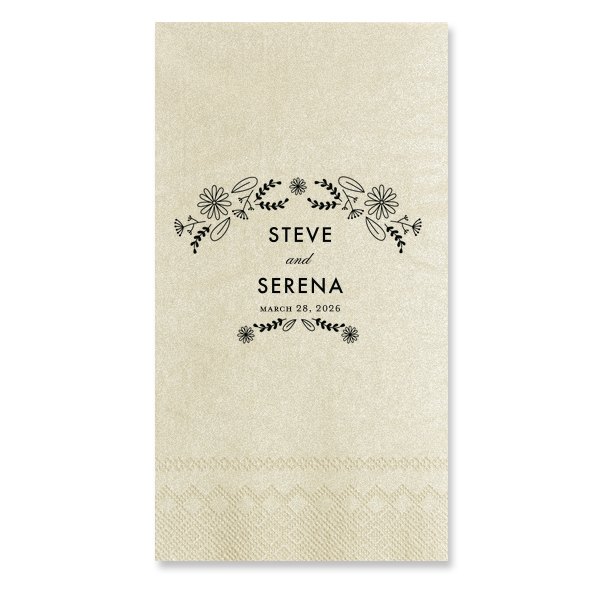 Zoom Show guides Loading product Floral Flourish Wedding Napkin Diamond Cocktail Napkin Design ID: 8931 Click on swatch to see options Choose Your Napkin Color Active Color 3 ply 3 ply Top quality 3 ply. Dyed tissue. Sand Black Slate Platinum Platinum Pin Dot Dove Gray Dove Gray Borderless White White Borderless White Pin Dot White Scallop Ivory Ivory Borderless Mimosa Lemon Pin Dot Kiwi Kiwi Pin Dot Leaf Pin Dot Spruce Pin Dot Olive Pin Dot Light Navy Dark Turquoise Pin Dot Turquoise Powder Blue Pin Dot Lavender Lavender Pin Dot Purple Merlot Pin Dot Candy Pink Antique Pink Pin Dot Ballet Pink Ballet Pink Borderless Convertible Red Light Coral Merlot Out Until: 2025-12-22 Fuchsia Out Until: 2026-01-05 Linen Like* - Premium Product Linen Like* - Premium Product Absorbent. Dyed tissue. Airlaid. Premium pricing applies. Pebble Kraft Ash Grey Black Charcoal Stone Gray Metallic Silver Fog White Cream Buttercream Lemon Moss Green Hunter Green Pastel Green Lime Eucalyptus Dark Turquoise Bright Sky Powder Blue Navy Lavender Magenta Pastel Pink Pink Terracotta Peach Mango Metallic Copper Out Until: 2026-01-08 Brown Out Until: 2025-12-26 Ivory Out Until: 2026-01-02 Metallic Gold Out Until: 2025-12-24 Olive Green Out Until: 2025-12-24 Berry Out Until: 2025-12-28 Merlot Out Until: 2025-12-25 Lipstick Red Out Until: 2025-12-19 Crosshatch* - Premium Product Crosshatch* - Premium Product Absorbent. Printed tissue. Airlaid. Premium pricing applies. Crosshatch Black Crosshatch Gray Crosshatch Green Crosshatch Turquoise Crosshatch Violet Crosshatch Lipstick Red Crosshatch Stone Out Until: 2026-01-15 Crosshatch Key Lime Out Until: 2026-01-01 Crosshatch Navy Out Until: 2026-01-01 Crosshatch Fuchsia Out Until: 2025-12-27 Woven* - Premium Product Woven* - Premium Product Basketweave texture. Single-sided color. Premium pricing applies. Woven Sand Woven Copper Woven Black Woven Slate Woven Silver Woven Stone Woven Vanilla Woven White Woven Gold Woven Sage Woven Spruce Woven Powder Blue Woven Navy Woven Mauve Woven Convertible Red Woven Tumeric Patterned* - Premium Product Patterned* - Premium Product Exclusive FYP patterns. Single-sided color. Pindot embossed edge. Product pricing applies. Oak Wood Walnut Wood Ebony Wood Ash Wood Birch Wood Marble Sand Marble Gray Marble Navy Marble Taupe Marble Blush Ombre Black Ombre Navy Ombre Robin’s Egg Blue Ombre Rose petal Ombre Coral Watercolor Sea Glass Watercolor Ocean Watercolor Nightfall Watercolor Sangria Watercolor Hibiscus Watercolor Rose Watercolor Sunrise Leaf Sand Leaf Fern Leaf Rain Leaf Rose Tie Dye Sunflower Tie Dye Leaf Tie Dye Turquoise Tie Dye Fuchsia Shimmer* - Premium Product Shimmer* - Premium Product Elegant European Stardream with iridescent finish. Single-sided color. Pindot embossed edge. Premium pricing applies. Champagne Soft Black Galvanized Silver Crystal White Ivory Pearl Gold Sage Navy Amethyst Herringbone* - Premium Product Herringbone* - Premium Product Absorbent. Printed Herringbone pattern. Airlaid. Premium pricing applies. Herringbone Vanilla Mocha Herringbone Gray Onyx Choose Your Imprint Foil Color Active Color Shiny Foil Shiny Foil Metallic, lustrous finish. *Specialty patterned foil may vary on final print Shiny Champagne Shiny Sterling Silver Shiny 18 Kt Gold Shiny Kiwi / Lime Shiny Leaf Shiny Jade Shiny Royal Blue Shiny Amethyst Shiny Fuchsia Shiny Rose Quartz Shiny Rose Gold NEW Shiny Merlot Shiny Convertible Red Shiny Poppy Shiny Copper *Shiny Holographic Gold *Shiny Holographic Silver *Shiny Rainbow Matte Foil Matte Foil Flat finish. Matte NEW Chocolate Matte Black Matte Slate Gray Matte Dove Grey Matte White Matte Ivory Matte Mimosa Yellow Matte Sunflower Matte Key Lime Matte Leaf Matte Spruce Matte Teal/Peacock Matte Azure Matte Royal Blue Matte Navy Matte Amethyst Matte Pastel Pink Matte Ballet Pink Matte Fuchsia Matte Lipstick Red Matte Merlot Matte Tangerine Satin Foil Satin Foil Muted sheen, brushed finish. Satin Sterling Silver Satin 18 Kt. Gold Satin Copper Penny Satin Fuchsia Satin Lipstick Red Satin Leaf Satin Teal / Peacock Satin French Blue Satin Plum Personalize Your Text Line 1 Line 2 Line 3 Personalize further with different fonts, graphics, positioning, and sizes. (Optional) Customize More Choose Your Quantity Subtotal PRICE INCLUDES: Select a Proof Option: Print As Is I confirm that I have reviewed my design and I understand it will be produced as shown and no proof will be provided. Digital Proof + $15 I would like an expert FYP designer to look at my design, make minor corrections if necessary, and send me a black and white proof before the order is produced. Orders delivered as soon as 12.22.2025. Exclusions apply. Share Your Design About This Design Frame your nuptials with the Floral Flourish Wedding Napkin, boasting hand-drawn, modern flourishes. The couple's names and date are nestled within this botanical art, lending organic elegance to the celebration's thoughtful details. Product Details Product Details Classic 3-ply tissue, 4.75” or 5” square Colors vary Signature foil stamp included Bulk discounts available Expedited shipping options available. Product Description Product Description Classic Cocktail Napkins are the perfect companion for any event. Add a touch of refinement to your cocktail parties, weddings, or birthday celebrations. Whether you're sipping a Martini, Old Fashioned, or a signature cocktail, these beverage napkins are the perfect accompaniment to elevate your drink service to new heights.Traditionally designed with a classic pleated edge, highly absorbent, durable, crafted from high-quality, premium-grade paper, our Classic Cocktail Napkins are an excellent, timeless choice. They are soft to the touch, keeping your guests' hands dry and your furniture protected. Once used, simply discard them, making cleanup a breeze. Explore our Cocktail Napkins Collection to find the perfect option for your event. Due to the complexities of manufacturing, the size of the embossed border on