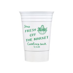 Zoom Show guides Loading product Fresh Off The Market Bachelorette Cup 16oz Stadium Cup Design ID: 3825905 Click on swatch to see options Choose Your Product Color Active Color Cup Colors Cup Colors Clear Gold Black Silver White Yellow Lime Green Teal Navy Royal Blue Powder Blue Purple Maroon Hot Pink Light Pink Red Orange Choose Your Screen Print Active Color Metallic Cup Ink Metallic Cup Ink Silver Ink Gold Ink Copper Ink Matte Cup Ink Matte Cup Ink Matte Chocolate Ink Matte Black Ink Matte Slate Gray Ink Matte White Ink Matte Sunflower Ink Matte Moss Green Ink Matte Sage Ink Matte Leaf Ink Matte Spruce Ink Matte Teal/Peacock Ink Matte Sky Blue Ink Matte French Blue Ink Matte Royal Blue Ink Matte Navy Ink Matte Cobalt Ink Matte Lavender Ink Matte Ballet Pink Ink Matte Fuchsia Ink Matte Lipstick Red Ink Matte Merlot Ink Matte Tangerine Ink Personalize Your Text Line 1 Line 2 Personalize further with different fonts, graphics, positioning, and sizes. (Optional) Customize More Choose Your Quantity Subtotal PRICE INCLUDES: Select a Proof Option: Print As Is I confirm that I have reviewed my design and I understand it will be produced as shown and no proof will be provided. Digital Proof + $15 I would like an expert FYP designer to look at my design, make minor corrections if necessary, and send me a black and white proof before the order is produced. Orders delivered as soon as 05.21.2026. Exclusions apply. Share Your Design About This Design The pickings are ripe so get them while you can! The Fresh Off The Market Bachelorette Cup is a fun a vibrant addition to any bachelorette party, fully customizable with your choice of color and cup style. What could be sweeter? Product Details Product Details Minimum order of 50 Measures 4.375" tall and 3.6" wide at the top Thin manufacturer mark may appear 0.75" to 1" from the bottom of the cup Ideal for beer BPA-free and recyclable Shatterproof and top-rack dishwasher safe Bulk discounts available Expedited shipping options available. Product Description Product Description Want a cup that’s reminiscent of fun parties, fall sports, and great times? Our stadium cups are made of sturdy colorful plastic and are perfect for birthdays, home entertaining, or casual get-togethers. Like our 22 oz. stadium cups, our 16 oz. stadium cups are made of reusable, dishwasher-safe plastic, and are available in colors to match any home or team. Use them for beer or soft drinks at your next tailgate! Product Options 16oz Stadium Cup 12oz Frost Flex 16oz Foam Cup 12oz Hard Plastic Cup 16oz Plastic Party Cup Related Products 16oz Stadium Cup 12oz Frost Flex 16oz Foam Cup 12oz Hard Plastic Cup 16oz Plastic Party Cup