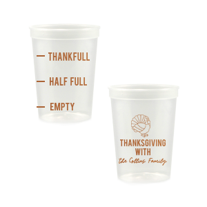 Zoom Show guides Loading product Funny Thankful Family Name Cup 16oz Stadium Cup Design ID: 3631758 Click on swatch to see options Choose Your Product Color Active Color Cup Colors Cup Colors Clear Gold Black Silver White Yellow Lime Green Teal Navy Royal Blue Powder Blue Purple Maroon Hot Pink Light Pink Red Orange Choose Your Screen Print Active Color Metallic Cup Ink Metallic Cup Ink Silver Ink Gold Ink Copper Ink Matte Cup Ink Matte Cup Ink Matte Chocolate Ink Matte Black Ink Matte Slate Gray Ink Matte White Ink Matte Sunflower Ink Matte Moss Green Ink Matte Sage Ink Matte Leaf Ink Matte Spruce Ink Matte Teal/Peacock Ink Matte Sky Blue Ink Matte French Blue Ink Matte Royal Blue Ink Matte Navy Ink Matte Cobalt Ink Matte Lavender Ink Matte Ballet Pink Ink Matte Fuchsia Ink Matte Lipstick Red Ink Matte Merlot Ink Matte Tangerine Ink Personalize Your Text Line 1 Line 2 Line 3 Personalize further with different fonts, graphics, positioning, and sizes. (Optional) Customize More Choose Your Quantity Subtotal PRICE INCLUDES: Select a Proof Option: Print As Is I confirm that I have reviewed my design and I understand it will be produced as shown and no proof will be provided. Digital Proof + $15 I would like an expert FYP designer to look at my design, make minor corrections if necessary, and send me a black and white proof before the order is produced. Orders delivered as soon as 05.05.2026. Exclusions apply. Share Your Design About This Design Delight friends and family this holiday season with the Funny Thankful Family Name Cup. The cheeky party cup is perfect for festive functions and home entertainment. Customize the design with personalized text, showcasing your family's name in your choice of one of our many colors! Product Details Product Details Minimum order of 50 Measures 4.375" tall and 3.6" wide at the top Thin manufacturer mark may appear 0.75" to 1" from the bottom of the cup Ideal for beer BPA-free and recyclable Shatterproof and top-rack dishwasher safe Bulk discounts available Expedited shipping options available. Product Description Product Description Want a cup that’s reminiscent of fun parties, fall sports, and great times? Our stadium cups are made of sturdy colorful plastic and are perfect for birthdays, home entertaining, or casual get-togethers. Like our 22 oz. stadium cups, our 16 oz. stadium cups are made of reusable, dishwasher-safe plastic, and are available in colors to match any home or team. Use them for beer or soft drinks at your next tailgate! Product Options 16oz Stadium Cup 12oz Stadium Cup 22oz Stadium Cup 32oz Stadium Cup 12oz Foam Cup 16oz Foam Cup 20oz Foam Cup 24oz Foam Cup 32oz Foam Cup 20oz Soft Plastic Cup 24oz Soft Plastic Cup 32oz Soft Plastic Cup 16oz Plastic Party Cup 12oz Frost Flex 16oz Frost Flex 20oz Frost Flex 24oz Frost Flex Related Products 16oz Stadium Cup 12oz Stadium Cup 22oz Stadium Cup 32oz Stadium Cup 12oz Foam Cup 16oz Foam Cup 20oz Foam Cup 24oz Foam Cup 32oz Foam Cup 20oz Soft Plastic Cup 24oz Soft Plastic Cup 32oz Soft Plastic Cup 16oz Plastic Party Cup 12oz Frost Flex 16oz Frost Flex 20oz Frost Flex 24oz Frost Flex