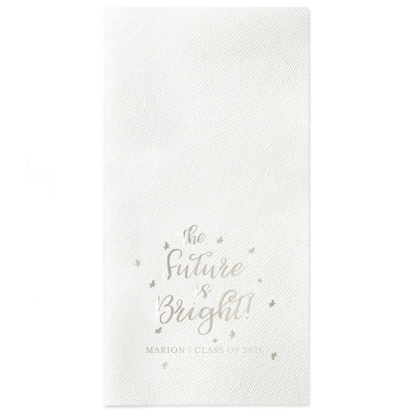 Zoom Show guides Loading product The Future Is Bright Napkin Cocktail Napkin Design ID: 1383461 Click on swatch to see options Choose Your Product Color Active Color 3 ply 3 ply Top quality 3 ply. Dyed tissue. Sand Black Slate Dove Gray Platinum Pin Dot Dove Gray Borderless White White Borderless White Pin Dot White Scallop Ivory Ivory Borderless Kiwi Kiwi Pin Dot Leaf Pin Dot Spruce Pin Dot Light Navy Olive Pin Dot Dark Navy Pin Dot Dark Turquoise Pin Dot Turquoise Powder Blue Pin Dot Lavender Pin Dot Merlot Pin Dot Antique Pink Pin Dot Ballet Pink Ballet Pink Borderless Convertible Red Light Coral Tangerine Pin Dot Platinum Out Until: 2026-04-18 Mimosa Out Until: 2026-05-17 Lemon Pin Dot Out Until: 2026-05-13 Lavender Out Until: 2026-04-17 Merlot Out Until: 2026-05-13 Fuchsia Out Until: 2026-04-21 Candy Pink Out Until: 2026-05-01 Linen Like* - Premium Product Linen Like* - Premium Product Absorbent. Dyed tissue. Airlaid. Premium pricing applies. Pebble Kraft Ash Grey Brown Black Charcoal Stone Gray Fog White Ivory Cream Buttercream Lemon Moss Green Olive Green Hunter Green Pastel Green Lime Eucalyptus Dark Turquoise Bright Sky Powder Blue Navy Lavender Magenta Pastel Pink Pink Lipstick Red Terracotta Peach Mango Metallic Silver Metallic Gold Metallic Copper Berry Out Until: 2026-05-15 Merlot Crosshatch* - Premium Product Crosshatch* - Premium Product Absorbent. Printed tissue. Airlaid. Premium pricing applies. Crosshatch Black Crosshatch Gray Crosshatch Stone Crosshatch Key Lime Crosshatch Green Crosshatch Navy Crosshatch Turquoise Out Until: 2026-05-10 Crosshatch Violet Out Until: 2026-05-14 Crosshatch Fuchsia Out Until: 2026-01-29 Crosshatch Lipstick Red Out Until: 2026-05-16 Woven* - Premium Product Woven* - Premium Product Basketweave texture. Single-sided color. Premium pricing applies. Woven Sand Woven Copper Woven Black Woven Slate Woven Silver Woven Stone Woven Vanilla Woven White Woven Gold Woven Sage Woven Spruce Woven Powder Blue Woven Navy Woven Mauve Woven Convertible Red Woven Tumeric Patterned* - Premium Product Patterned* - Premium Product Exclusive FYP patterns. Single-sided color. Pindot embossed edge. Product pricing applies. Oak Wood Walnut Wood Ebony Wood Ash Wood Birch Wood Marble Sand Marble Gray Marble Navy Marble Taupe Marble Blush Ombre Black Ombre Navy Ombre Robin’s Egg Blue Ombre Rose Petal Ombre Coral Watercolor Sea Glass Watercolor Ocean Watercolor Nightfall Watercolor Sangria Watercolor Hibiscus Watercolor Rose Watercolor Sunrise Leaf Sand Leaf Fern Leaf Rain Leaf Rose Tie Dye Sunflower Tie Dye Leaf Tie Dye Turquoise Tie Dye Fuchsia Shimmer* - Premium Product Shimmer* - Premium Product Elegant European Stardream with iridescent finish. Single-sided color. Pindot embossed edge. Premium pricing applies. Champagne Soft Black Galvanized Silver Crystal White Ivory Pearl Gold Sage Navy Amethyst Choose Your Imprint Foil Color Active Color Shiny Foil Shiny Foil Metallic, lustrous finish. *Specialty patterned foil may vary on final print Shiny Champagne Shiny Sterling Silver Shiny 18 Kt Gold Shiny Kiwi / Lime Shiny Leaf Shiny Spruce Shiny Jade Shiny Royal Blue Shiny Amethyst Shiny Fuchsia Shiny Rose Quartz Shiny Rose Gold NEW Shiny Merlot Shiny Convertible Red Shiny Poppy Shiny Copper *Shiny Holographic Gold *Shiny Holographic Silver *Shiny Rainbow Matte Foil Matte Foil Flat finish. Matte NEW Chocolate Matte Black Matte Slate Gray Matte Dove Grey Matte White Matte Ivory Matte Mimosa Yellow Matte Sunflower Matte Key Lime Matte Leaf Matte Teal/Peacock Matte Azure Matte Royal Blue Matte Navy Matte Amethyst Matte Pastel Pink Matte Ballet Pink Matte Fuchsia Matte Lipstick Red Matte Merlot Matte Tangerine Satin Foil Satin Foil Muted sheen, brushed finish. Satin Sterling Silver Satin 18 Kt. Gold Satin Copper Penny Satin Fuchsia Satin Lipstick Red Satin Leaf Satin Teal / Peacock Satin French Blue Satin Plum Personalize Your Text Line 1 Personalize further with different fonts, graphics, positioning, and sizes. (Optional) Customize More Choose Your Quantity Subtotal PRICE INCLUDES: Select a Proof Option: Print As Is I confirm that I have reviewed my design and I understand it will be produced as shown and no proof will be provided. Digital Proof + $15 I would like an expert FYP designer to look at my design, make minor corrections if necessary, and send me a black and white proof before the order is produced. Orders delivered as soon as 05.01.2026. Exclusions apply. Share Your Design About This Design Personalized Navy Large Print Cocktail Napkin with Shiny Sterling Silver Foil can be personalized to match your party's exact theme and tempo. Product Details Product Details Classic 3-ply tissue 4.75” or 5” Square, Colors Vary Signature Foil Stamp Included Volume discounts Expedited options available Product Description Product Description Our Large Print Cocktail Napkins are designed to capture attention. The large print design effortlessly becomes the focal point of your table setting, making these napkins a conversation starter. Embrace the vibrant charm of these napkins and infuse your gatherings with style that won't go unnoticed.While these napkins offer a bold visual impact, they are also designed for convenience. They are disposable, allowing for easy cleanup once the party is over. Printed on our Classic Cocktail Napkins, this product is made from premium-quality materials that offers a soft feel ensuring a comfortable touch for your guests.Due to the complexities of manufacturing, the size of the embossed border on our 3-ply napkins may vary slightly. These discrepancies are a natural part of the manufacturing process and do not impact the overall quality or functionality of the napkins. Product Options Cocktail Napkin Square Linen Like Luncheon Napkin Paper Guest Towel Related Products Cocktail Napkin Square Linen Like Luncheon Napkin Paper Guest Towel