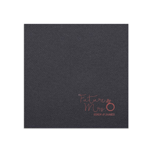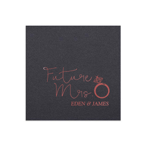 Zoom Show guides Loading product Future Mrs. Engagement Napkin Square Luncheon Napkin Design ID: 258461 Click on swatch to see options Choose Your Product Color Active Color 3 ply 3 ply Top quality 3 ply. Dyed tissue. Sand Bronze Black Slate Platinum Platinum Pin Dot Dove Gray Dove Gray Borderless White White Borderless Ivory Ivory Borderless Mimosa Lemon Pin Dot Sunflower Kiwi Pin Dot Leaf Spruce Pin Dot Olive Pin Dot Light Navy Dark Turquoise Pin Dot Teal Turquoise Sky Blue Powder Blue Pin Dot Lavender Lavender Pin Dot Violet Merlot Ballet Pink Antique Pink Pin Dot Convertible Red Coral Light Coral Tangerine Kiwi Out Until: 2025-10-30 Spruce Out Until: 2025-11-10 Aqua Out Until: 2025-11-22 Merlot Pin Dot Out Until: 2025-11-06 Fuchsia Out Until: 2025-11-24 Linen Like* - Premium Product Linen Like* - Premium Product Absorbent. Dyed tissue. Airlaid. Premium pricing applies. Kraft Black Fog White Olive Green Shimmer* - Premium Product Shimmer* - Premium Product Elegant European Stardream with iridescent finish. Single-sided color. Pindot embossed edge. Premium pricing applies. Crystal White Ivory Pearl Gold Choose Your Imprint Foil Color Active Color Shiny Foil Shiny Foil Metallic, lustrous finish. *Specialty patterned foil may vary on final print Shiny Champagne Shiny Sterling Silver Shiny 18 Kt Gold Shiny Kiwi / Lime Shiny Leaf Shiny Jade Shiny Royal Blue Shiny Amethyst Shiny Fuchsia Shiny Rose Quartz Shiny Rose Gold NEW Shiny Merlot Shiny Convertible Red Shiny Poppy Shiny Copper *Shiny Holographic Gold *Shiny Holographic Silver *Shiny Rainbow Matte Foil Matte Foil Flat finish. Matte NEW Chocolate Matte Black Matte Slate Gray Matte Dove Grey Matte White Matte Ivory Matte Mimosa Yellow Matte Sunflower Matte Key Lime Matte Leaf Matte Spruce Matte Teal/Peacock Matte Azure Matte Royal Blue Matte Navy Matte Amethyst Matte Pastel Pink Matte Ballet Pink Matte Fuchsia Matte Lipstick Red Matte Merlot Matte Tangerine Satin Foil Satin Foil Muted sheen, brushed finish. Satin Sterling Silver Satin 18 Kt. Gold Satin Copper Penny Satin Fuchsia Satin Lipstick Red Satin Leaf Satin Teal / Peacock Satin French Blue Satin Plum Personalize Your Text Line 1 Personalize further with different fonts, graphics, positioning, and sizes. (Optional) Customize More Choose Your Quantity Subtotal PRICE INCLUDES: Select a Proof Option: Print As Is I confirm that I have reviewed my design and I understand it will be produced as shown and no proof will be provided. Digital Proof + $15 I would like an expert FYP designer to look at my design, make minor corrections if necessary, and send me a black and white proof before the order is produced. Orders delivered as soon as 11.04.2025. Exclusions apply. Share Your Design About This Design Toast to the happily-ever-after with Future Mrs. Engagement Napkin! The whimsical script and dazzling engagement ring exude excitement, capturing the bride-to-be’s new title. Personalized with the couple's names, these napkins turn any engagement party into a sparkling celebration of love and commitment. Product Details Product Details Classic 3-ply tissue Measures approximately 6.5" x 6.5" Signature foil stamp included Bulk discounts available Expedited shipping options available. Product Description Product Description The Luncheon Napkin provides ample coverage, making them suitable for a variety of dining settings. They are ideal for luncheons, showers, or any event where a larger napkin is preferred. These napkins provide a versatile and convenient option for showcasing your custom design or logo, making every occasion truly unique.Crafted with attention to detail, our Classic Luncheon Napkins are made from premium paper that offers both softness and durability. The napkins provide a comfortable experience for your guests while ensuring they can efficiently handle spills or messes during meals. Elevate your dining experience with these custom luncheon napkins.Due to the complexities of manufacturing, the size of the embossed border on our 3-ply napkins may vary slightly. These discrepancies are a natural part of the manufacturing process and do not impact the overall quality or functionality of the napkins. Product Options Square Luncheon Napkin Square Linen Like Cocktail Napkin Paper Guest Towel Square Linen Like Dinner Napkin Square Petite Napkin Related Products Square Luncheon Napkin Square Linen Like Cocktail Napkin Paper Guest Towel Square Linen Like Dinner Napkin Square Petite Napkin