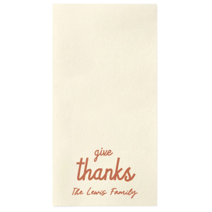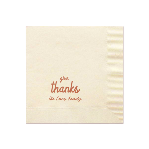 Zoom Show guides Loading product Give Thanks Family Napkin Square Cocktail Napkin Design ID: 3629089 Click on swatch to see options Choose Your Product Color Active Color 3 ply 3 ply Top quality 3 ply. Dyed tissue. Sand Black Slate Platinum Pin Dot Dove Gray Dove Gray Borderless White White Borderless White Pin Dot White Scallop Ivory Ivory Borderless Kiwi Kiwi Pin Dot Leaf Pin Dot Spruce Pin Dot Olive Pin Dot Dark Navy Pin Dot Light Navy Dark Turquoise Pin Dot Turquoise Powder Blue Pin Dot Lavender Pin Dot Merlot Pin Dot Antique Pink Pin Dot Ballet Pink Ballet Pink Borderless Convertible Red Light Coral Tangerine Pin Dot Platinum Out Until: 2026-04-18 Mimosa Out Until: 2026-05-17 Lemon Pin Dot Out Until: 2026-05-13 Lavender Out Until: 2026-04-17 Merlot Out Until: 2026-05-13 Fuchsia Out Until: 2026-04-21 Candy Pink Out Until: 2026-05-01 Linen Like* - Premium Product Linen Like* - Premium Product Absorbent. Dyed tissue. Airlaid. Premium pricing applies. Pebble Kraft Metallic Copper Ash Grey Brown Black Charcoal Stone Gray Metallic Silver Fog White Ivory Cream Buttercream Metallic Gold Lemon Moss Green Olive Green Hunter Green Pastel Green Lime Eucalyptus Dark Turquoise Bright Sky Powder Blue Navy Lavender Magenta Pink Pastel Pink Lipstick Red Terracotta Peach Mango Berry Out Until: 2026-05-15 Merlot Crosshatch* - Premium Product Crosshatch* - Premium Product Absorbent. Printed tissue. Airlaid. Premium pricing applies. Crosshatch Black Crosshatch Gray Crosshatch Stone Crosshatch Key Lime Crosshatch Green Crosshatch Navy Crosshatch Turquoise Out Until: 2026-05-10 Crosshatch Violet Out Until: 2026-05-14 Crosshatch Fuchsia Out Until: 2026-01-29 Crosshatch Lipstick Red Out Until: 2026-05-16 Woven* - Premium Product Woven* - Premium Product Basketweave texture. Single-sided color. Premium pricing applies. Woven Sand Woven Copper Woven Black Woven Slate Woven Silver Woven Stone Woven Vanilla Woven White Woven Gold Woven Sage Woven Spruce Woven Powder Blue Woven Navy Woven Mauve Woven Convertible Red Woven Tumeric Patterned* - Premium Product Patterned* - Premium Product Exclusive FYP patterns. Single-sided color. Pindot embossed edge. Product pricing applies. Oak Wood Walnut Wood Ebony Wood Ash Wood Birch Wood Marble Sand Marble Gray Marble Navy Marble Taupe Marble Blush Ombre Black Ombre Navy Ombre Robin’s Egg Blue Ombre Rose Petal Ombre Coral Watercolor Sea Glass Watercolor Ocean Watercolor Nightfall Watercolor Sangria Watercolor Hibiscus Watercolor Rose Watercolor Sunrise Leaf Sand Leaf Fern Leaf Rain Leaf Rose Tie Dye Sunflower Tie Dye Leaf Tie Dye Turquoise Tie Dye Fuchsia Shimmer* - Premium Product Shimmer* - Premium Product Elegant European Stardream with iridescent finish. Single-sided color. Pindot embossed edge. Premium pricing applies. Champagne Soft Black Galvanized Silver Crystal White Ivory Pearl Gold Sage Navy Amethyst Herringbone* - Premium Product Herringbone* - Premium Product Absorbent. Printed Herringbone pattern. Airlaid. Premium pricing applies. Herringbone Gray Onyx Herringbone Vanilla Mocha Out Until: 2026-04-21 Choose Your Imprint Foil Color Active Color Shiny Foil Shiny Foil Metallic, lustrous finish. *Specialty patterned foil may vary on final print Shiny Champagne Shiny Sterling Silver Shiny 18 Kt Gold Shiny Kiwi / Lime Shiny Leaf Shiny Spruce Shiny Jade Shiny Royal Blue Shiny Amethyst Shiny Fuchsia Shiny Rose Quartz Shiny Rose Gold NEW Shiny Merlot Shiny Convertible Red Shiny Poppy Shiny Copper *Shiny Holographic Gold *Shiny Holographic Silver *Shiny Rainbow Matte Foil Matte Foil Flat finish. Matte NEW Chocolate Matte Black Matte Slate Gray Matte Dove Grey Matte White Matte Ivory Matte Mimosa Yellow Matte Sunflower Matte Key Lime Matte Leaf Matte Teal/Peacock Matte Azure Matte Royal Blue Matte Navy Matte Amethyst Matte Pastel Pink Matte Ballet Pink Matte Fuchsia Matte Lipstick Red Matte Merlot Matte Tangerine Satin Foil Satin Foil Muted sheen, brushed finish. Satin Sterling Silver Satin 18 Kt. Gold Satin Copper Penny Satin Fuchsia Satin Lipstick Red Satin Leaf Satin Teal / Peacock Satin French Blue Satin Plum Personalize Your Text Line 1 Line 2 Line 3 Personalize further with different fonts, graphics, positioning, and sizes. (Optional) Customize More Choose Your Quantity Subtotal PRICE INCLUDES: Select a Proof Option: Print As Is I confirm that I have reviewed my design and I understand it will be produced as shown and no proof will be provided. Digital Proof + $15 I would like an expert FYP designer to look at my design, make minor corrections if necessary, and send me a black and white proof before the order is produced. Orders delivered as soon as 05.01.2026. Exclusions apply. Share Your Design About This Design Show your gratitude for the Thanksgiving season with the Give Thanks Family Napkin. Personalize the design color and text to best match the vibes unique to your family gathering! Product Details Product Details Classic 3-ply tissue, 4.75” or 5” square Colors vary Signature foil stamp included Bulk discounts available Expedited shipping options available. Product Description Product Description Classic Cocktail Napkins are the perfect companion for any event. Add a touch of refinement to your cocktail parties, weddings, or birthday celebrations. Whether you're sipping a Martini, Old Fashioned, or a signature cocktail, these beverage napkins are the perfect accompaniment to elevate your drink service to new heights.Traditionally designed with a classic pleated edge, highly absorbent, durable, crafted from high-quality, premium-grade paper, our Classic Cocktail Napkins are an excellent, timeless choice. They are soft to the touch, keeping your guests' hands dry and your furniture protected. Once used, simply discard them, making cleanup a breeze. Explore our Cocktail Napkins Collection to find the perfect option for your event. Due to the complexities of manufacturing, the size of the embossed border on our 3-ply napkins may vary slightly. These discre