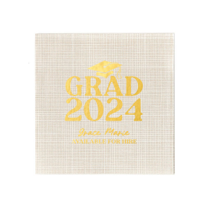 Zoom Show guides Loading product Grad Cap Elegance Year Napkin Paper Guest Towel Design ID: 2810797 Click on swatch to see options Choose Your Product Color Active Color Linen Like* - Premium Product Linen Like* - Premium Product Absorbent. Dyed tissue. Airlaid. Premium pricing applies. Linen Like Black Linen Like Stone Gray Linen Like White Linen Like Ivory Linen Like Powder Blue Linen Like Navy Linen Like Pebble Out Until: 2025-11-01 Crosshatch* - Premium Product Crosshatch* - Premium Product Absorbent. Printed tissue. Airlaid. Premium pricing applies. Crosshatch Stone Herringbone* - Premium Product Herringbone* - Premium Product Absorbent. Printed Herringbone pattern. Airlaid. Premium pricing applies. Herringbone Vanilla Mocha Herringbone Gray Onyx Choose Your Imprint Foil Color Active Color Shiny Foil Shiny Foil Metallic, lustrous finish. *Specialty patterned foil may vary on final print Shiny Champagne Shiny Sterling Silver Shiny 18 Kt Gold Shiny Kiwi / Lime Shiny Leaf Shiny Jade Shiny Royal Blue Shiny Amethyst Shiny Fuchsia Shiny Rose Quartz Shiny Rose Gold NEW Shiny Merlot Shiny Convertible Red Shiny Poppy Shiny Copper *Shiny Holographic Gold *Shiny Holographic Silver *Shiny Rainbow Matte Foil Matte Foil Flat finish. Matte NEW Chocolate Matte Black Matte Slate Gray Matte Dove Grey Matte White Matte Ivory Matte Mimosa Yellow Matte Sunflower Matte Key Lime Matte Leaf Matte Spruce Matte Teal/Peacock Matte Azure Matte Royal Blue Matte Navy Matte Amethyst Matte Pastel Pink Matte Ballet Pink Matte Fuchsia Matte Lipstick Red Matte Merlot Matte Tangerine Satin Foil Satin Foil Muted sheen, brushed finish. Satin Sterling Silver Satin 18 Kt. Gold Satin Copper Penny Satin Fuchsia Satin Lipstick Red Satin Leaf Satin Teal / Peacock Satin French Blue Satin Plum Personalize Your Text Line 1 Line 2 Line 3 Personalize further with different fonts, graphics, positioning, and sizes. (Optional) Customize More Choose Your Quantity Subtotal PRICE INCLUDES: Select a Proof Option: Print As Is I confirm that I have reviewed my design and I understand it will be produced as shown and no proof will be provided. Digital Proof + $15 I would like an expert FYP designer to look at my design, make minor corrections if necessary, and send me a black and white proof before the order is produced. Orders delivered as soon as 11.03.2025. Exclusions apply. Share Your Design About This Design Honor the graduate's milestone with the Grad Cap Elegance Year Napkin, featuring a dignified graduation cap, the year of triumph in bold text, and the graduate's name in an elegant script. A classy and memorable addition to any graduation party tablescape. Product Details Product Details Deluxe air laid tissue Measures approximately 4.25" wide by 8" high Signature foil stamp included Bulk discounts available Expedited shipping options available. Product Description Product Description Do you love our guest hand towels, but want a more premium feel? Our Linen Like Guest Hand Towels are the perfect addition to an elevated wedding, bar mitzvah, or any event where you want to show that you’ve thought of everything.Just like our Linen Like Cocktail Napkins, our Linen Like Guest Hand Towels are made of a premium material that has the thickness and feel of real linen, but in a convenient disposable package. Our Linen Like Guest Hand Towels also feature classic herringbone colorways for that extra touch! Product Options Paper Guest Towel Woven Square Cocktail Napkin Patterned Square Cocktail Napkin Square Linen Like Luncheon Napkin Square Luncheon Napkin Square Cocktail Napkin Shimmer Guest Hand Towel Square Petite Napkin Square Extra Large Dinner Napkin Square Shimmer Cocktail Napkin Square Linen Like Cocktail Napkin Square Crosshatch Cocktail Napkin Square Linen Like Dinner Napkin Related Products Paper Guest Towel Woven Square Cocktail Napkin Patterned Square Cocktail Napkin Square Linen Like Luncheon Napkin Square Luncheon Napkin Square Cocktail Napkin Shimmer Guest Hand Towel Square Petite Napkin Square Extra Large Dinner Napkin Square Shimmer Cocktail Napkin Square Linen Like Cocktail Napkin Square Crosshatch Cocktail Napkin Square Linen Like Dinner Napkin