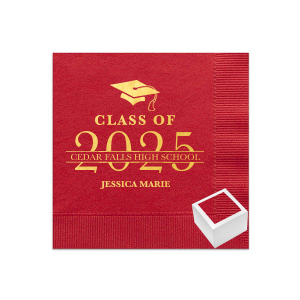Zoom Show guides Loading product Graduation Banner Napkin Reception Set Cocktail Napkin Reception Set Design ID: 2118895 Click on swatch to see options Choose Your Product Color Active Color Linen Like* - Premium Product Linen Like* - Premium Product Absorbent. Dyed tissue. Airlaid. Premium pricing applies. Pebble Kraft Ash Grey Black Charcoal Stone Gray Fog White Ivory Cream Buttercream Lemon Moss Green Olive Green Hunter Green Pastel Green Lime Eucalyptus Dark Turquoise Bright Sky Powder Blue Navy Lavender Berry Merlot Magenta Pastel Pink Pink Lipstick Red Terracotta Peach Mango Brown Out Until: 2025-11-21 Plum Out Until: 2025-11-13 Choose Your Imprint Foil Color Active Color Shiny Foil Shiny Foil Metallic, lustrous finish. *Specialty patterned foil may vary on final print Shiny Champagne Shiny Sterling Silver Shiny 18 Kt Gold Shiny Kiwi / Lime Shiny Leaf Shiny Jade Shiny Royal Blue Shiny Amethyst Shiny Fuchsia Shiny Rose Quartz Shiny Rose Gold NEW Shiny Merlot Shiny Convertible Red Shiny Poppy Shiny Copper *Shiny Holographic Gold *Shiny Holographic Silver *Shiny Rainbow Matte Foil Matte Foil Flat finish. Matte NEW Chocolate Matte Black Matte Slate Gray Matte Dove Grey Matte White Matte Ivory Matte Mimosa Yellow Matte Sunflower Matte Key Lime Matte Leaf Matte Spruce Matte Teal/Peacock Matte Azure Matte Royal Blue Matte Navy Matte Amethyst Matte Pastel Pink Matte Ballet Pink Matte Fuchsia Matte Lipstick Red Matte Merlot Matte Tangerine Satin Foil Satin Foil Muted sheen, brushed finish. Satin Sterling Silver Satin 18 Kt. Gold Satin Copper Penny Satin Fuchsia Satin Lipstick Red Satin Leaf Satin Teal / Peacock Satin French Blue Satin Plum Choose Your Reception Boxe Active Color Napkin Gift Boxes Napkin Gift Boxes Gift Box Personalize Your Text Line 1 Line 2 Line 3 Line 4 Personalize further with different fonts, graphics, positioning, and sizes. (Optional) Customize More Choose Your Quantity Subtotal PRICE INCLUDES: Select a Proof Option: Print As Is I confirm that I have reviewed my design and I understand it will be produced as shown and no proof will be provided. Digital Proof + $15 I would like an expert FYP designer to look at my design, make minor corrections if necessary, and send me a black and white proof before the order is produced. Orders delivered as soon as 11.06.2025. Exclusions apply. Share Your Design About This Design Do you want to bring a retro vibe on someone's party. We got your back! Graduation Banner Napkin Reception Set will come as plus one and leave everyone speechless. Product Details Product Details Minimum order of 75 White napkin holder base with clear lid Wrapped with your choice of gold, silver, or red elastic bow Expedited shipping options available. Product Options Cocktail Napkin Reception Set Cocktail Napkin Reception Set Related Products Cocktail Napkin Reception Set Cocktail Napkin Reception Set