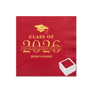 Zoom Show guides Loading product Graduation Banner Napkin Reception Set Cocktail Napkin Reception Set Design ID: 2118895 Click on swatch to see options Choose Your Product Color Active Color Linen Like* - Premium Product Linen Like* - Premium Product Absorbent. Dyed tissue. Airlaid. Premium pricing applies. Pebble Kraft Ash Grey Black Charcoal Stone Gray Fog White Cream Buttercream Lemon Moss Green Hunter Green Pastel Green Lime Eucalyptus Dark Turquoise Bright Sky Powder Blue Navy Lavender Magenta Pastel Pink Pink Terracotta Peach Mango Brown Out Until: 2025-12-26 Ivory Out Until: 2026-01-02 Olive Green Out Until: 2025-12-26 Berry Out Until: 2025-12-28 Merlot Out Until: 2025-12-25 Lipstick Red Out Until: 2025-12-19 Choose Your Imprint Foil Color Active Color Shiny Foil Shiny Foil Metallic, lustrous finish. *Specialty patterned foil may vary on final print Shiny Champagne Shiny Sterling Silver Shiny 18 Kt Gold Shiny Kiwi / Lime Shiny Leaf Shiny Jade Shiny Royal Blue Shiny Amethyst Shiny Fuchsia Shiny Rose Quartz Shiny Rose Gold NEW Shiny Merlot Shiny Convertible Red Shiny Poppy Shiny Copper *Shiny Holographic Gold *Shiny Holographic Silver *Shiny Rainbow Matte Foil Matte Foil Flat finish. Matte NEW Chocolate Matte Black Matte Slate Gray Matte Dove Grey Matte White Matte Ivory Matte Mimosa Yellow Matte Sunflower Matte Key Lime Matte Leaf Matte Spruce Matte Teal/Peacock Matte Azure Matte Royal Blue Matte Navy Matte Amethyst Matte Pastel Pink Matte Ballet Pink Matte Fuchsia Matte Lipstick Red Matte Merlot Matte Tangerine Satin Foil Satin Foil Muted sheen, brushed finish. Satin Sterling Silver Satin 18 Kt. Gold Satin Copper Penny Satin Fuchsia Satin Lipstick Red Satin Leaf Satin Teal / Peacock Satin French Blue Satin Plum Choose Your Reception Boxe Active Color Napkin Gift Boxes Napkin Gift Boxes Gift Box Personalize Your Text Line 1 Line 2 Line 3 Line 4 Personalize further with different fonts, graphics, positioning, and sizes. (Optional) Customize More Choose Your Quantity Subtotal PRICE INCLUDES: Select a Proof Option: Print As Is I confirm that I have reviewed my design and I understand it will be produced as shown and no proof will be provided. Digital Proof + $15 I would like an expert FYP designer to look at my design, make minor corrections if necessary, and send me a black and white proof before the order is produced. Orders delivered as soon as 12.19.2025. Exclusions apply. Share Your Design About This Design Do you want to bring a retro vibe on someone's party. We got your back! Graduation Banner Napkin Reception Set will come as plus one and leave everyone speechless. Product Details Product Details Minimum order of 75 White napkin holder base with clear lid Wrapped with your choice of gold, silver, or red elastic bow Expedited shipping options available. Product Options Cocktail Napkin Reception Set Cocktail Napkin Reception Set Related Products Cocktail Napkin Reception Set Cocktail Napkin Reception Set