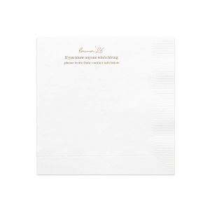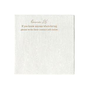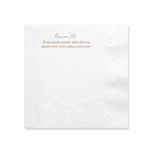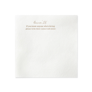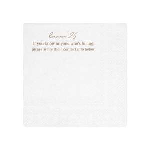Network in style with the Graduation Soiree Career Connect Napkin, inviting future opportunities with "If you know anyone who's hiring, please write their contact info below:" beneath the grad's name and graduation year in a chic script. A practical and innovative addition to any graduation party.