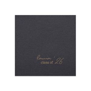 Zoom Show guides Loading product Graduation Soiree Elegance Napkin Square Linen Like Cocktail Napkin Design ID: 2846332 Click on swatch to see options Choose Your Product Color Active Color Linen Like* - Premium Product Linen Like* - Premium Product Absorbent. Dyed tissue. Airlaid. Premium pricing applies. Pebble Kraft Ash Grey Brown Black Stone Gray Fog White Ivory Cream Olive Green Hunter Green Pastel Green Lime Eucalyptus Dark Turquoise Bright Sky Powder Blue Navy Lavender Magenta Pink Pastel Pink Lipstick Red Terracotta Peach Mango Metallic Silver Metallic Gold Metallic Copper Charcoal Out Until: 2026-05-23 Buttercream Out Until: 2026-05-24 Lemon Out Until: 2026-05-19 Moss Green Out Until: 2026-05-28 Berry Out Until: 2026-05-15 Merlot Crosshatch* - Premium Product Crosshatch* - Premium Product Absorbent. Printed tissue. Airlaid. Premium pricing applies. Crosshatch Black Crosshatch Gray Crosshatch Stone Crosshatch Key Lime Crosshatch Green Crosshatch Turquoise Crosshatch Navy Crosshatch Violet Crosshatch Fuchsia Crosshatch Lipstick Red Herringbone* - Premium Product Herringbone* - Premium Product Absorbent. Printed Herringbone pattern. Airlaid. Premium pricing applies. Herringbone Gray Onyx Herringbone Vanilla Mocha Out Until: 2026-05-22 Choose Your Imprint Foil Color Active Color Shiny Foil Shiny Foil Metallic, lustrous finish. *Specialty patterned foil may vary on final print Shiny Champagne Shiny Sterling Silver Shiny 18 Kt Gold Shiny Kiwi / Lime Shiny Leaf Shiny Spruce Shiny Jade Shiny Royal Blue Shiny Amethyst Shiny Fuchsia Shiny Rose Quartz Shiny Rose Gold NEW Shiny Merlot Shiny Convertible Red Shiny Poppy Shiny Copper *Shiny Holographic Gold *Shiny Holographic Silver *Shiny Rainbow Matte Foil Matte Foil Flat finish. Matte NEW Chocolate Matte Black Matte Slate Gray Matte Dove Grey Matte White Matte Ivory Matte Mimosa Yellow Matte Sunflower Matte Key Lime Matte Leaf Matte Teal/Peacock Matte Azure Matte Royal Blue Matte Navy Matte Amethyst Matte Pastel Pink Matte Ballet Pink Matte Fuchsia Matte Lipstick Red Matte Merlot Matte Tangerine Satin Foil Satin Foil Muted sheen, brushed finish. Satin Sterling Silver Satin 18 Kt. Gold Satin Copper Penny Satin Fuchsia Satin Lipstick Red Satin Leaf Satin Teal / Peacock Satin French Blue Satin Plum Personalize Your Text Line 1 Line 2 Line 3 Personalize further with different fonts, graphics, positioning, and sizes. (Optional) Customize More Choose Your Quantity Subtotal PRICE INCLUDES: Select a Proof Option: Print As Is I confirm that I have reviewed my design and I understand it will be produced as shown and no proof will be provided. Digital Proof + $15 I would like an expert FYP designer to look at my design, make minor corrections if necessary, and send me a black and white proof before the order is produced. Orders delivered as soon as 05.12.2026. Exclusions apply. Share Your Design About This Design Mark the occasion with the Graduation Soiree Elegance Napkin, beautifully personalized with the graduate's name and commencement year in a contemporary script. A refined essential for any modern and classic graduation celebration. Product Details Product Details Deluxe air laid paper Measures approximately 5" x 5" Signature foil stamp included Bulk discounts available Expedited shipping options available. Product Description Product Description Introducing our custom Linen-Like Cocktail Napkins, the epitome of elegance and refinement for your sophisticated gatherings. Whether you're hosting a formal wedding reception or a chic cocktail soirée, these linen cocktail napkins effortlessly complement any table setting. Their soft and gentle touch will leave a lasting impression on guests, showcasing your commitment to providing a truly upscale experience. Meticulously crafted, these napkins exude the luxurious look and feel of fine linen while offering the convenience of being disposable. Crafted from premium-quality materials, they are highly absorbent and the same dimensions as our classic cocktail napkins. With the perfect blend of functionality and elegance, you can elevate any upscale bar or lounge. Product Options Square Linen Like Cocktail Napkin Square Linen Like Dinner Napkin Square Cocktail Napkin Square Luncheon Napkin Square Linen Like Luncheon Napkin Patterned Square Cocktail Napkin Woven Square Cocktail Napkin Square Dinner Napkin Square Petite Napkin Square Extra Large Dinner Napkin Square Shimmer Cocktail Napkin Related Products Square Linen Like Cocktail Napkin Square Linen Like Dinner Napkin Square Cocktail Napkin Square Luncheon Napkin Square Linen Like Luncheon Napkin Patterned Square Cocktail Napkin Woven Square Cocktail Napkin Square Dinner Napkin Square Petite Napkin Square Extra Large Dinner Napkin Square Shimmer Cocktail Napkin