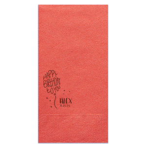 Zoom Show guides Loading product Happy Birthday Balloon Napkin Square Linen Like Cocktail Napkin Design ID: 243394 Click on swatch to see options Choose Your Product Color Active Color Linen Like* - Premium Product Linen Like* - Premium Product Absorbent. Dyed tissue. Airlaid. Premium pricing applies. Pebble Kraft Ash Grey Black Charcoal Stone Gray Fog White Ivory Cream Buttercream Lemon Moss Green Olive Green Hunter Green Pastel Green Lime Eucalyptus Dark Turquoise Bright Sky Powder Blue Navy Lavender Berry Merlot Magenta Pink Pastel Pink Lipstick Red Terracotta Peach Mango Metallic Silver Metallic Gold Metallic Copper Brown Out Until: 2025-11-21 Plum Out Until: 2025-11-13 Crosshatch* - Premium Product Crosshatch* - Premium Product Absorbent. Printed tissue. Airlaid. Premium pricing applies. Crosshatch Black Crosshatch Gray Crosshatch Stone Crosshatch Green Crosshatch Turquoise Crosshatch Violet Crosshatch Fuchsia Crosshatch Lipstick Red Crosshatch Key Lime Out Until: 2025-11-26 Crosshatch Navy Out Until: 2025-11-24 Herringbone* - Premium Product Herringbone* - Premium Product Absorbent. Printed Herringbone pattern. Airlaid. Premium pricing applies. Herringbone Vanilla Mocha Herringbone Gray Onyx Choose Your Imprint Foil Color Active Color Shiny Foil Shiny Foil Metallic, lustrous finish. *Specialty patterned foil may vary on final print Shiny Champagne Shiny Sterling Silver Shiny 18 Kt Gold Shiny Kiwi / Lime Shiny Leaf Shiny Jade Shiny Royal Blue Shiny Amethyst Shiny Fuchsia Shiny Rose Quartz Shiny Rose Gold NEW Shiny Merlot Shiny Convertible Red Shiny Poppy Shiny Copper *Shiny Holographic Gold *Shiny Holographic Silver *Shiny Rainbow Matte Foil Matte Foil Flat finish. Matte NEW Chocolate Matte Black Matte Slate Gray Matte Dove Grey Matte White Matte Ivory Matte Mimosa Yellow Matte Sunflower Matte Key Lime Matte Leaf Matte Spruce Matte Teal/Peacock Matte Azure Matte Royal Blue Matte Navy Matte Amethyst Matte Pastel Pink Matte Ballet Pink Matte Fuchsia Matte Lipstick Red Matte Merlot Matte Tangerine Satin Foil Satin Foil Muted sheen, brushed finish. Satin Sterling Silver Satin 18 Kt. Gold Satin Copper Penny Satin Fuchsia Satin Lipstick Red Satin Leaf Satin Teal / Peacock Satin French Blue Satin Plum Personalize Your Text Line 1 Line 2 Personalize further with different fonts, graphics, positioning, and sizes. (Optional) Customize More Choose Your Quantity Subtotal PRICE INCLUDES: Select a Proof Option: Print As Is I confirm that I have reviewed my design and I understand it will be produced as shown and no proof will be provided. Digital Proof + $15 I would like an expert FYP designer to look at my design, make minor corrections if necessary, and send me a black and white proof before the order is produced. Orders delivered as soon as 11.04.2025. Exclusions apply. Share Your Design About This Design Raise the Happy Birthday Balloon Napkin high as a toast to fun, with 'Happy Birthday to YOU' cleverly crafted into a balloon shape. Tied with a string and sprinkled with confetti, it's a playful piece of art celebrating the honored guest's big day. Product Details Product Details Deluxe air laid paper Measures approximately 5" x 5" Signature foil stamp included Bulk discounts available Expedited shipping options available. Product Description Product Description Introducing our custom Linen-Like Cocktail Napkins, the epitome of elegance and refinement for your sophisticated gatherings. Whether you're hosting a formal wedding reception or a chic cocktail soirée, these linen cocktail napkins effortlessly complement any table setting. Their soft and gentle touch will leave a lasting impression on guests, showcasing your commitment to providing a truly upscale experience. Meticulously crafted, these napkins exude the luxurious look and feel of fine linen while offering the convenience of being disposable. Crafted from premium-quality materials, they are highly absorbent and the same dimensions as our classic cocktail napkins. With the perfect blend of functionality and elegance, you can elevate any upscale bar or lounge. Product Options Square Linen Like Cocktail Napkin Square Cocktail Napkin Paper Guest Towel Square Luncheon Napkin Square Dinner Napkin Related Products Square Linen Like Cocktail Napkin Square Cocktail Napkin Paper Guest Towel Square Luncheon Napkin Square Dinner Napkin