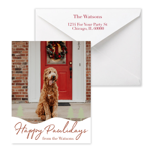 Zoom Show guides Loading product Happy Pawlidays Christmas Card Custom Photo Large Christmas Card Design ID: 2104574 Click on swatch to see options Choose Your Paper Color Active Color Digital Digital White Choose Your Note Card Print Color Active Color Digital Inks Digital Inks Matte Slate Gray Ink Matte White Ink Matte Ivory Ink Matte Dove Grey Matte Sand Ink Matte Taupe Ink Matte Kraft/Latte Ink Matte Chocolate Ink Matte Black Ink Matte Blush Ink Matte Rouge Ink Matte Pastel Pink Ink Matte Ballet Pink Ink Matte Light Coral Ink Matte Fuchsia Ink Matte Lipstick Red Ink Matte Dark Magenta Ink Matte Poppy Ink Matte Brick Ink Matte Red Berry Ink Matte Tangerine Ink Matte Mimosa Yellow Ink Matte Chartreuse Ink Matte Sunflower Ink Matte Mint Ink Matte Sage Ink Matte Spring Green Ink Matte Key Lime Ink Matte Moss Green Ink Matte Army Green Ink Matte Leaf Ink Matte Spruce Ink Matte Teal/Peacock Ink Matte Robin’s Egg Blue Ink Matte Turquoise Ink Matte Azure Ink Matte Periwinkle Ink Matte Sky Blue Ink Matte Stone Blue Ink Matte Dark Periwinkle Ink Matte Royal Blue Ink Matte Cobalt Ink Matte Lavender Ink Matte Navy Ink Matte Grape Soda Ink Matte Mauve Ink Matte Amethyst Ink Matte Plum Ink Matte Eggplant Ink Choose Your Envelope Print Color Active Color Digital Inks Digital Inks Matte Slate Gray Ink Matte White Ink Matte Ivory Ink Matte Dove Grey Matte Sand Ink Matte Taupe Ink Matte Kraft/Latte Ink Matte Chocolate Ink Matte Black Ink Matte Blush Ink Matte Rouge Ink Matte Pastel Pink Ink Matte Ballet Pink Ink Matte Light Coral Ink Matte Fuchsia Ink Matte Lipstick Red Ink Matte Dark Magenta Ink Matte Poppy Ink Matte Brick Ink Matte Red Berry Ink Matte Tangerine Ink Matte Mimosa Yellow Ink Matte Chartreuse Ink Matte Sunflower Ink Matte Mint Ink Matte Sage Ink Matte Spring Green Ink Matte Key Lime Ink Matte Moss Green Ink Matte Army Green Ink Matte Leaf Ink Matte Spruce Ink Matte Teal/Peacock Ink Matte Robin’s Egg Blue Ink Matte Turquoise Ink Matte Azure Ink Matte Periwinkle Ink Matte Sky Blue Ink Matte Stone Blue Ink Matte Dark Periwinkle Ink Matte Royal Blue Ink Matte Cobalt Ink Matte Lavender Ink Matte Navy Ink Matte Grape Soda Ink Matte Mauve Ink Matte Amethyst Ink Matte Plum Ink Matte Eggplant Ink Personalize Your Text Line 1 - CARD Line 2 - CARD Line 1 - ENVELOPE Line 2 - ENVELOPE Line 3 - ENVELOPE Personalize further with different fonts, graphics, positioning, and sizes. (Optional) Customize More Choose Your Quantity Subtotal PRICE INCLUDES: Select a Proof Option: Print As Is I confirm that I have reviewed my design and I understand it will be produced as shown and no proof will be provided. Digital Proof + $15 I would like an expert FYP designer to look at my design, make minor corrections if necessary, and send me a black and white proof before the order is produced. Orders delivered as soon as 12.11.2025. Exclusions apply. Share Your Design About This Design Happy Pawlidays! Send a holiday card or Christmas card with your furry best friend. This dog themed Christmas card is perfect for animal lovers. Product Details Product Details Minimum order of 30 A7 card measuring 7" wide by 5" high Custom photo digital printing on 100lb paper Envelope included. Product Description Product Description Personalized Custom Photo Large Christmas Cards will spread holiday cheer to your family and friends. Printed on top-quality white paper using a 4 color digital printing process, your photo will look crisp. You can upload your own photo or image with our FYP Customizer to create a unique Christmas card, Hanukkah card, or holiday card. Upload up to 2 full color art files or photographs to create a unique-to-you note card set. Envelopes with custom return address printing are included with all note card orders. Personalize your Custom Photo Large Christmas Cards with text and full color designs from our designer-curated collection. Your custom photo design will be printed with our 4 color digital printing process on high-quality 100lb white natural paper. Return addressed envelopes are included with your order. You also have the option to upload your own art for a truly unique product. Product Options Custom Photo Large Christmas Card Custom Photo Classic Christmas Card Related Products Custom Photo Large Christmas Card Custom Photo Classic Christmas Card