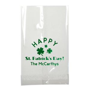 Zoom Show guides Loading product Happy St. Patrick's Day Bag Gloss Goodie Bag Design ID: 1343042 Click on swatch to see options Choose Your Product Color Active Color Bag Colors Bag Colors Sunflower Violet Fuchsia Lipstick Red Tangerine Choose Your Imprint Foil Color Active Color Shiny Foil Shiny Foil Metallic, lustrous finish. *Specialty patterned foil may vary on final print Shiny Champagne Shiny Sterling Silver Shiny 18 Kt Gold Shiny Kiwi / Lime Shiny Leaf Shiny Jade Shiny Royal Blue Shiny Amethyst Shiny Fuchsia Shiny Rose Quartz Shiny Rose Gold NEW Shiny Merlot Shiny Convertible Red Shiny Poppy Shiny Copper *Shiny Holographic Gold *Shiny Holographic Silver *Shiny Rainbow Matte Foil Matte Foil Flat finish. Matte NEW Chocolate Matte Black Matte Slate Gray Matte Dove Grey Matte White Matte Ivory Matte Mimosa Yellow Matte Sunflower Matte Key Lime Matte Leaf Matte Spruce Matte Teal/Peacock Matte Azure Matte Royal Blue Matte Navy Matte Amethyst Matte Pastel Pink Matte Ballet Pink Matte Fuchsia Matte Lipstick Red Matte Merlot Matte Tangerine Satin Foil Satin Foil Muted sheen, brushed finish. Satin Sterling Silver Satin 18 Kt. Gold Satin Copper Penny Satin Fuchsia Satin Lipstick Red Satin Leaf Satin Teal / Peacock Satin French Blue Satin Plum Choose Your Tissue Color Active Color Tissue Paper Tissue Paper Turquoise 10 sheets Lavender 10 sheets Pink 8 sheets Red 8 sheets None Brown 10 sheets Out Until: 2025-12-01 Black 10 sheets Out Until: 2025-12-01 Ivory 10 sheets Out Until: 2025-12-01 Royal Blue 10 sheets Out Until: 2025-12-01 Light Blue 10 sheets Out Until: 2025-12-01 Fuchsia 10 sheets Out Until: 2025-12-01 Personalize Your Text Line 1 Personalize further with different fonts, graphics, positioning, and sizes. (Optional) Customize More Choose Your Quantity Subtotal PRICE INCLUDES: Select a Proof Option: Print As Is I confirm that I have reviewed my design and I understand it will be produced as shown and no proof will be provided. Digital Proof + $15 I would like an expert FYP designer to look at my design, make minor corrections if necessary, and send me a black and white proof before the order is produced. Orders delivered as soon as 11.14.2025. Exclusions apply. Share Your Design About This Design Our personalized White Gloss Goodie Bag with Shiny Leaf Foil has a Clovers graphic and is good for use in St. Patricks Day and Holiday themed parties and will give your party the personalized touch every host desires. Product Details Product Details Minimum order of 25 Measures 5.25" wide by 9.75" high by 3" deep Gusseted design Bulk discounts available Expedited shipping options available. Product Description Product Description Introducing our Gloss Goodie Bags – the epitome of chic and functional party favor packaging! Elevate your event with these stunning customized bags, adding a touch of sophistication that leaves a lasting impression on your guests. Whether it's a wedding, corporate gala, or milestone celebration, these gloss goodie bags add a luxurious edge to any festivity. Crafted with exceptional quality, our Gloss Goodie Bags boast a premium texture and durability that ensures your party favors are beautifully presented and well-protected. The glossy finish adds an extra layer of elegance, making these bags a standout feature of your event. With customizable options, you can effortlessly match these bags to your theme or color scheme. Explore our other favor bag options. Product Options Gloss Goodie Bag Popcorn Bag Lunch Bag Large Cellophane Bag Small Cellophane Bag Cookie Bag Gift Bag Related Products Gloss Goodie Bag Popcorn Bag Lunch Bag Large Cellophane Bag Small Cellophane Bag Cookie Bag Gift Bag