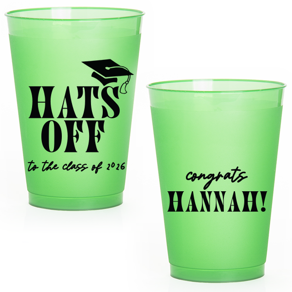 Zoom Show guides Loading product Hats Off To The Class Graduation Frost Cup 16-oz. Frosted Cup Design ID: 2252147 Click on swatch to see options Choose Your Screen Print Active Color Metallic Cup Ink Metallic Cup Ink Silver Ink Gold Ink Copper Ink Matte Cup Ink Matte Cup Ink Matte Chocolate Ink Matte Black Ink Matte Slate Gray Ink Matte White Ink Matte Sunflower Ink Matte Moss Green Ink Matte Sage Ink Matte Leaf Ink Matte Spruce Ink Matte Teal/Peacock Ink Matte Sky Blue Ink Matte French Blue Ink Matte Royal Blue Ink Matte Navy Ink Matte Cobalt Ink Matte Lavender Ink Matte Ballet Pink Ink Matte Fuchsia Ink Matte Lipstick Red Ink Matte Merlot Ink Matte Tangerine Ink Personalize Your Text Line 1 Line 2 Line 3 Line 4 Line 5 Personalize further with different fonts, graphics, positioning, and sizes. (Optional) Customize More Choose Your Quantity Subtotal PRICE INCLUDES: Select a Proof Option: Print As Is I confirm that I have reviewed my design and I understand it will be produced as shown and no proof will be provided. Digital Proof + $15 I would like an expert FYP designer to look at my design, make minor corrections if necessary, and send me a black and white proof before the order is produced. Orders delivered as soon as 05.20.2026. Exclusions apply. Share Your Design About This Design Meet this NEW NEW Hats Off To The Class Graduation Frost Cup! It will be the perfect fit on your graduation party and your guests will give you compliments like never before! Try it! Product Details Product Details Minimum order of 50 Measures 4.5" tall and 3.5" wide at the top Holds 15.1 oz flush fill volume Ideal for beer BPA-free and recyclable Shatterproof and top-rack dishwasher safe Bulk discounts available Expedited shipping options available. Product Description Product Description Frost flex cups from For Your Party are a perfect accent to any event, from weddings to birthdays. Their translucent plastic complements any drink or color scheme, and can have any art you can imagine. They’re also reusable, so your guests can have a keepsake from your special day. Like our 14 oz. frost flex cups , our 16 oz. frost flex cups are made in the USA, BPA free, and can be hand-washed again and again to remember your event. Our 16 oz. size is perfect for beer or signature cocktails, and has a flush fill volume of 15.1 oz. Product Options 16-oz. Frosted Cup 12oz Frost Flex Color 20-oz. Frosted Cup 24-oz. Frosted Cup 10-oz.Frosted Cup Related Products 16-oz. Frosted Cup 12oz Frost Flex Color 20-oz. Frosted Cup 24-oz. Frosted Cup 10-oz.Frosted Cup
