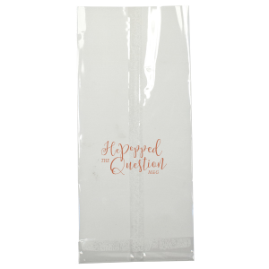 Zoom Show guides Loading product He Popped the Question Popcorn Bag Small Cellophane Bag Design ID: 12694 Click on swatch to see options Choose Your Imprint Foil Color Active Color Shiny Foil Shiny Foil Metallic, lustrous finish. *Specialty patterned foil may vary on final print Shiny Champagne Shiny Sterling Silver Shiny 18 Kt Gold Shiny Kiwi / Lime Shiny Leaf Shiny Jade Shiny Royal Blue Shiny Amethyst Shiny Fuchsia Shiny Rose Quartz Shiny Rose Gold NEW Shiny Merlot Shiny Convertible Red Shiny Poppy Shiny Copper *Shiny Holographic Gold *Shiny Holographic Silver *Shiny Rainbow Matte Foil Matte Foil Flat finish. Matte NEW Chocolate Matte Black Matte Slate Gray Matte Dove Grey Matte White Matte Ivory Matte Mimosa Yellow Matte Sunflower Matte Key Lime Matte Leaf Matte Spruce Matte Teal/Peacock Matte Azure Matte Royal Blue Matte Navy Matte Amethyst Matte Pastel Pink Matte Ballet Pink Matte Fuchsia Matte Lipstick Red Matte Merlot Matte Tangerine Satin Foil Satin Foil Muted sheen, brushed finish. Satin Sterling Silver Satin 18 Kt. Gold Satin Copper Penny Satin Fuchsia Satin Lipstick Red Satin Leaf Satin Teal / Peacock Satin French Blue Satin Plum Choose Your Tissue Color Active Color Tissue Paper Tissue Paper Turquoise 10 sheets Lavender 10 sheets Pink 8 sheets Red 8 sheets None Brown 10 sheets Out Until: 2025-12-01 Black 10 sheets Out Until: 2025-12-01 Ivory 10 sheets Out Until: 2025-12-01 Royal Blue 10 sheets Out Until: 2025-12-01 Light Blue 10 sheets Out Until: 2025-12-01 Fuchsia 10 sheets Out Until: 2025-12-01 Personalize Your Text Line 1 Personalize further with different fonts, graphics, positioning, and sizes. (Optional) Customize More Choose Your Quantity Subtotal PRICE INCLUDES: Select a Proof Option: Print As Is I confirm that I have reviewed my design and I understand it will be produced as shown and no proof will be provided. Digital Proof + $15 I would like an expert FYP designer to look at my design, make minor corrections if necessary, and send me a black and white proof before the order is produced. Orders delivered as soon as 11.07.2025. Exclusions apply. Share Your Design About This Design ForYourParty's personalized Satin Copper Penny Small Cellophane Bag with Satin Copper Penny Foil will impress guests like no other. Make this party unforgettable. Product Details Product Details Minimum order of 25 Measures 3.75" wide by 6.25" high Non-gusseted clear plastic Bulk discounts available Expedited shipping options available. Product Description Product Description Introducing our Custom Small Cellophane Bags – the perfect choice to add a touch of personalization and elegance to your next celebration. When you opt for these custom bags from For Your Party, you're choosing a versatile accessory that can elevate a wide range of events and gatherings. From weddings and bridal showers to baby showers and corporate functions, these bags are the ideal addition to make your event truly special. Crafted with top-notch cellophane material, our bags offer exceptional quality, ensuring your treats are showcased beautifully while remaining fresh and intact. They are designed for convenience, making them perfect for packaging party favors, candies, and small gifts. With a variety of design options available, you can easily tailor them to match your party's theme or color scheme. Check out our other bags too! Product Options Small Cellophane Bag Large Cellophane Bag Popcorn Bag Gloss Goodie Bag Cookie Bag Related Products Small Cellophane Bag Large Cellophane Bag Popcorn Bag Gloss Goodie Bag Cookie Bag