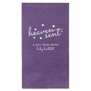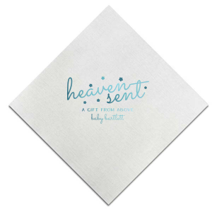 Zoom Show guides Loading product Heaven Sent Napkin Square Cocktail Napkin Design ID: 154477 Click on swatch to see options Choose Your Product Color Active Color 3 ply 3 ply Top quality 3 ply. Dyed tissue. Sand Black Slate Platinum Pin Dot Dove Gray Dove Gray Borderless White White Borderless White Pin Dot White Scallop Ivory Ivory Borderless Kiwi Pin Dot Leaf Pin Dot Spruce Pin Dot Olive Pin Dot Dark Navy Pin Dot Light Navy Dark Turquoise Pin Dot Turquoise Powder Blue Pin Dot Lavender Pin Dot Merlot Pin Dot Antique Pink Pin Dot Ballet Pink Ballet Pink Borderless Convertible Red Light Coral Tangerine Pin Dot Platinum Out Until: 2026-05-20 Mimosa Out Until: 2026-05-23 Lemon Pin Dot Out Until: 2026-05-13 Kiwi Out Until: 2026-05-20 Lavender Out Until: 2026-04-17 Merlot Out Until: 2026-05-13 Fuchsia Out Until: 2026-05-27 Linen Like* - Premium Product Linen Like* - Premium Product Absorbent. Dyed tissue. Airlaid. Premium pricing applies. Pebble Kraft Metallic Copper Ash Grey Brown Black Stone Gray Metallic Silver Fog White Ivory Cream Metallic Gold Olive Green Hunter Green Pastel Green Lime Eucalyptus Dark Turquoise Bright Sky Powder Blue Navy Lavender Magenta Pink Pastel Pink Lipstick Red Terracotta Peach Mango Charcoal Out Until: 2026-05-23 Buttercream Out Until: 2026-05-24 Lemon Out Until: 2026-05-19 Moss Green Out Until: 2026-05-28 Berry Out Until: 2026-05-15 Merlot Crosshatch* - Premium Product Crosshatch* - Premium Product Absorbent. Printed tissue. Airlaid. Premium pricing applies. Crosshatch Black Crosshatch Gray Crosshatch Stone Crosshatch Key Lime Crosshatch Green Crosshatch Turquoise Crosshatch Navy Crosshatch Violet Crosshatch Fuchsia Crosshatch Lipstick Red Woven* - Premium Product Woven* - Premium Product Basketweave texture. Single-sided color. Premium pricing applies. Woven Sand Woven Copper Woven Black Woven Slate Woven Silver Woven Stone Woven Vanilla Woven White Woven Gold Woven Sage Woven Spruce Woven Powder Blue Woven Navy Woven Mauve Woven Convertible Red Woven Tumeric Patterned* - Premium Product Patterned* - Premium Product Exclusive FYP patterns. Single-sided color. Pindot embossed edge. Product pricing applies. Oak Wood Walnut Wood Ebony Wood Ash Wood Birch Wood Marble Sand Marble Gray Marble Navy Marble Taupe Marble Blush Ombre Black Ombre Navy Ombre Robin’s Egg Blue Ombre Rose Petal Ombre Coral Watercolor Sea Glass Watercolor Ocean Watercolor Nightfall Watercolor Sangria Watercolor Hibiscus Watercolor Rose Watercolor Sunrise Leaf Sand Leaf Fern Leaf Rain Leaf Rose Tie Dye Sunflower Tie Dye Leaf Tie Dye Turquoise Tie Dye Fuchsia Shimmer* - Premium Product Shimmer* - Premium Product Elegant European Stardream with iridescent finish. Single-sided color. Pindot embossed edge. Premium pricing applies. Champagne Soft Black Galvanized Silver Crystal White Ivory Pearl Gold Sage Navy Amethyst Out Until: 2026-05-22 Herringbone* - Premium Product Herringbone* - Premium Product Absorbent. Printed Herringbone pattern. Airlaid. Premium pricing applies. Herringbone Gray Onyx Herringbone Vanilla Mocha Out Until: 2026-05-22 Choose Your Imprint Foil Color Active Color Shiny Foil Shiny Foil Metallic, lustrous finish. *Specialty patterned foil may vary on final print Shiny Champagne Shiny Sterling Silver Shiny 18 Kt Gold Shiny Kiwi / Lime Shiny Leaf Shiny Spruce Shiny Jade Shiny Royal Blue Shiny Amethyst Shiny Fuchsia Shiny Rose Quartz Shiny Rose Gold NEW Shiny Merlot Shiny Convertible Red Shiny Poppy Shiny Copper *Shiny Holographic Gold *Shiny Holographic Silver *Shiny Rainbow Matte Foil Matte Foil Flat finish. Matte NEW Chocolate Matte Black Matte Slate Gray Matte Dove Grey Matte White Matte Ivory Matte Mimosa Yellow Matte Sunflower Matte Key Lime Matte Leaf Matte Teal/Peacock Matte Azure Matte Royal Blue Matte Navy Matte Amethyst Matte Pastel Pink Matte Ballet Pink Matte Fuchsia Matte Lipstick Red Matte Merlot Matte Tangerine Satin Foil Satin Foil Muted sheen, brushed finish. Satin Sterling Silver Satin 18 Kt. Gold Satin Copper Penny Satin Fuchsia Satin Lipstick Red Satin Leaf Satin Teal / Peacock Satin French Blue Satin Plum Personalize Your Text Line 1 Line 2 Personalize further with different fonts, graphics, positioning, and sizes. (Optional) Customize More Choose Your Quantity Subtotal PRICE INCLUDES: Select a Proof Option: Print As Is I confirm that I have reviewed my design and I understand it will be produced as shown and no proof will be provided. Digital Proof + $15 I would like an expert FYP designer to look at my design, make minor corrections if necessary, and send me a black and white proof before the order is produced. Orders delivered as soon as 05.12.2026. Exclusions apply. Share Your Design About This Design Celebrate the miracle of a new arrival with the Heaven Sent Napkin. This whimsical design features the tender phrase ‘heaven sent’ in a dreamy lower case script, adorned with stars as if floating in the sky. Perfect for baby showers or gender reveal parties, this napkin encapsulates the joy and wonder of welcoming a new life. Product Details Product Details Classic 3-ply tissue, 4.75” or 5” square Colors vary Signature foil stamp included Bulk discounts available Expedited shipping options available. Product Description Product Description Classic Cocktail Napkins are the perfect companion for any event. Add a touch of refinement to your cocktail parties, weddings, or birthday celebrations. Whether you're sipping a Martini, Old Fashioned, or a signature cocktail, these beverage napkins are the perfect accompaniment to elevate your drink service to new heights.Traditionally designed with a classic pleated edge, highly absorbent, durable, crafted from high-quality, premium-grade paper, our Classic Cocktail Napkins are an excellent, timeless choice. They are soft to the touch, keeping your guests' hands dry and your furniture protected. Once used, simply discard them, making cleanup a breeze. Explore our Cocktail Napkins Collection to find the perfect 