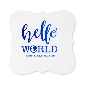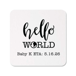 Zoom Show guides Loading product Hello World Baby Shower Coaster Round 4" Design ID: 3301 Click on swatch to see options Choose Your Product Color Active Color Coaster Colors Coaster Colors Black Eggshell White Out Until: 2026-01-04 Choose Your Imprint Foil Color Active Color Shiny Foil Shiny Foil Metallic, lustrous finish. *Specialty patterned foil may vary on final print Shiny Champagne Shiny Sterling Silver Shiny 18 Kt Gold Shiny Kiwi / Lime Shiny Leaf Shiny Jade Shiny Royal Blue Shiny Amethyst Shiny Fuchsia Shiny Rose Quartz Shiny Rose Gold NEW Shiny Merlot Shiny Convertible Red Shiny Poppy Shiny Copper *Shiny Holographic Gold *Shiny Holographic Silver *Shiny Rainbow Matte Foil Matte Foil Flat finish. Matte NEW Chocolate Matte Black Matte Slate Gray Matte Dove Grey Matte White Matte Ivory Matte Mimosa Yellow Matte Sunflower Matte Key Lime Matte Leaf Matte Spruce Matte Teal/Peacock Matte Azure Matte Royal Blue Matte Navy Matte Amethyst Matte Pastel Pink Matte Ballet Pink Matte Fuchsia Matte Lipstick Red Matte Merlot Matte Tangerine Satin Foil Satin Foil Muted sheen, brushed finish. Satin Sterling Silver Satin 18 Kt. Gold Satin Copper Penny Satin Fuchsia Satin Lipstick Red Satin Leaf Satin Teal / Peacock Satin French Blue Satin Plum Personalize Your Text Line 1 Personalize further with different fonts, graphics, positioning, and sizes. (Optional) Customize More Choose Your Quantity Subtotal PRICE INCLUDES: Select a Proof Option: Print As Is I confirm that I have reviewed my design and I understand it will be produced as shown and no proof will be provided. Digital Proof + $15 I would like an expert FYP designer to look at my design, make minor corrections if necessary, and send me a black and white proof before the order is produced. Orders delivered as soon as 12.23.2025. Exclusions apply. Share Your Design About This Design Welcome new beginnings with the Hello World Baby Shower Coaster, where a playful 'hello' meets a globe-adorned 'world.' This vibrant design celebrates the arrival of a little one, turning every table into a map of joyous expectation. Product Details Product Details Minimum order of 50 Measures 4" in diameter Made from reusable uncoated pulp board Bulk discounts available Expedited shipping options available. Product Description Product Description Our stylish Round Coasters are the must-have choice to elevate your event's decor and protect your surfaces with flair. These customizable coasters are the perfect addition to weddings, cocktail parties, corporate events, and more. They not only safeguard your furniture but also serve as stylish accessories that leave a lasting impression on your guests. Crafted from uncoated pulp board, our Round Coasters boast premium quality, featuring a smooth texture that adds a touch of sophistication to your event. These durable coasters are designed for convenience, easily accommodating glasses and mugs of all sizes. Customize these coasters with your unique design or event details, making them a memorable keepsake for your guests. Explore our other barware. Product Options Round 4" Square 4" Hexagon Coaster Nouveau Related Products Round 4" Square 4" Hexagon Coaster Nouveau Material Pulp Board