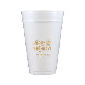 Zoom Show guides Loading product Hoppy Birthday Foam Cup 12-oz. Styrofoam Cup Design ID: 258964 Click on swatch to see options Choose Your Screen Print Active Color Matte Cup Ink Matte Cup Ink Matte Black Ink Matte Slate Gray Ink Matte Moss Green Ink Matte Leaf Ink Matte Spruce Matte Sky Blue Ink Matte Royal Blue Ink Matte Navy Ink Matte Cobalt Ink Matte Ballet Pink Ink Matte Fuchsia Ink Matte Lipstick Red Ink Matte Merlot Ink Metallic Cup Ink Metallic Cup Ink Silver Ink Gold Ink Copper Ink Personalize Your Text Line 1 Personalize further with different fonts, graphics, positioning, and sizes. (Optional) Customize More Choose Your Quantity Subtotal PRICE INCLUDES: Select a Proof Option: Print As Is I confirm that I have reviewed my design and I understand it will be produced as shown and no proof will be provided. Digital Proof + $15 I would like an expert FYP designer to look at my design, make minor corrections if necessary, and send me a black and white proof before the order is produced. Orders delivered as soon as 12.15.2025. Exclusions apply. Share Your Design About This Design Raise a glass—and a laugh—with the Hoppy Birthday Foam Cup! Featuring vibrant "Hoppy Birthday" text and a foaming beer mug, it’s the ultimate brew-themed bash accessory. Customize with the celebrant’s name for cheers guaranteed from every sip! Product Details Product Details Minimum order of 50 Measures 4.5" tall and 3.5" wide at the top Ideal for coffee and tea Recyclable Bulk discounts available Expedited shipping options available. Product Description Product Description Want the customization of our custom cups, but easier clean-up? Our styrofoam cups are the answer. Custom printed cups are great for your bachelorette party, or any time where you’re on the go and can’t stop to clean! Like their frost flex siblings, these are a compact 12 oz. package that can be customized with your art. Recyclable styrofoam is great for convenience and versatility—these cups can serve up hot or cold drinks, and no washing needed. Try them for coffee or mixed drinks at your next party! Product Options 12-oz. Styrofoam Cup 16-oz. Styrofoam Cup 20-oz. Styrofoam Cup 24-oz. Styrofoam Cup 32-oz. Styrofoam Cup Related Products 12-oz. Styrofoam Cup 16-oz. Styrofoam Cup 20-oz. Styrofoam Cup 24-oz. Styrofoam Cup 32-oz. Styrofoam Cup