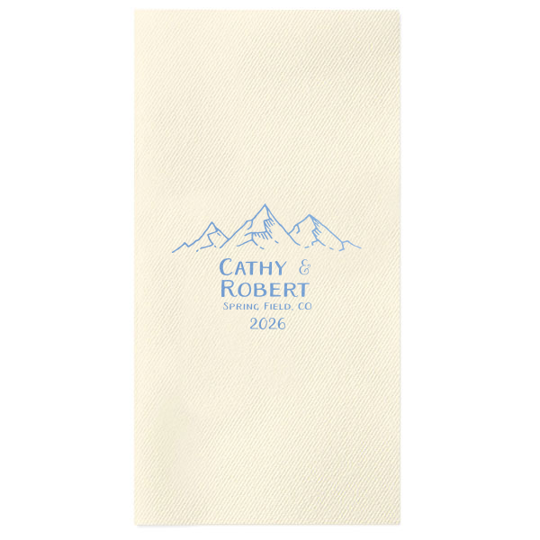 Zoom Show guides Loading product I Love You to The Mountains Napkin Diamond Cocktail Napkin Design ID: 1121017 Click on swatch to see options Choose Your Napkin Color Active Color 3 ply 3 ply Top quality 3 ply. Dyed tissue. Sand Black Slate Platinum Pin Dot Dove Gray Dove Gray Borderless White White Borderless White Pin Dot White Scallop Ivory Ivory Borderless Kiwi Pin Dot Spruce Pin Dot Olive Pin Dot Dark Navy Pin Dot Light Navy Dark Turquoise Pin Dot Turquoise Powder Blue Pin Dot Lavender Pin Dot Merlot Pin Dot Antique Pink Pin Dot Ballet Pink Ballet Pink Borderless Convertible Red Light Coral Tangerine Pin Dot Platinum Out Until: 2026-04-18 Mimosa Out Until: 2026-05-05 Lemon Pin Dot Out Until: 2026-04-13 Kiwi Out Until: 2026-04-14 Leaf Pin Dot Out Until: 2026-04-25 Lavender Out Until: 2026-04-17 Merlot Out Until: 2026-04-05 Fuchsia Out Until: 2026-04-21 Candy Pink Out Until: 2026-05-01 Linen Like* - Premium Product Linen Like* - Premium Product Absorbent. Dyed tissue. Airlaid. Premium pricing applies. Pebble Kraft Metallic Copper Ash Grey Brown Black Charcoal Stone Gray Metallic Silver Fog White Ivory Cream Buttercream Metallic Gold Lemon Moss Green Olive Green Hunter Green Pastel Green Lime Eucalyptus Dark Turquoise Bright Sky Powder Blue Navy Lavender Berry Magenta Pastel Pink Pink Lipstick Red Terracotta Peach Mango Merlot Crosshatch* - Premium Product Crosshatch* - Premium Product Absorbent. Printed tissue. Airlaid. Premium pricing applies. Crosshatch Black Crosshatch Gray Crosshatch Stone Crosshatch Key Lime Crosshatch Green Crosshatch Navy Crosshatch Turquoise Out Until: 2026-05-10 Crosshatch Violet Out Until: 2026-05-03 Crosshatch Fuchsia Out Until: 2026-01-29 Crosshatch Lipstick Red Out Until: 2026-04-16 Woven* - Premium Product Woven* - Premium Product Basketweave texture. Single-sided color. Premium pricing applies. Woven Sand Woven Copper Woven Black Woven Slate Woven Silver Woven Stone Woven Vanilla Woven White Woven Gold Woven Sage Woven Spruce Woven Powder Blue Woven Navy Woven Mauve Woven Convertible Red Woven Tumeric Patterned* - Premium Product Patterned* - Premium Product Exclusive FYP patterns. Single-sided color. Pindot embossed edge. Product pricing applies. Oak Wood Walnut Wood Ebony Wood Ash Wood Birch Wood Marble Sand Marble Gray Marble Navy Marble Taupe Marble Blush Ombre Black Ombre Navy Ombre Robin’s Egg Blue Ombre Rose petal Ombre Coral Watercolor Sea Glass Watercolor Ocean Watercolor Nightfall Watercolor Sangria Watercolor Hibiscus Watercolor Rose Watercolor Sunrise Leaf Sand Leaf Fern Leaf Rain Leaf Rose Tie Dye Sunflower Tie Dye Leaf Tie Dye Turquoise Tie Dye Fuchsia Shimmer* - Premium Product Shimmer* - Premium Product Elegant European Stardream with iridescent finish. Single-sided color. Pindot embossed edge. Premium pricing applies. Champagne Soft Black Galvanized Silver Crystal White Ivory Pearl Gold Sage Navy Amethyst Herringbone* - Premium Product Herringbone* - Premium Product Absorbent. Printed Herringbone pattern. Airlaid. Premium pricing applies. Herringbone Gray Onyx Herringbone Vanilla Mocha Out Until: 2026-04-21 Choose Your Imprint Foil Color Active Color Shiny Foil Shiny Foil Metallic, lustrous finish. *Specialty patterned foil may vary on final print Shiny Champagne Shiny Sterling Silver Shiny 18 Kt Gold Shiny Kiwi / Lime Shiny Leaf Shiny Spruce Shiny Jade Shiny Royal Blue Shiny Amethyst Shiny Fuchsia Shiny Rose Quartz Shiny Rose Gold NEW Shiny Merlot Shiny Convertible Red Shiny Poppy Shiny Copper *Shiny Holographic Gold *Shiny Holographic Silver *Shiny Rainbow Matte Foil Matte Foil Flat finish. Matte NEW Chocolate Matte Black Matte Slate Gray Matte Dove Grey Matte White Matte Ivory Matte Mimosa Yellow Matte Sunflower Matte Key Lime Matte Leaf Matte Teal/Peacock Matte Azure Matte Royal Blue Matte Navy Matte Amethyst Matte Pastel Pink Matte Ballet Pink Matte Fuchsia Matte Lipstick Red Matte Merlot Matte Tangerine Satin Foil Satin Foil Muted sheen, brushed finish. Satin Sterling Silver Satin 18 Kt. Gold Satin Copper Penny Satin Fuchsia Satin Lipstick Red Satin Leaf Satin Teal / Peacock Satin French Blue Satin Plum Personalize Your Text Line 1 Line 2 Line 3 Line 4 Personalize further with different fonts, graphics, positioning, and sizes. (Optional) Customize More Choose Your Quantity Subtotal PRICE INCLUDES: Select a Proof Option: Print As Is I confirm that I have reviewed my design and I understand it will be produced as shown and no proof will be provided. Digital Proof + $15 I would like an expert FYP designer to look at my design, make minor corrections if necessary, and send me a black and white proof before the order is produced. Orders delivered as soon as 04.22.2026. Exclusions apply. Share Your Design About This Design The ever-popular Ivory Borderless Cocktail Napkin with Satin French Blue Foil has a Mountain Range graphic and is good for use in Adventure, Outdoors themed parties and can't be beat. Showcase your style in every detail of your party's theme! Product Details Product Details Classic 3-ply tissue, 4.75” or 5” square Colors vary Signature foil stamp included Bulk discounts available Expedited shipping options available. Product Description Product Description Classic Cocktail Napkins are the perfect companion for any event. Add a touch of refinement to your cocktail parties, weddings, or birthday celebrations. Whether you're sipping a Martini, Old Fashioned, or a signature cocktail, these beverage napkins are the perfect accompaniment to elevate your drink service to new heights.Traditionally designed with a classic pleated edge, highly absorbent, durable, crafted from high-quality, premium-grade paper, our Classic Cocktail Napkins are an excellent, timeless choice. They are soft to the touch, keeping your guests' hands dry and your furniture protected. Once used, simply discard them, making cleanup a breeze. Explore our Cocktail Napkins Collection to find the perfect option for your event. Due to the complexities 