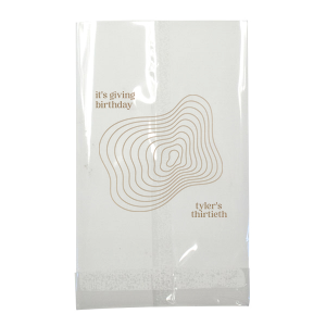 Zoom Show guides Loading product It's Giving Birthday Bag Large Cellophane Bag Design ID: 2319653 Click on swatch to see options Choose Your Imprint Foil Color Active Color Shiny Foil Shiny Foil Metallic, lustrous finish. *Specialty patterned foil may vary on final print Shiny Champagne Shiny Sterling Silver Shiny 18 Kt Gold Shiny Kiwi / Lime Shiny Leaf Shiny Jade Shiny Royal Blue Shiny Amethyst Shiny Fuchsia Shiny Rose Quartz Shiny Rose Gold NEW Shiny Merlot Shiny Convertible Red Shiny Poppy Shiny Copper *Shiny Holographic Gold *Shiny Holographic Silver *Shiny Rainbow Matte Foil Matte Foil Flat finish. Matte NEW Chocolate Matte Black Matte Slate Gray Matte Dove Grey Matte White Matte Ivory Matte Mimosa Yellow Matte Sunflower Matte Key Lime Matte Leaf Matte Spruce Matte Teal/Peacock Matte Azure Matte Royal Blue Matte Navy Matte Amethyst Matte Pastel Pink Matte Ballet Pink Matte Fuchsia Matte Lipstick Red Matte Merlot Matte Tangerine Satin Foil Satin Foil Muted sheen, brushed finish. Satin Sterling Silver Satin 18 Kt. Gold Satin Copper Penny Satin Fuchsia Satin Lipstick Red Satin Leaf Satin Teal / Peacock Satin French Blue Satin Plum Choose Your Tissue Color Active Color Tissue Paper Tissue Paper Turquoise 10 sheets Lavender 10 sheets Pink 8 sheets Red 8 sheets None Brown 10 sheets Out Until: 2025-12-01 Black 10 sheets Out Until: 2025-12-01 Ivory 10 sheets Out Until: 2025-12-01 Royal Blue 10 sheets Out Until: 2025-12-01 Light Blue 10 sheets Out Until: 2025-12-01 Fuchsia 10 sheets Out Until: 2025-12-01 Personalize Your Text Line 1 Line 2 Line 3 Line 4 Personalize further with different fonts, graphics, positioning, and sizes. (Optional) Customize More Choose Your Quantity Subtotal PRICE INCLUDES: Select a Proof Option: Print As Is I confirm that I have reviewed my design and I understand it will be produced as shown and no proof will be provided. Digital Proof + $15 I would like an expert FYP designer to look at my design, make minor corrections if necessary, and send me a black and white proof before the order is produced. Orders delivered as soon as 11.07.2025. Exclusions apply. Share Your Design About This Design This minimal and modern bag is perfect for celebrating your upcoming birthday! Party in style and customize with your name and birthday. Product Details Product Details Minimum order of 25 Measures 4" wide by 9" high Non-gusseted clear plastic Bulk discounts available Expedited shipping options available. Product Description Product Description Our Custom Large Cellophane Bags are the ultimate choice for adding a personalized and practical touch to your party favors and goodies. Ideal for weddings, holiday gatherings, corporate parties, and large-scale celebrations, our custom cellophane bags allow you to make a lasting impression on your guests. Crafted with top-quality cellophane material, our bags offer exceptional texture and durability, ensuring your treats remain fresh and presentable. These bags are incredibly convenient to use, allowing you to effortlessly display and distribute your party favors. With a multitude of customizable designs, you can easily match them to your event's theme or color palette. Check out our other bags too! Product Options Large Cellophane Bag Small Cellophane Bag Wine Gift Bag Classic Wine Bag Lunch Bag Gloss Goodie Bag Popcorn Bag Cookie Bag Classic Gift Bag Related Products Large Cellophane Bag Small Cellophane Bag Wine Gift Bag Classic Wine Bag Lunch Bag Gloss Goodie Bag Popcorn Bag Cookie Bag Classic Gift Bag