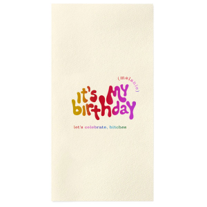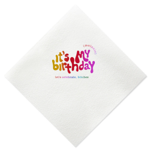 Zoom Show guides Loading product It's My Birthday Napkin Diamond Linen Like Cocktail Napkin Design ID: 2319714 Click on swatch to see options Choose Your Napkin Color Active Color Linen Like* - Premium Product Linen Like* - Premium Product Absorbent. Dyed tissue. Airlaid. Premium pricing applies. Pebble Kraft Ash Grey Brown Black Stone Gray Fog White Cream Ivory Moss Green Olive Green Hunter Green Pastel Green Lime Eucalyptus Dark Turquoise Out Until: 2026-05-01 Bright Sky Powder Blue Navy Lavender Magenta Pastel Pink Pink Lipstick Red Terracotta Peach Mango Metallic Silver Metallic Gold Metallic Copper Charcoal Out Until: 2026-05-23 Buttercream Out Until: 2026-05-24 Lemon Out Until: 2026-05-19 Berry Out Until: 2026-05-15 Merlot Crosshatch* - Premium Product Crosshatch* - Premium Product Absorbent. Printed tissue. Airlaid. Premium pricing applies. Crosshatch Black Crosshatch Gray Crosshatch Stone Crosshatch Key Lime Crosshatch Green Crosshatch Turquoise Crosshatch Navy Crosshatch Violet Crosshatch Fuchsia Crosshatch Lipstick Red Herringbone* - Premium Product Herringbone* - Premium Product Absorbent. Printed Herringbone pattern. Airlaid. Premium pricing applies. Herringbone Gray Onyx Herringbone Vanilla Mocha Out Until: 2026-05-22 Choose Your Imprint Foil Color Active Color Shiny Foil Shiny Foil Metallic, lustrous finish. *Specialty patterned foil may vary on final print Shiny Champagne Shiny Sterling Silver Shiny 18 Kt Gold Shiny Kiwi / Lime Shiny Leaf Shiny Spruce Shiny Jade Shiny Royal Blue Shiny Amethyst Shiny Fuchsia Shiny Rose Quartz Shiny Rose Gold NEW Shiny Merlot Shiny Convertible Red Shiny Poppy Shiny Copper *Shiny Holographic Gold *Shiny Holographic Silver *Shiny Rainbow Matte Foil Matte Foil Flat finish. Matte NEW Chocolate Matte Black Matte Slate Gray Matte Dove Grey Matte White Matte Ivory Matte Mimosa Yellow Matte Sunflower Matte Key Lime Matte Leaf Matte Teal/Peacock Matte Azure Matte Royal Blue Matte Navy Matte Amethyst Matte Pastel Pink Matte Ballet Pink Matte Fuchsia Matte Lipstick Red Matte Merlot Matte Tangerine Satin Foil Satin Foil Muted sheen, brushed finish. Satin Sterling Silver Satin 18 Kt. Gold Satin Copper Penny Satin Fuchsia Satin Lipstick Red Satin Leaf Satin Teal / Peacock Satin French Blue Satin Plum Personalize Your Text Line 1 Line 2 Personalize further with different fonts, graphics, positioning, and sizes. (Optional) Customize More Choose Your Quantity Subtotal PRICE INCLUDES: Select a Proof Option: Print As Is I confirm that I have reviewed my design and I understand it will be produced as shown and no proof will be provided. Digital Proof + $15 I would like an expert FYP designer to look at my design, make minor corrections if necessary, and send me a black and white proof before the order is produced. Orders delivered as soon as 05.11.2026. Exclusions apply. Share Your Design About This Design Celebrate your birthday in style! This groovy birthday napkin will bring the party at your event. Personalize with your name. Product Details Product Details Deluxe air laid paper Measures approximately 5" x 5" Signature foil stamp included Bulk discounts available Expedited shipping options available. Product Description Product Description Introducing our custom Linen-Like Cocktail Napkins, the epitome of elegance and refinement for your sophisticated gatherings. Whether you're hosting a formal wedding reception or a chic cocktail soirée, these linen cocktail napkins effortlessly complement any table setting. Their soft and gentle touch will leave a lasting impression on guests, showcasing your commitment to providing a truly upscale experience. Meticulously crafted, these napkins exude the luxurious look and feel of fine linen while offering the convenience of being disposable. Crafted from premium-quality materials, they are highly absorbent and the same dimensions as our classic cocktail napkins. With the perfect blend of functionality and elegance, you can elevate any upscale bar or lounge. Product Options Diamond Linen Like Cocktail Napkin Diamond Cocktail Napkin Diamond Luncheon Napkin Diamond Shimmer Luncheon Napkin Diamond Linen Like Luncheon Napkin Patterned Diamond Cocktail Napkin Woven Diamond Cocktail Napkin Paper Guest Towel Diamond Dinner Napkin Shimmer Guest Hand Towel Paper Guest Towel Diamond Petite Napkin Diamond Bottom Scalloped Luncheon Napkin Diamond Shimmer Cocktail Napkin Diamond Crosshatch Cocktail Napkin Related Products Diamond Linen Like Cocktail Napkin Diamond Cocktail Napkin Diamond Luncheon Napkin Diamond Shimmer Luncheon Napkin Diamond Linen Like Luncheon Napkin Patterned Diamond Cocktail Napkin Woven Diamond Cocktail Napkin Paper Guest Towel Diamond Dinner Napkin Shimmer Guest Hand Towel Paper Guest Towel Diamond Petite Napkin Diamond Bottom Scalloped Luncheon Napkin Diamond Shimmer Cocktail Napkin Diamond Crosshatch Cocktail Napkin