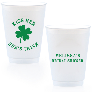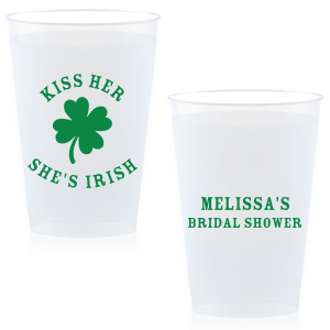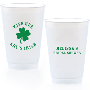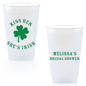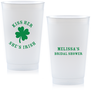 Zoom Show guides Loading product Kiss Me I'm Irish Cup 12-oz. Frosted Cup Design ID: 2865427 Click on swatch to see options Choose Your Screen Print Active Color Metallic Cup Ink Metallic Cup Ink Silver Ink Gold Ink Copper Ink Matte Cup Ink Matte Cup Ink Matte Chocolate Ink Matte Black Ink Matte Slate Gray Ink Matte White Ink Matte Sunflower Ink Matte Moss Green Ink Matte Sage Ink Matte Leaf Ink Matte Spruce Ink Matte Teal/Peacock Ink Matte Sky Blue Ink Matte French Blue Ink Matte Royal Blue Ink Matte Navy Ink Matte Cobalt Ink Matte Lavender Ink Matte Ballet Pink Ink Matte Fuchsia Ink Matte Lipstick Red Ink Matte Merlot Ink Matte Tangerine Ink Personalize Your Text Line 1 Line 2 Line 3 Line 4 Personalize further with different fonts, graphics, positioning, and sizes. (Optional) Customize More Choose Your Quantity Subtotal PRICE INCLUDES: Select a Proof Option: Print As Is I confirm that I have reviewed my design and I understand it will be produced as shown and no proof will be provided. Digital Proof + $15 I would like an expert FYP designer to look at my design, make minor corrections if necessary, and send me a black and white proof before the order is produced. Orders delivered as soon as 04.30.2026. Exclusions apply. Share Your Design About This Design Add a dash of good luck to your event with the Kiss Me I'm Irish Cup! Featuring a dour leaf clover on one side and space to personalize with your name and the event you're celebrating on the other side, this custom cup is perfect for a bridal shower or entertaining at home. Product Details Product Details Minimum order of 50 Measures 4.25" tall and 3.25" wide at the top Holds 11.10 oz flush fill volume Perfect for mixed drinks and signature cocktails BPA-free and recyclable Shatterproof and top-rack dishwasher safe Bulk discounts available Expedited shipping options available. Product Description Product Description Frost flex cups from For Your Party are a perfect accessory for any event, from weddings to birthdays. Their translucent plastic complements any drink or color scheme, and can have any art you can imagine. They’re also reusable, so your guests can have a keepsake from your special day. Like our 10 oz. frost flex cups, our 12 oz. frost flex cups are made in the USA, BPA free, and can be hand-washed again and again to remember your event. Our 12 oz. size has the same shape as our 10 oz. size, and is perfect for when you want just a little more space. It has a flush fill volume of 11.1 oz. Product Options 12-oz. Frosted Cup 14-oz.Frosted Cup 16-oz. Frosted Cup 20-oz. Frosted Cup 24-oz. Frosted Cup 10-oz.Frosted Cup 8oz Paper Cup 12oz Paper Cup 16oz Paper Cup 12-oz. Styrofoam Cup 16-oz. Styrofoam Cup 20-oz. Styrofoam Cup 16-oz. Color Changing Cup 16-oz.Stadium Cup 22-oz. Stadium Cup 32-oz. Stadium Cup 8oz Paper Cup 12oz Paper Cup 16oz Paper Cup 20oz Paper Cup 24oz Paper Cup Related Products 12-oz. Frosted Cup 14-oz.Frosted Cup 16-oz. Frosted Cup 20-oz. Frosted Cup 24-oz. Frosted Cup 10-oz.Frosted Cup 8oz Paper Cup 12oz Paper Cup 16oz Paper Cup 12-oz. Styrofoam Cup 16-oz. Styrofoam Cup 20-oz. Styrofoam Cup 16-oz. Color Changing Cup 16-oz.Stadium Cup 22-oz. Stadium Cup 32-oz. Stadium Cup 8oz Paper Cup 12oz Paper Cup 16oz Paper Cup 20oz Paper Cup 24oz Paper Cup