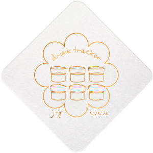 Zoom Show guides Loading product Kitschy Cocktail Hour Drink Tracker Coaster Hexagon Coaster Design ID: 2819997 Click on swatch to see options Choose Your Product Color Active Color Coaster Colors Coaster Colors Black Out Until: 2026-01-01 White Out Until: 2025-12-30 Choose Your Imprint Foil Color Active Color Shiny Foil Shiny Foil Metallic, lustrous finish. *Specialty patterned foil may vary on final print Shiny Champagne Shiny Sterling Silver Shiny 18 Kt Gold Shiny Kiwi / Lime Shiny Leaf Shiny Jade Shiny Royal Blue Shiny Amethyst Shiny Fuchsia Shiny Rose Quartz Shiny Rose Gold NEW Shiny Merlot Shiny Convertible Red Shiny Poppy Shiny Copper *Shiny Holographic Gold *Shiny Holographic Silver *Shiny Rainbow Matte Foil Matte Foil Flat finish. Matte NEW Chocolate Matte Black Matte Slate Gray Matte Dove Grey Matte White Matte Ivory Matte Mimosa Yellow Matte Sunflower Matte Key Lime Matte Leaf Matte Spruce Matte Teal/Peacock Matte Azure Matte Royal Blue Matte Navy Matte Amethyst Matte Pastel Pink Matte Ballet Pink Matte Fuchsia Matte Lipstick Red Matte Merlot Matte Tangerine Satin Foil Satin Foil Muted sheen, brushed finish. Satin Sterling Silver Satin 18 Kt. Gold Satin Copper Penny Satin Fuchsia Satin Lipstick Red Satin Leaf Satin Teal / Peacock Satin French Blue Satin Plum Personalize Your Text Line 1 Line 2 Line 3 Personalize further with different fonts, graphics, positioning, and sizes. (Optional) Customize More Choose Your Quantity Subtotal PRICE INCLUDES: Select a Proof Option: Print As Is I confirm that I have reviewed my design and I understand it will be produced as shown and no proof will be provided. Digital Proof + $15 I would like an expert FYP designer to look at my design, make minor corrections if necessary, and send me a black and white proof before the order is produced. Orders delivered as soon as 01.08.2026. Exclusions apply. Share Your Design About This Design Keep tabs on the evening's libations with the Kitschy Cocktail Hour Drink Tracker Coaster, an inventive element for a whimsical and modern wedding. This unique coaster features floral-framed modern line drawings of glasses, providing a chic way for guests to mark their drink count. Personalize with the couple's initials and wedding date for a functional yet stylish keepsake. Product Details Product Details 50 minimum 4" wide Reusable Uncoated pulp board Volume discounts Expedited options available Product Description Product Description Elevate your table settings with our Custom Hexagon Coasters, a delightful addition to any event. Perfect for weddings, cocktail parties, or corporate events, these coasters bring a unique flair to your festivities. Their distinctive shape and customizable design make them ideal for showcasing your creativity. Explore our Shop by Event section to find inspiration for personalizing your next gathering.These 4" wide coasters are crafted from high-quality uncoated pulp board and feature our signature foil stamping for a luxurious finish. Durable and reusable, they are designed for convenience and style, ensuring your surfaces stay protected while adding an elegant touch to your decor. Discover additional ways to customize your party supplies in the FYP Customizer, and create a memorable experience for your guests. Product Options Hexagon Coaster Square Coaster Diamond 4" Coaster Round Coaster Ornament Deco Square Leather Coaster Round Leather Coaster Nouveau Related Products Hexagon Coaster Square Coaster Diamond 4" Coaster Round Coaster Ornament Deco Square Leather Coaster Round Leather Coaster Nouveau Material Pulp Board