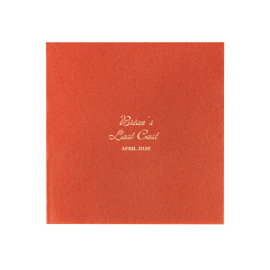 Zoom Show guides Loading product Last Cast Bachelor Party Napkin Square Linen Like Cocktail Napkin Design ID: 2848410 Click on swatch to see options Choose Your Product Color Active Color Linen Like* - Premium Product Linen Like* - Premium Product Absorbent. Dyed tissue. Airlaid. Premium pricing applies. Pebble Kraft Ash Grey Brown Black Charcoal Stone Gray Fog White Ivory Cream Buttercream Lemon Moss Green Olive Green Hunter Green Pastel Green Lime Eucalyptus Dark Turquoise Bright Sky Powder Blue Navy Lavender Magenta Pink Pastel Pink Lipstick Red Terracotta Peach Mango Metallic Silver Metallic Gold Metallic Copper Berry Out Until: 2026-05-15 Merlot Crosshatch* - Premium Product Crosshatch* - Premium Product Absorbent. Printed tissue. Airlaid. Premium pricing applies. Crosshatch Black Crosshatch Gray Crosshatch Stone Crosshatch Key Lime Crosshatch Green Crosshatch Navy Crosshatch Turquoise Out Until: 2026-05-10 Crosshatch Violet Out Until: 2026-05-14 Crosshatch Fuchsia Out Until: 2026-01-29 Crosshatch Lipstick Red Out Until: 2026-05-16 Herringbone* - Premium Product Herringbone* - Premium Product Absorbent. Printed Herringbone pattern. Airlaid. Premium pricing applies. Herringbone Gray Onyx Herringbone Vanilla Mocha Out Until: 2026-04-21 Choose Your Imprint Foil Color Active Color Shiny Foil Shiny Foil Metallic, lustrous finish. *Specialty patterned foil may vary on final print Shiny Champagne Shiny Sterling Silver Shiny 18 Kt Gold Shiny Kiwi / Lime Shiny Leaf Shiny Spruce Shiny Jade Shiny Royal Blue Shiny Amethyst Shiny Fuchsia Shiny Rose Quartz Shiny Rose Gold NEW Shiny Merlot Shiny Convertible Red Shiny Poppy Shiny Copper *Shiny Holographic Gold *Shiny Holographic Silver *Shiny Rainbow Matte Foil Matte Foil Flat finish. Matte NEW Chocolate Matte Black Matte Slate Gray Matte Dove Grey Matte White Matte Ivory Matte Mimosa Yellow Matte Sunflower Matte Key Lime Matte Leaf Matte Teal/Peacock Matte Azure Matte Royal Blue Matte Navy Matte Amethyst Matte Pastel Pink Matte Ballet Pink Matte Fuchsia Matte Lipstick Red Matte Merlot Matte Tangerine Satin Foil Satin Foil Muted sheen, brushed finish. Satin Sterling Silver Satin 18 Kt. Gold Satin Copper Penny Satin Fuchsia Satin Lipstick Red Satin Leaf Satin Teal / Peacock Satin French Blue Satin Plum Personalize Your Text Line 1 Line 2 Line 3 Personalize further with different fonts, graphics, positioning, and sizes. (Optional) Customize More Choose Your Quantity Subtotal PRICE INCLUDES: Select a Proof Option: Print As Is I confirm that I have reviewed my design and I understand it will be produced as shown and no proof will be provided. Digital Proof + $15 I would like an expert FYP designer to look at my design, make minor corrections if necessary, and send me a black and white proof before the order is produced. Orders delivered as soon as 05.01.2026. Exclusions apply. Share Your Design About This Design Celebrate the bachelor's final foray into singlehood with the Last Cast Bachelor Party Napkin, featuring the guest of honor's name in a vintage inspired script, the emblematic "Last Cast" phrase, and the event date in a straightforward serif font. A classic touch for a fishing retreat-themed bachelor bash. Product Details Product Details Deluxe air laid paper Measures approximately 5" x 5" Signature foil stamp included Bulk discounts available Expedited shipping options available. Product Description Product Description Introducing our custom Linen-Like Cocktail Napkins, the epitome of elegance and refinement for your sophisticated gatherings. Whether you're hosting a formal wedding reception or a chic cocktail soirée, these linen cocktail napkins effortlessly complement any table setting. Their soft and gentle touch will leave a lasting impression on guests, showcasing your commitment to providing a truly upscale experience. Meticulously crafted, these napkins exude the luxurious look and feel of fine linen while offering the convenience of being disposable. Crafted from premium-quality materials, they are highly absorbent and the same dimensions as our classic cocktail napkins. With the perfect blend of functionality and elegance, you can elevate any upscale bar or lounge. Product Options Square Linen Like Cocktail Napkin Square Crosshatch Cocktail Napkin Square Linen Like Dinner Napkin Square Shimmer Cocktail Napkin Square Extra Large Dinner Napkin Square Petite Napkin Square Dinner Napkin Woven Square Cocktail Napkin Patterned Square Cocktail Napkin Square Linen Like Luncheon Napkin Square Shimmer Luncheon Napkin Square Luncheon Napkin Square Cocktail Napkin Related Products Square Linen Like Cocktail Napkin Square Crosshatch Cocktail Napkin Square Linen Like Dinner Napkin Square Shimmer Cocktail Napkin Square Extra Large Dinner Napkin Square Petite Napkin Square Dinner Napkin Woven Square Cocktail Napkin Patterned Square Cocktail Napkin Square Linen Like Luncheon Napkin Square Shimmer Luncheon Napkin Square Luncheon Napkin Square Cocktail Napkin