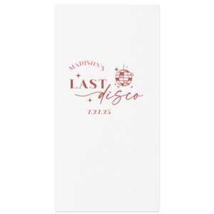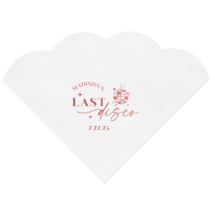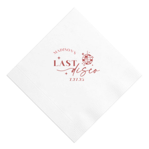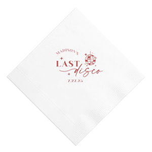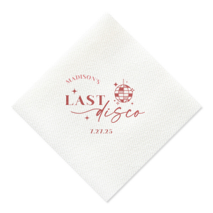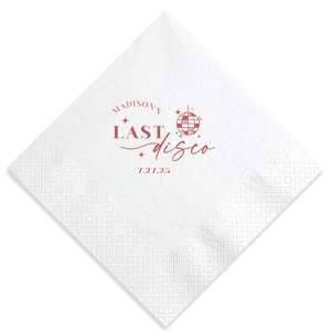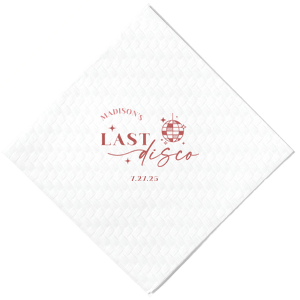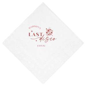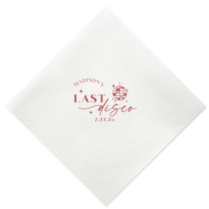 Zoom Show guides Loading product Last Disco Bachelorette Napkin Diamond Cocktail Napkin Design ID: 2442298 Click on swatch to see options Choose Your Napkin Color Active Color 3 ply 3 ply Top quality 3 ply. Dyed tissue. Sand Black Slate Platinum Platinum Pin Dot Dove Gray Dove Gray Borderless White White Borderless White Pin Dot White Scallop Ivory Ivory Borderless Mimosa Lemon Pin Dot Kiwi Kiwi Pin Dot Leaf Pin Dot Spruce Pin Dot Olive Pin Dot Light Navy Dark Turquoise Pin Dot Turquoise Powder Blue Pin Dot Lavender Lavender Pin Dot Purple Merlot Pin Dot Fuchsia Candy Pink Antique Pink Pin Dot Ballet Pink Ballet Pink Borderless Convertible Red Light Coral Merlot Out Until: 2025-11-06 Tangerine Out Until: 2025-10-28 Linen Like* - Premium Product Linen Like* - Premium Product Absorbent. Dyed tissue. Airlaid. Premium pricing applies. Pebble Kraft Metallic Copper Ash Grey Black Charcoal Stone Gray Metallic Silver Fog White Ivory Cream Buttercream Metallic Gold Lemon Moss Green Olive Green Hunter Green Pastel Green Lime Eucalyptus Dark Turquoise Bright Sky Powder Blue Navy Lavender Berry Merlot Magenta Pastel Pink Pink Lipstick Red Terracotta Peach Mango Brown Out Until: 2025-11-21 Plum Out Until: 2025-11-13 Crosshatch* - Premium Product Crosshatch* - Premium Product Absorbent. Printed tissue. Airlaid. Premium pricing applies. Crosshatch Black Crosshatch Gray Crosshatch Stone Crosshatch Green Crosshatch Turquoise Crosshatch Violet Crosshatch Fuchsia Crosshatch Lipstick Red Crosshatch Key Lime Out Until: 2025-11-26 Crosshatch Navy Out Until: 2025-11-24 Woven* - Premium Product Woven* - Premium Product Basketweave texture. Single-sided color. Premium pricing applies. Woven Sand Woven Copper Woven Black Woven Slate Woven Silver Woven Stone Woven Vanilla Woven White Woven Gold Woven Sage Woven Spruce Woven Powder Blue Woven Navy Woven Mauve Woven Convertible Red Woven Tumeric Patterned* - Premium Product Patterned* - Premium Product Exclusive FYP patterns. Single-sided color. Pindot embossed edge. Product pricing applies. Oak Wood Walnut Wood Ebony Wood Ash Wood Birch Wood Marble Sand Marble Gray Marble Navy Marble Taupe Marble Blush Ombre Black Ombre Navy Ombre Robin’s Egg Blue Ombre Rose petal Ombre Coral Watercolor Sea Glass Watercolor Ocean Watercolor Nightfall Watercolor Sangria Watercolor Hibiscus Watercolor Rose Watercolor Sunrise Leaf Sand Leaf Fern Leaf Rain Leaf Rose Tie Dye Sunflower Tie Dye Leaf Tie Dye Turquoise Tie Dye Fuchsia Shimmer* - Premium Product Shimmer* - Premium Product Elegant European Stardream with iridescent finish. Single-sided color. Pindot embossed edge. Premium pricing applies. Champagne Soft Black Galvanized Silver Crystal White Ivory Pearl Gold Sage Navy Amethyst Herringbone* - Premium Product Herringbone* - Premium Product Absorbent. Printed Herringbone pattern. Airlaid. Premium pricing applies. Herringbone Vanilla Mocha Herringbone Gray Onyx Choose Your Imprint Foil Color Active Color Shiny Foil Shiny Foil Metallic, lustrous finish. *Specialty patterned foil may vary on final print Shiny Champagne Shiny Sterling Silver Shiny 18 Kt Gold Shiny Kiwi / Lime Shiny Leaf Shiny Jade Shiny Royal Blue Shiny Amethyst Shiny Fuchsia Shiny Rose Quartz Shiny Rose Gold NEW Shiny Merlot Shiny Convertible Red Shiny Poppy Shiny Copper *Shiny Holographic Gold *Shiny Holographic Silver *Shiny Rainbow Matte Foil Matte Foil Flat finish. Matte NEW Chocolate Matte Black Matte Slate Gray Matte Dove Grey Matte White Matte Ivory Matte Mimosa Yellow Matte Sunflower Matte Key Lime Matte Leaf Matte Spruce Matte Teal/Peacock Matte Azure Matte Royal Blue Matte Navy Matte Amethyst Matte Pastel Pink Matte Ballet Pink Matte Fuchsia Matte Lipstick Red Matte Merlot Matte Tangerine Satin Foil Satin Foil Muted sheen, brushed finish. Satin Sterling Silver Satin 18 Kt. Gold Satin Copper Penny Satin Fuchsia Satin Lipstick Red Satin Leaf Satin Teal / Peacock Satin French Blue Satin Plum Personalize Your Text Line 1 Line 2 Personalize further with different fonts, graphics, positioning, and sizes. (Optional) Customize More Choose Your Quantity Subtotal PRICE INCLUDES: Select a Proof Option: Print As Is I confirm that I have reviewed my design and I understand it will be produced as shown and no proof will be provided. Digital Proof + $15 I would like an expert FYP designer to look at my design, make minor corrections if necessary, and send me a black and white proof before the order is produced. Orders delivered as soon as 11.04.2025. Exclusions apply. Share Your Design About This Design Celebrate the bride to be's last disco! This trendy disco themed bachelorette party is perfect for dancing the night away. Featuring a disco ball graphic, you can customize this napkin with a date and the name of the bride. Product Details Product Details Classic 3-ply tissue, 4.75” or 5” square Colors vary Signature foil stamp included Bulk discounts available Expedited shipping options available. Product Description Product Description Classic Cocktail Napkins are the perfect companion for any event. Add a touch of refinement to your cocktail parties, weddings, or birthday celebrations. Whether you're sipping a Martini, Old Fashioned, or a signature cocktail, these beverage napkins are the perfect accompaniment to elevate your drink service to new heights.Traditionally designed with a classic pleated edge, highly absorbent, durable, crafted from high-quality, premium-grade paper, our Classic Cocktail Napkins are an excellent, timeless choice. They are soft to the touch, keeping your guests' hands dry and your furniture protected. Once used, simply discard them, making cleanup a breeze. Explore our Cocktail Napkins Collection to find the perfect option for your event. Due to the complexities of manufacturing, the size of the embossed border on our 3-ply napkins may vary slightly. These discrepancies are a natural part of the manufacturing process and do not impact the overall quality or functionality of the napkins