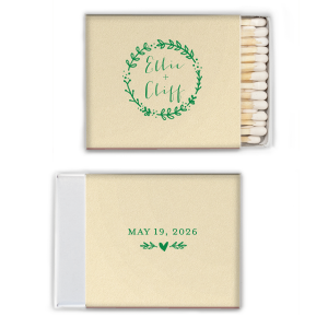 Zoom Show guides Loading product Leaf Wreath Matches Classic Matchbox Design ID: 1368 Click on swatch to see options Choose Your Paper Color Active Color Linen Linen Slightly textured, matte finish. Double-sided color. 100lb+ cover stock. Linen Convertible Red Linen Black Linen Slate Linen Antique Gray Linen White Linen Eggshell Linen Ivory Linen Pearl Cream Linen Navy Blue Shiny Shiny Smooth, high-gloss finish. Single-sided color. 100lb+ cover stock. Shiny Black Shiny White Shiny Navy Blue Shiny Fuchsia Shiny Convertible Red Stardream Stardream European Stardream with iridescent finish. Double-sided color. 105lb+ cover stock. Stardream NEW Black Stardream Galvanized Silver Stardream Silver Stardream Crystal White Stardream Ivory Stardream 18k Gold Stardream Champagne Stardream Old Gold Stardream Super Gold Stardream Orange Stardream Rose Gold Stardream Blush Stardream Ballet Pink Stardream Plum Stardream Violet Stardream Lavender Stardream Denim Stardream NEW Peacock Stardream Robin's Egg Blue Poptone Poptone Soft felt texture with matte finish. Double-sided color. 100lb+ cover stock. Poptone Ballet Pink Poptone NEW Fuchsia Poptone Convertible Red Poptone Tangerine Poptone Sunflower Poptone Yellow Poptone Mimosa Poptone Mint Poptone Robin’s Egg Blue Poptone Dark Turquoise Poptone Sky Blue Poptone NEW French Blue Poptone Lavender Natural Natural Smooth, matte finish. Double-sided color. 100lb+ cover stock. Natural NEW Sand Natural Khaki Natural NEW Kraft Natural Mushroom Natural NEW Chocolate Natural Black Natural Slate Natural Gray Natural Smoke Natural NEW Frost White Natural Ivory Natural Leaf Natural Spruce Natural Olive Natural Dark Teal Natural NEW Amethyst Natural Scarlet Natural Antique Rose Natural Harvest Natural Dark Sage Textured Textured Variety of textures. Single-sided color. 110lb+ cover stock. Oak Wood Walnut Wood Ebony Wood Ash Wood Birch Wood Leather Like Tan Leather Like Black Leather Like Pearl Leather Like White Leather Like Night Blue Leather Like Lipstick Red Horizontal White Patterned* - Premium Product Patterned* - Premium Product Smooth, matte finish. Single-sided pattern with white back. Pattern and color may vary between products. 100 lb paper. Premium pricing applies. Marble Sand Marble Gray Marble Navy Marble Taupe Marble Blush Watercolor Seaglass Watercolor Ocean Watercolor Night Fall Watercolor Sangria Watercolor Hibiscus Watercolor Rose Watercolor Sunrise Leaf Sand Leaf Fern Leaf Rain Leaf Rose Blank Stock Blank Stock Blank Stock Glitter* - Premium Product Glitter* - Premium Product Sparkly with a slightly textured finish. Single-sided with a white back and 100lb+ cover stock. Premium pricing applies. Glitter NEW Black Glitter NEW Silver Glitter Champagne Glitter Rose Copper Glitter Night Fall Choose Your Imprint Foil Color Active Color Shiny Foil Shiny Foil Metallic, lustrous finish. *Specialty patterned foil may vary on final print Shiny Champagne Shiny Sterling Silver Shiny 18 Kt Gold Shiny Kiwi / Lime Shiny Leaf Shiny Jade Shiny Royal Blue Shiny Amethyst Shiny Fuchsia Shiny Rose Quartz Shiny Rose Gold NEW Shiny Merlot Shiny Convertible Red Shiny Poppy Shiny Copper *Shiny Holographic Gold *Shiny Holographic Silver *Shiny Rainbow Matte Foil Matte Foil Flat finish. Matte NEW Chocolate Matte Black Matte Slate Gray Matte Dove Grey Matte White Matte Ivory Matte Mimosa Yellow Matte Sunflower Matte Key Lime Matte Leaf Matte Spruce Matte Teal/Peacock Matte Azure Matte Royal Blue Matte Navy Matte Amethyst Matte Pastel Pink Matte Ballet Pink Matte Fuchsia Matte Lipstick Red Matte Merlot Matte Tangerine Satin Foil Satin Foil Muted sheen, brushed finish. Satin Sterling Silver Satin 18 Kt. Gold Satin Copper Penny Satin Fuchsia Satin Lipstick Red Satin Leaf Satin Teal / Peacock Satin French Blue Satin Plum Personalize Your Text Front Line 1 Front Line 2 Front Line 3 Back Line 1 Personalize further with different fonts, graphics, positioning, and sizes. (Optional) Customize More Choose Your Quantity Subtotal PRICE INCLUDES: Select a Proof Option: Print As Is I confirm that I have reviewed my design and I understand it will be produced as shown and no proof will be provided. Digital Proof + $15 I would like an expert FYP designer to look at my design, make minor corrections if necessary, and send me a black and white proof before the order is produced. Orders delivered as soon as 01.06.2026. Exclusions apply. Share Your Design About This Design Add your names and date to these Mint matches featuring our Leaf Wreath and Heart Branch graphics with Matte Moss foil for a personalized wedding favor perfect for a greenery theme. Product Details Product Details Minimum order of 50 Measures 2.22" wide by 1.375" long by 0.46" high Includes approximately 19 matchsticks Expedited shipping options available. Product Description Product Description Our classic matchboxes are the perfect addition to your birthday, wedding, or any other event. A bowl of custom matchboxes is the perfect way to make an impression as a home decor accent or party favor. Your friends and guests will be impressed with your attention to detail!Like our square matchboxes, our classic matchboxes feature a sliding tray for the matches inside a durable cardboard case that’s covered in a paper of your choice. They’re long-lasting, reliable, and can be used with any one of our wide variety of paper colors. Product Options Classic Matchbox Square Matchbox Horizontal Related Products Classic Matchbox Square Matchbox Horizontal